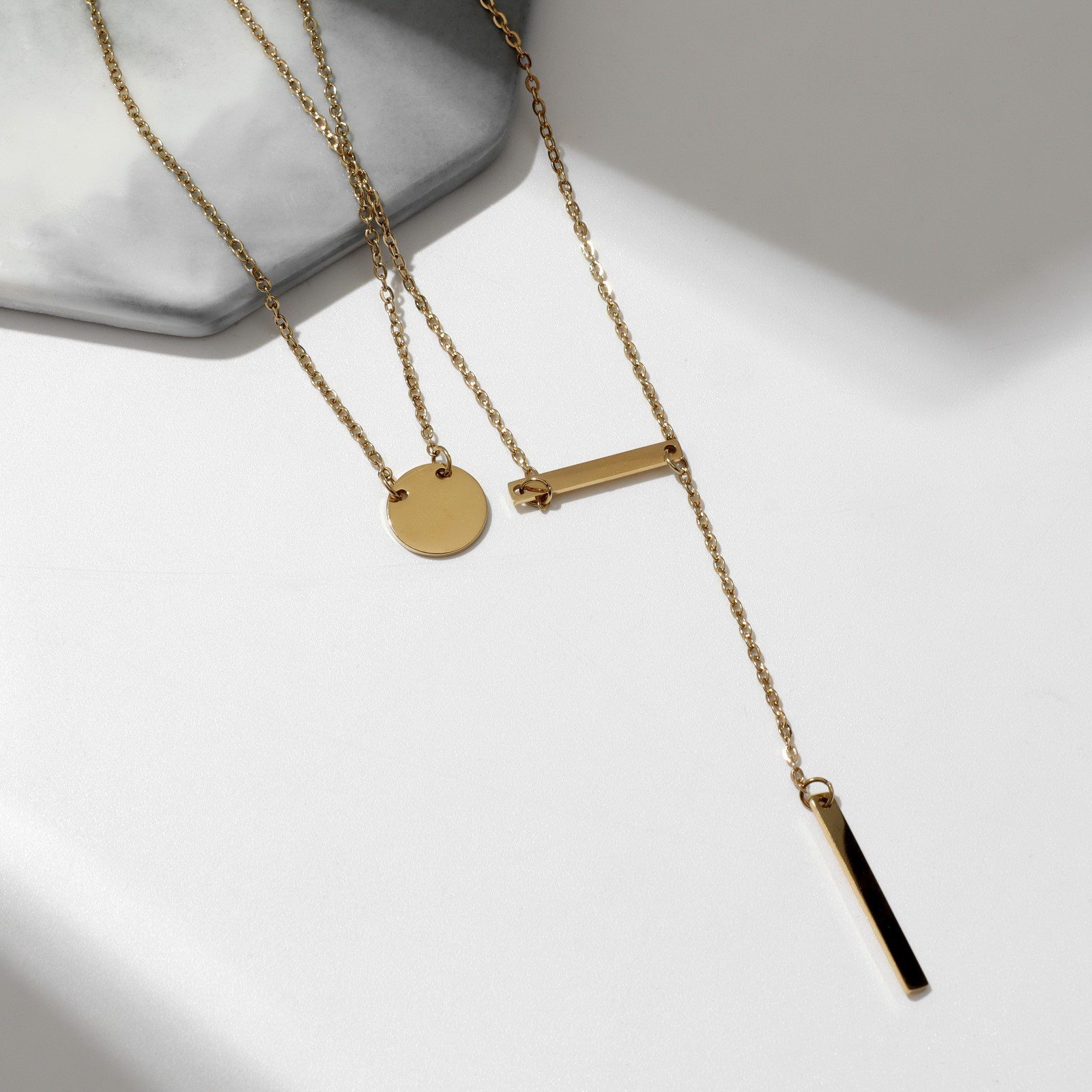 Тематика праздника: 8 Марта, День рождения Размер упаковки: 4 x 0.1 x 25 см. Набор: Нет Вид: Кулон Материал основы: Сталь С подвеской: Да Для кого: Для женщины Тематика: Минимализм Многослойное украшение: Да Длина, см: 40 Вставка/Подвеска: Без вставок Цвет: Золотистый Цвет фурнитуры: Золотой Основа для кулона: На цепочке Элегантное сочетание минимализма и изящества воплощено в этом кулоне с золотистым оттенком, выполненном из прочной стали. Длина 40 см оптимальна для создания стильного акцента, который подчеркнёт женственность и утончённый вкус без излишней вычурности. Изделие идеально подходит для тех, кто ценит лаконичные формы и универсальность в аксессуарах. Отсутствие вставок делает кулон максимально лёгким и удобным в носке, а золотая фурнитура гармонично дополняет образ, создавая эффект благородного сияния.