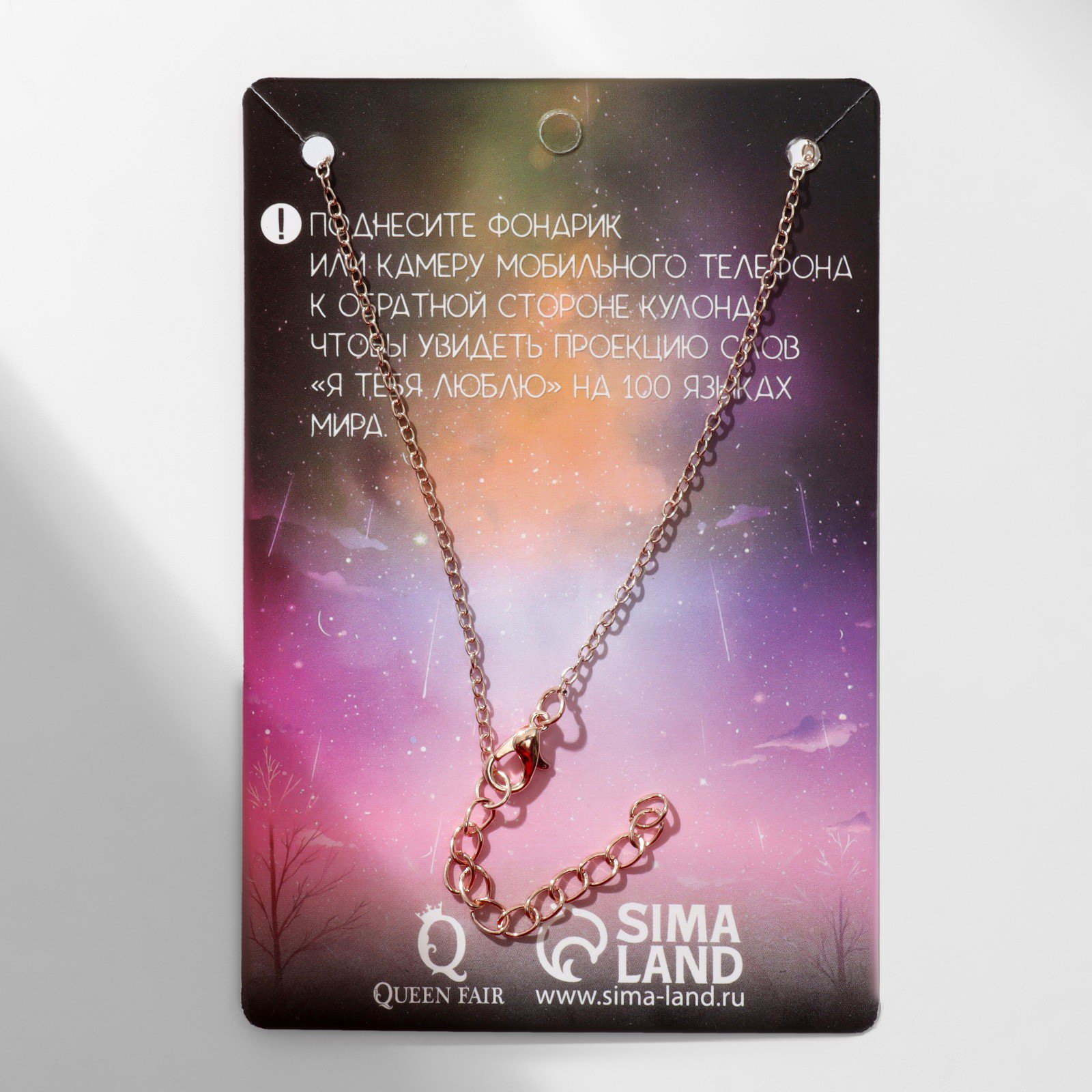 Кулон на цепочке "Проекция", я тебя люблю, сердце, цвет золото, 40 см, 2.8x40x0.5 см., QF, Китай