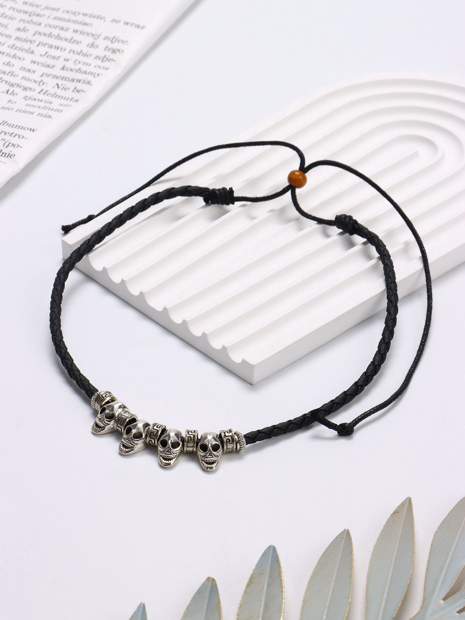 Кулон на шнурке "Унисекс" череп с бусинами, длина регулируется, 35 см, 1.8x35x0.6 см., QF, Китай