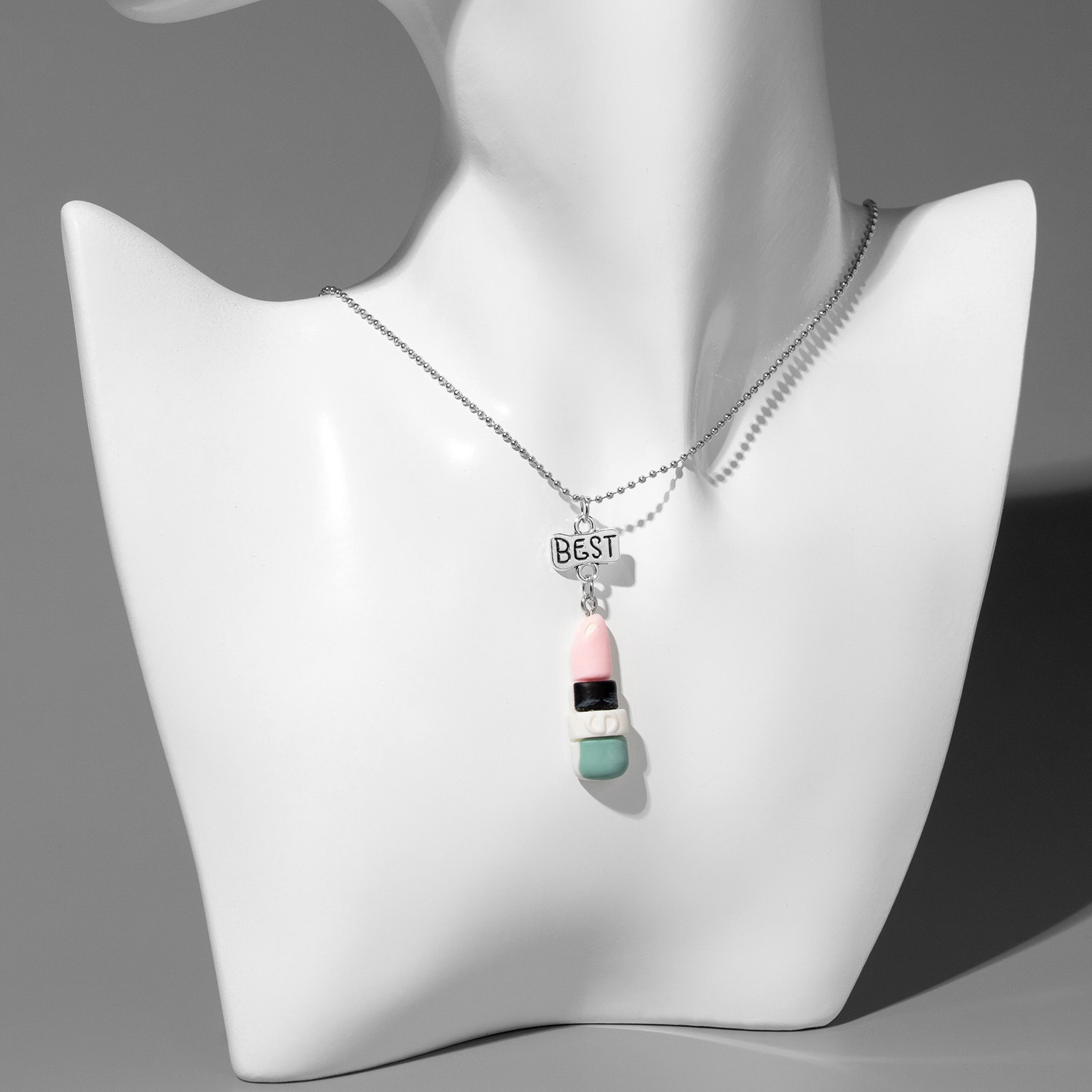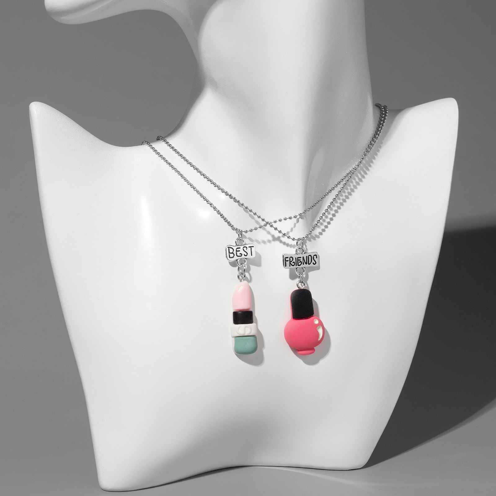 Кулоны парные "Лак и помада", 40 см, цветные в серебре, 3.2x40x2 см., QF, Китай