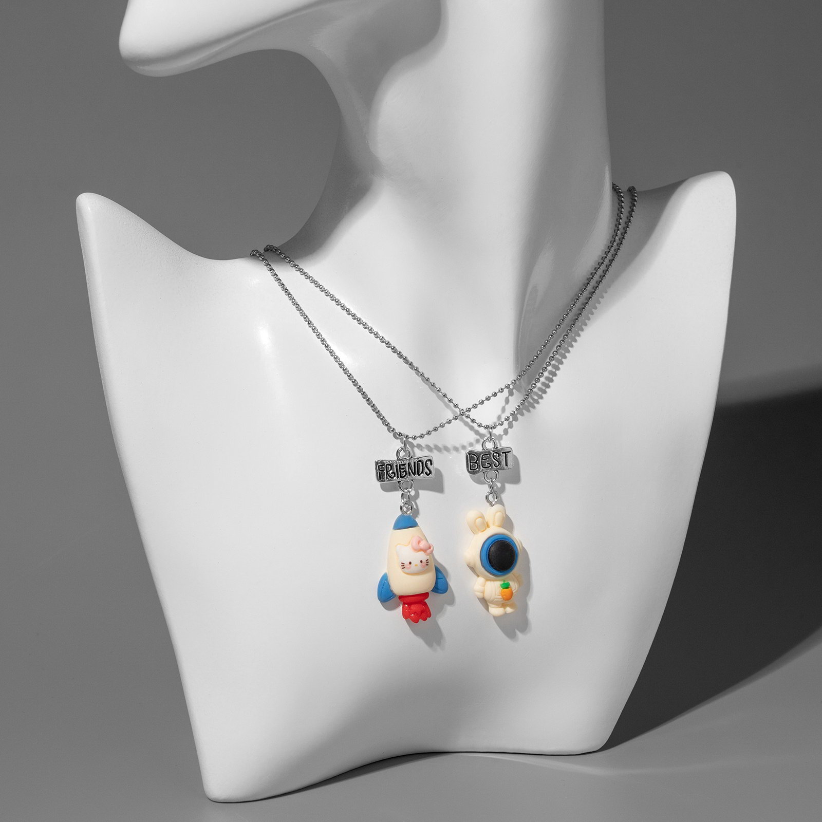 Кулоны парные "Ракета и космонавт", 40 см, цветные в серебре, 5x40x2 см., QF, Китай