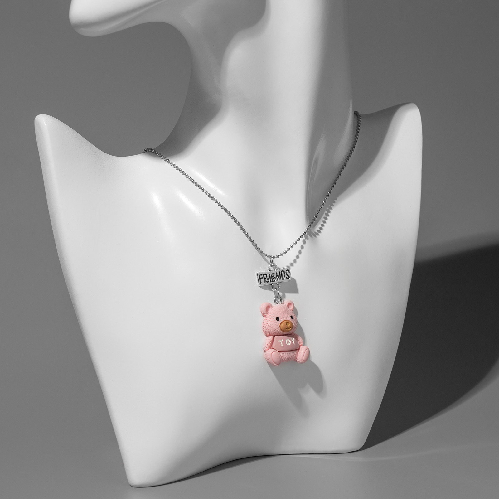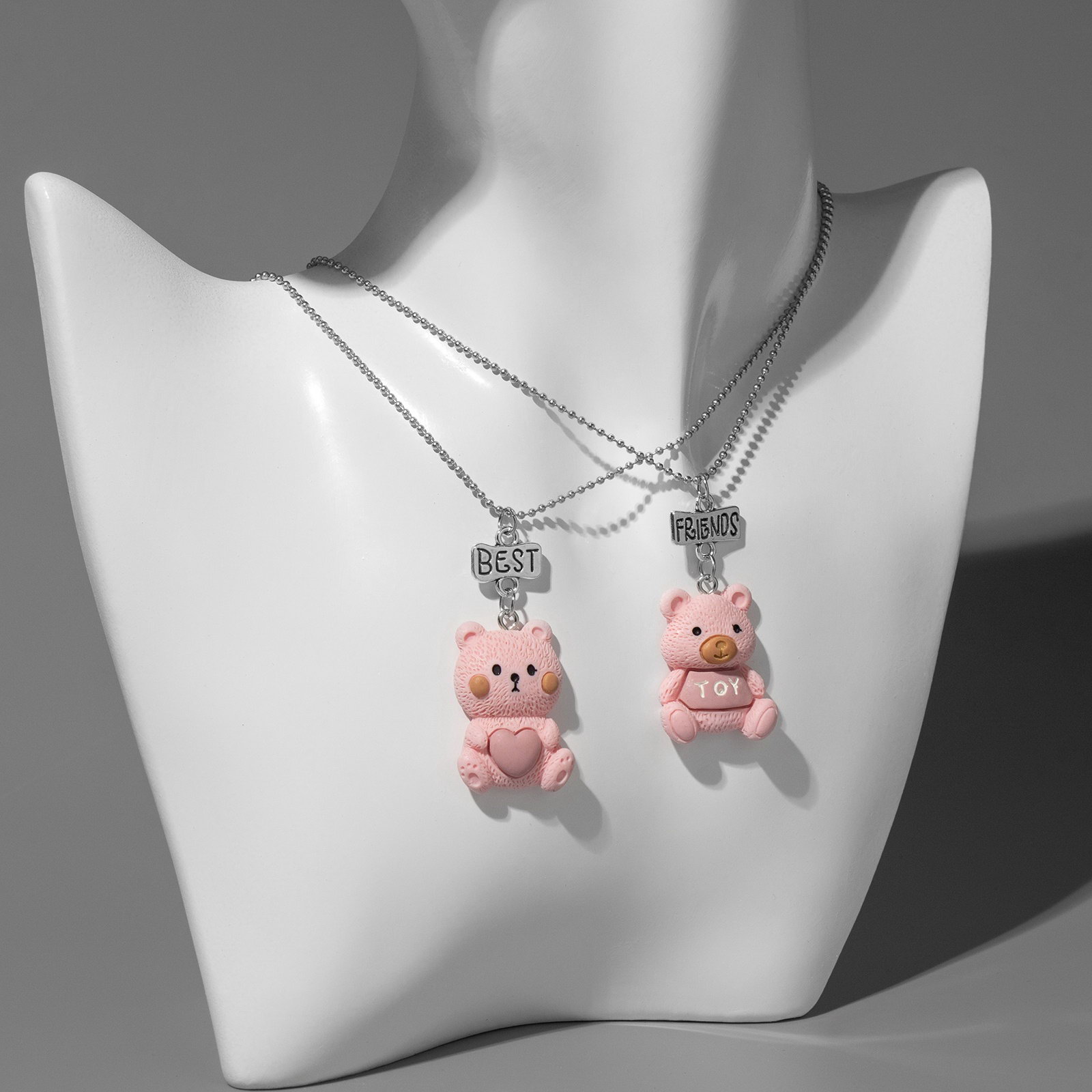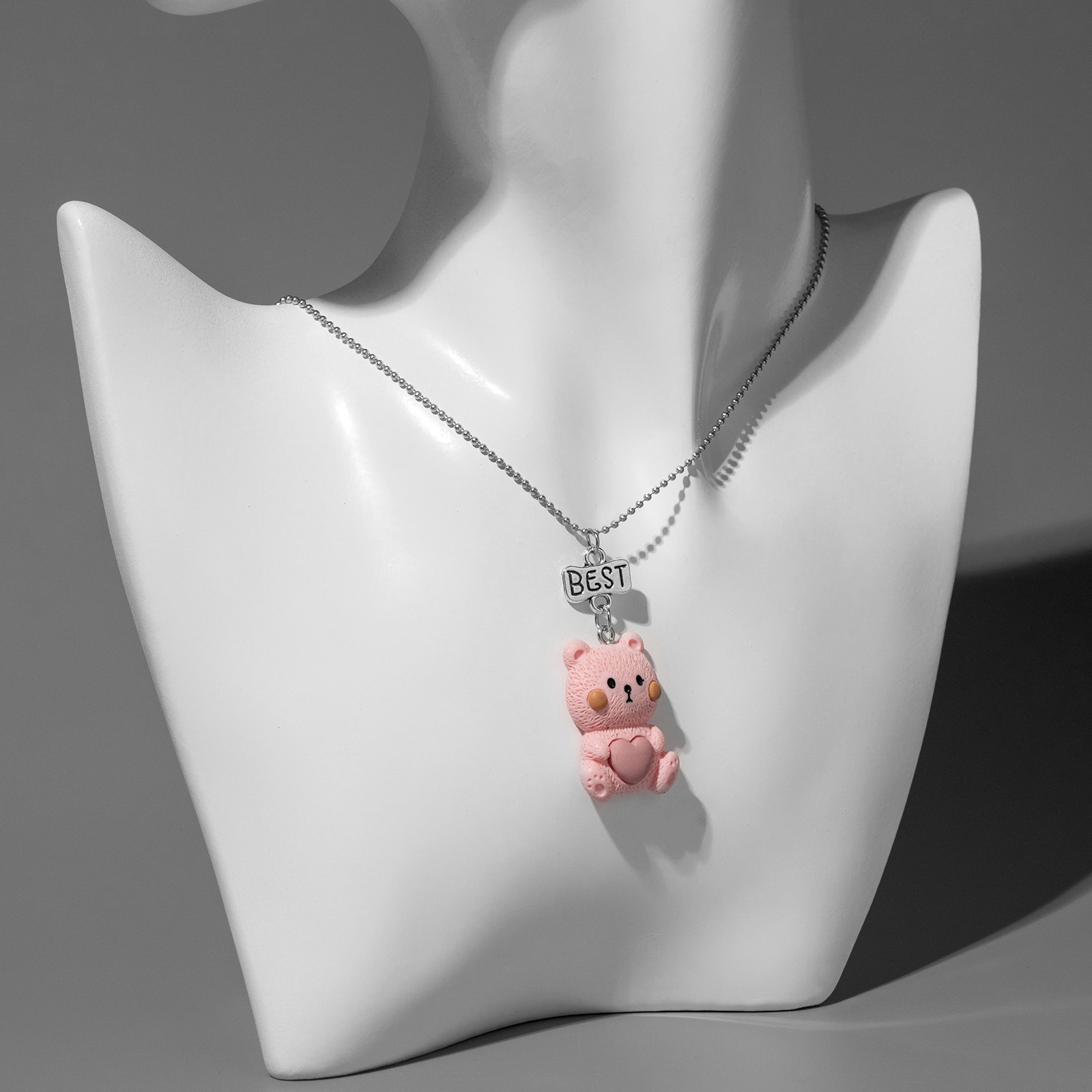 Кулоны парные "Медведи", 40 см, цвет розовый в серебре, 5x40x2 см., QF, Китай