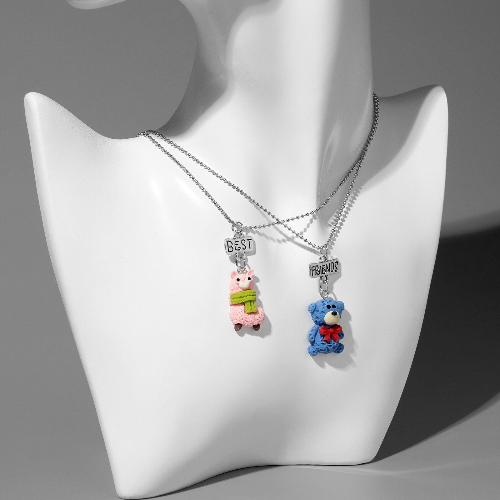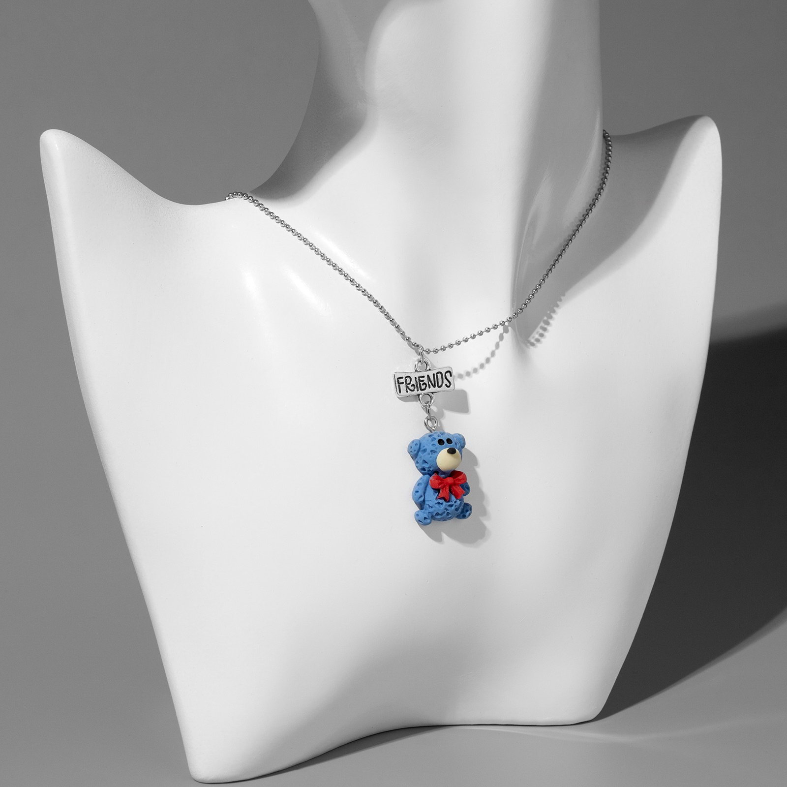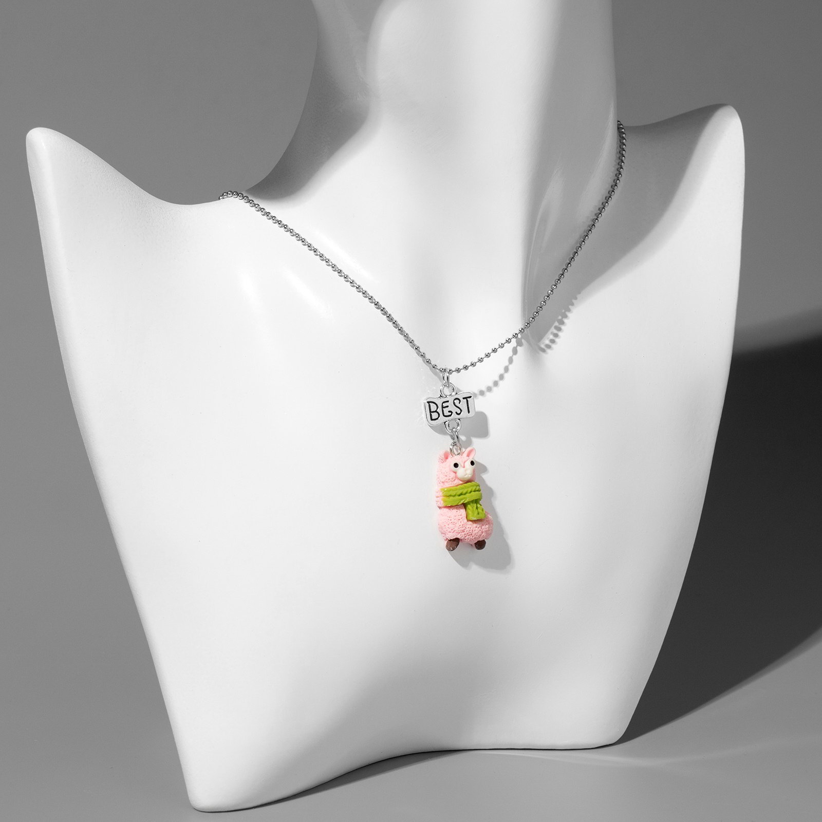 Кулоны парные "Медведь и лама", 40 см, цвет синий/розовый в серебре, 4.5x40x1.5 см., QF, Китай