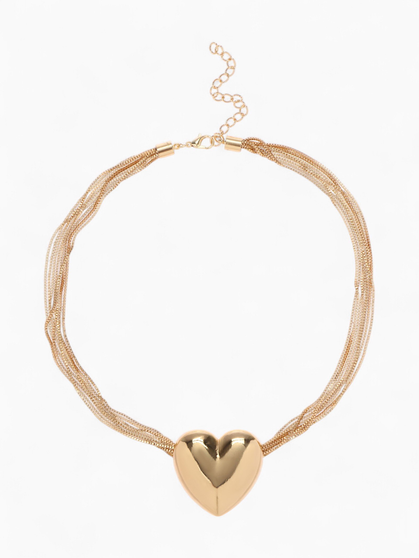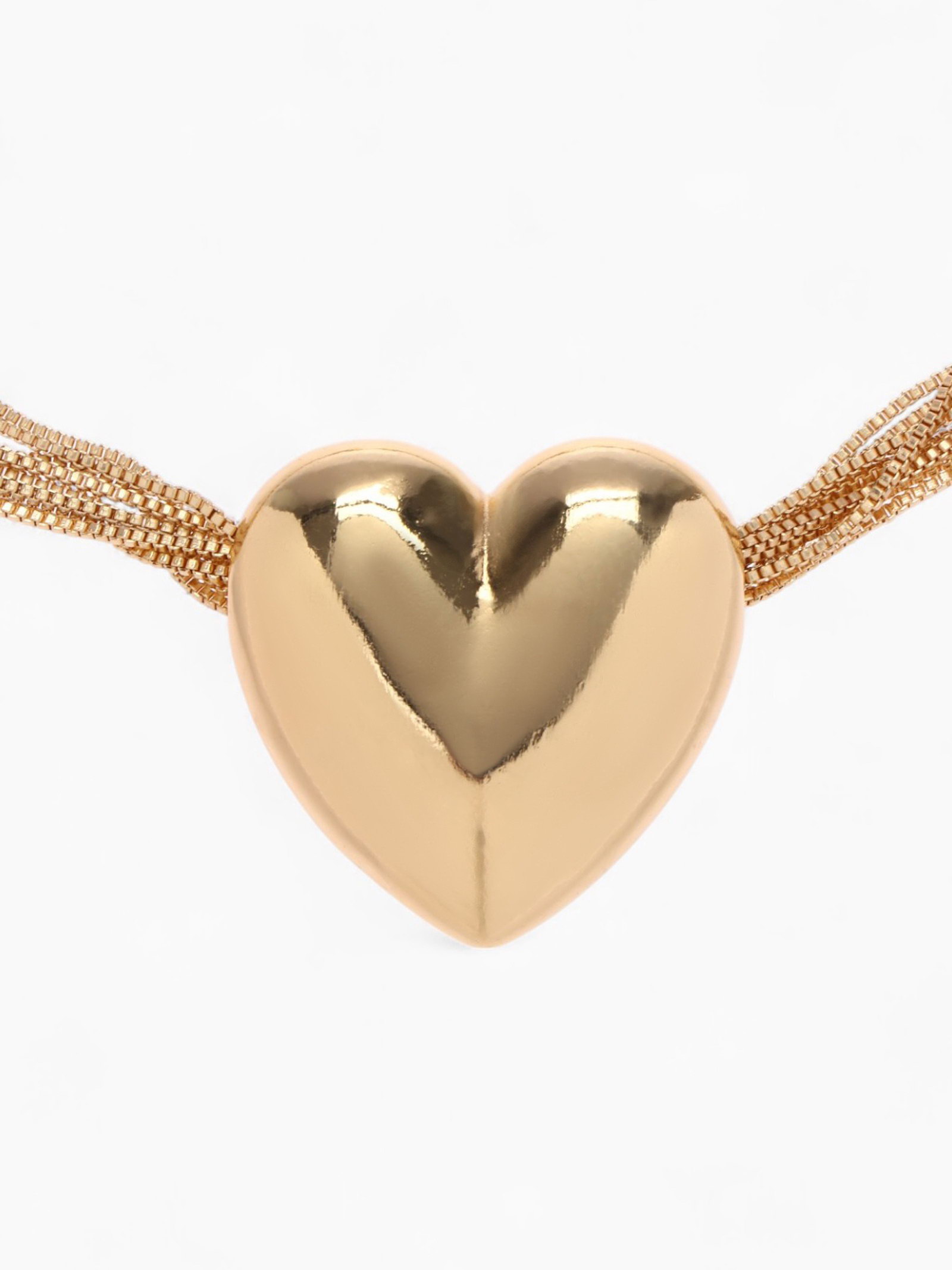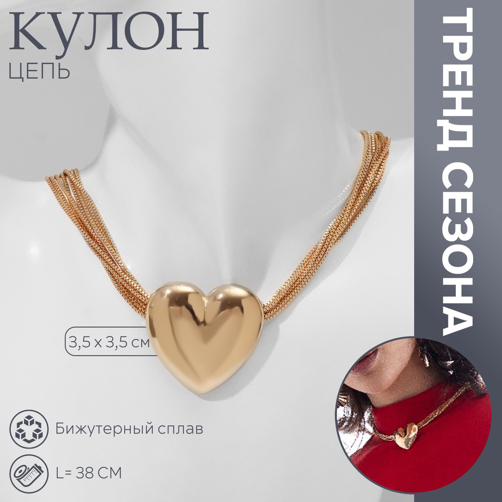 Кулон на цепочке "Цепь", сердце объёмное, 8 нитей, цвет золото, 38 см, 3.5x38x3.5 см., QF, Китай