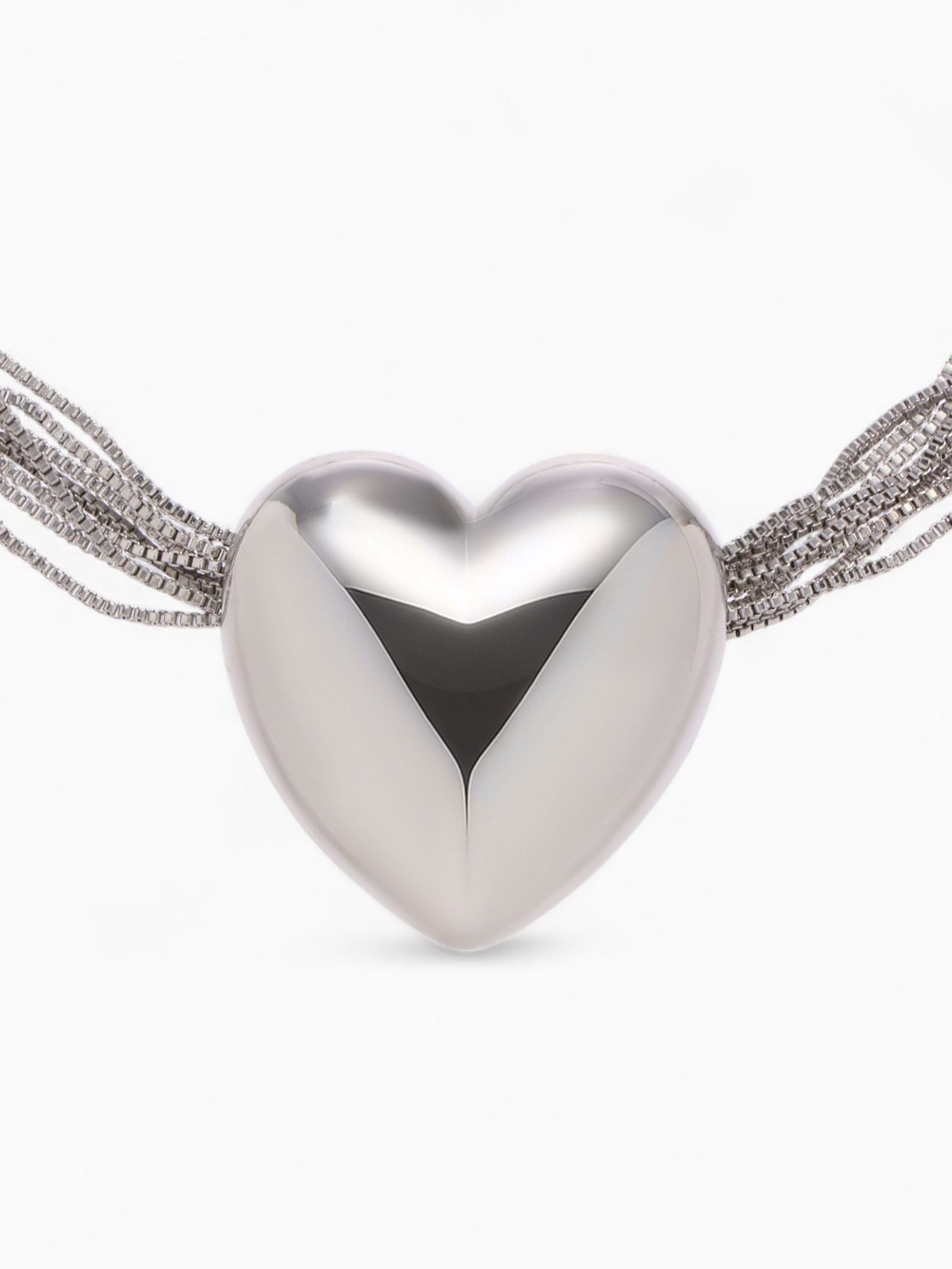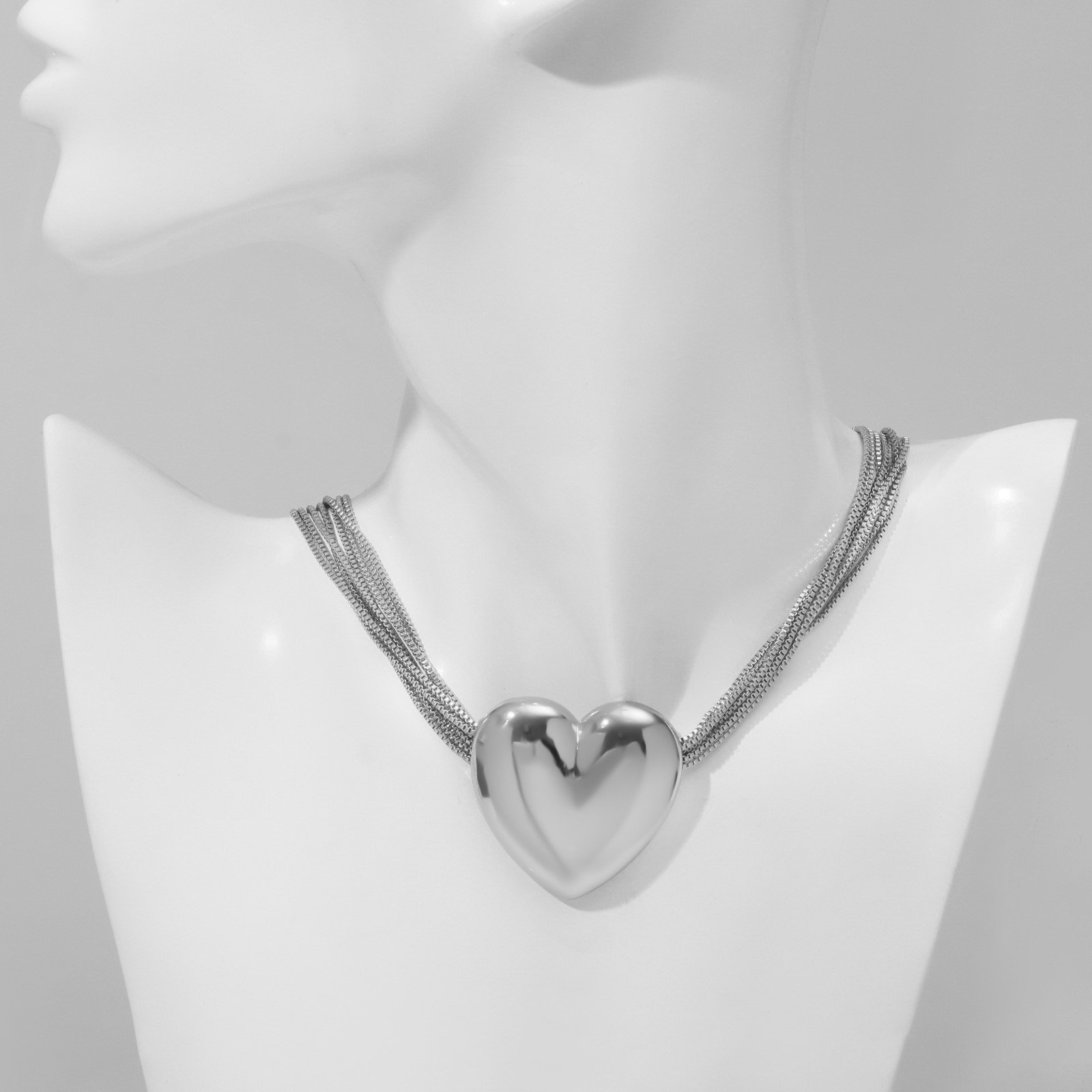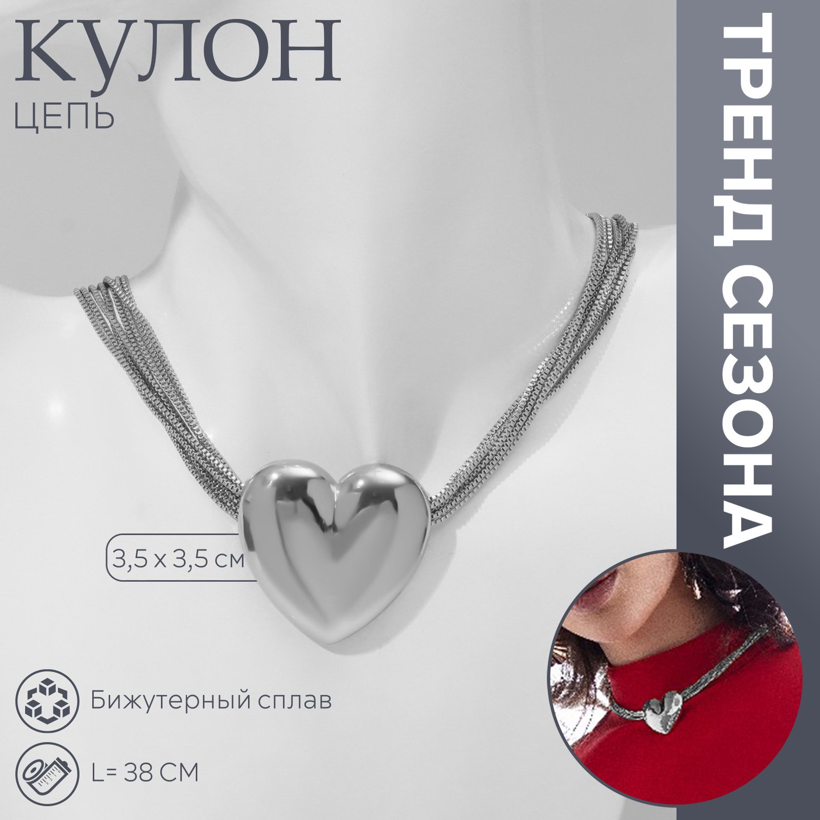 Кулон на цепочке "Цепь", сердце объёмное, 8 нитей, цвет серебро, 38 см, 3.5x38x3.5 см., QF, Китай