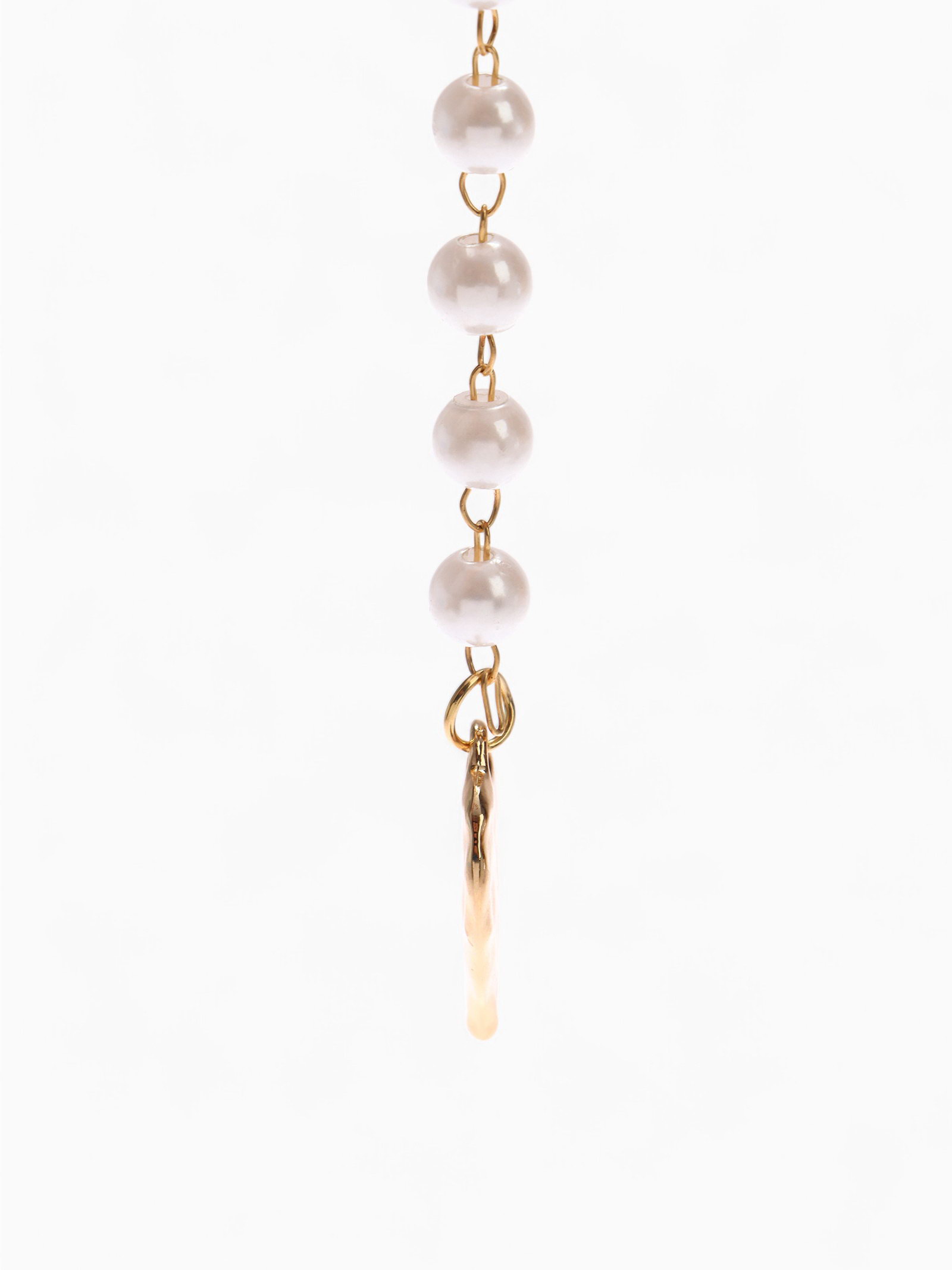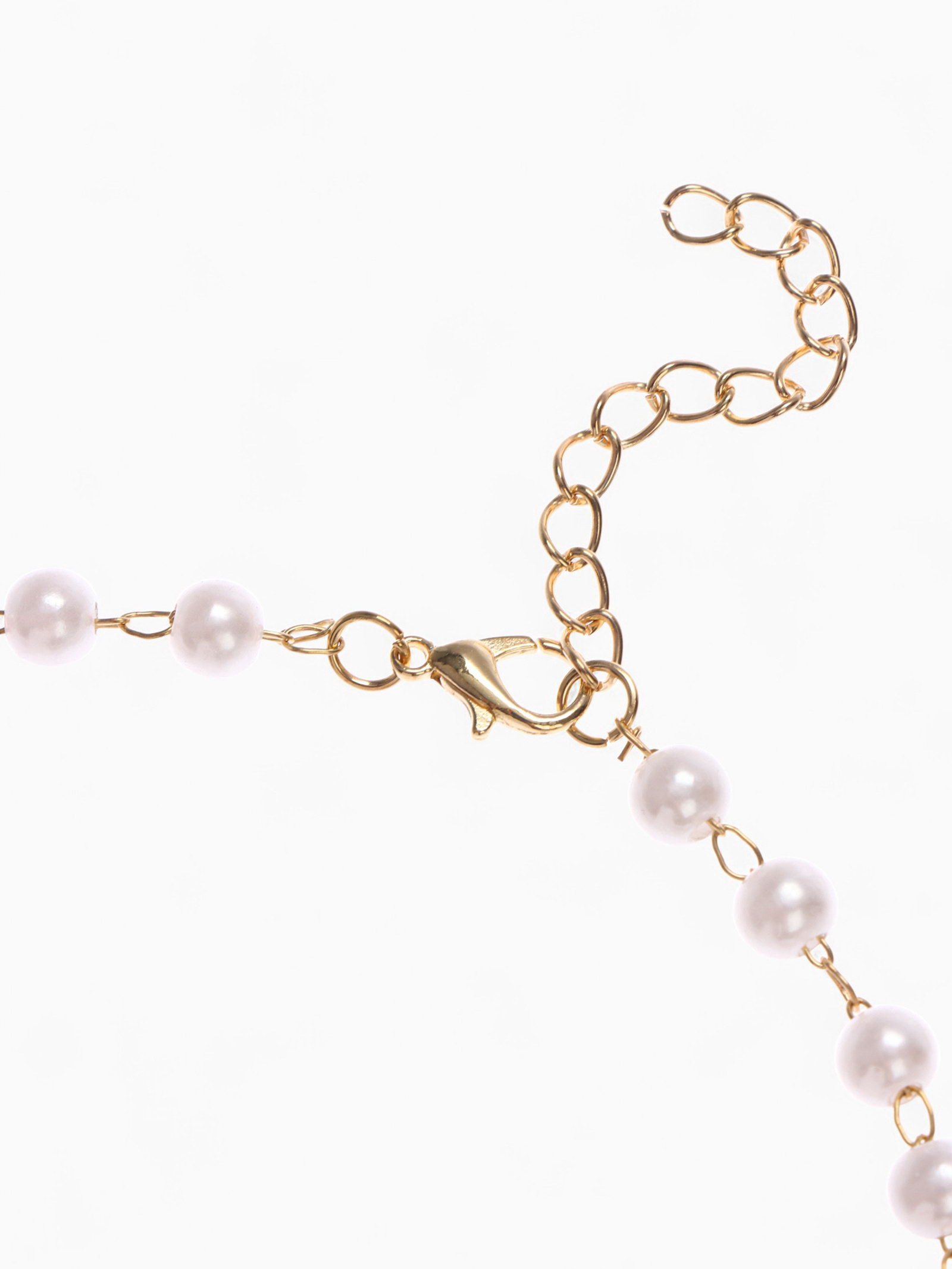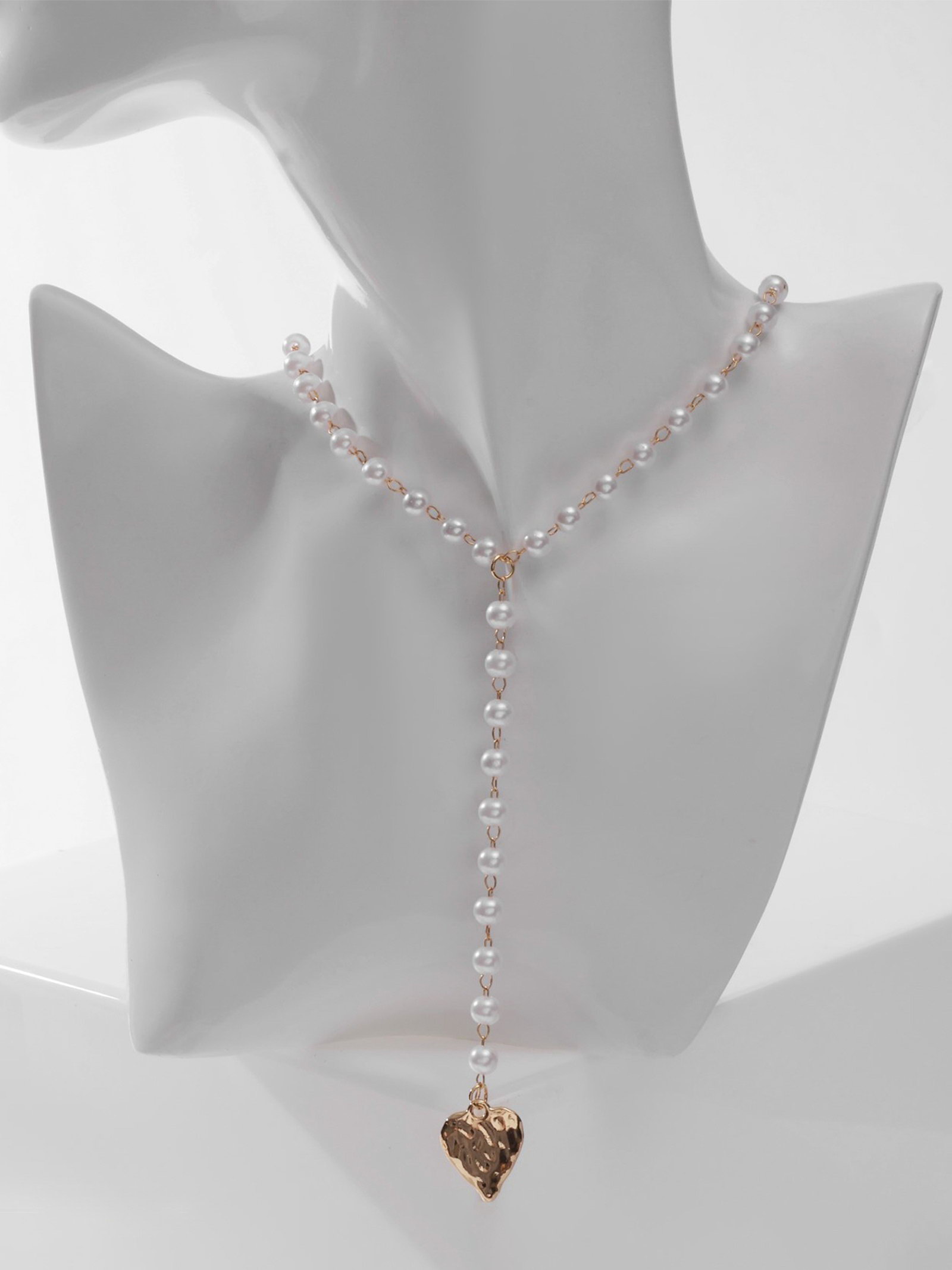 Кулон с жемчугом "Олимпия" подвеска сердце, белый в золоте, 30 см, 1.5x30x0.8 см., QF, Китай