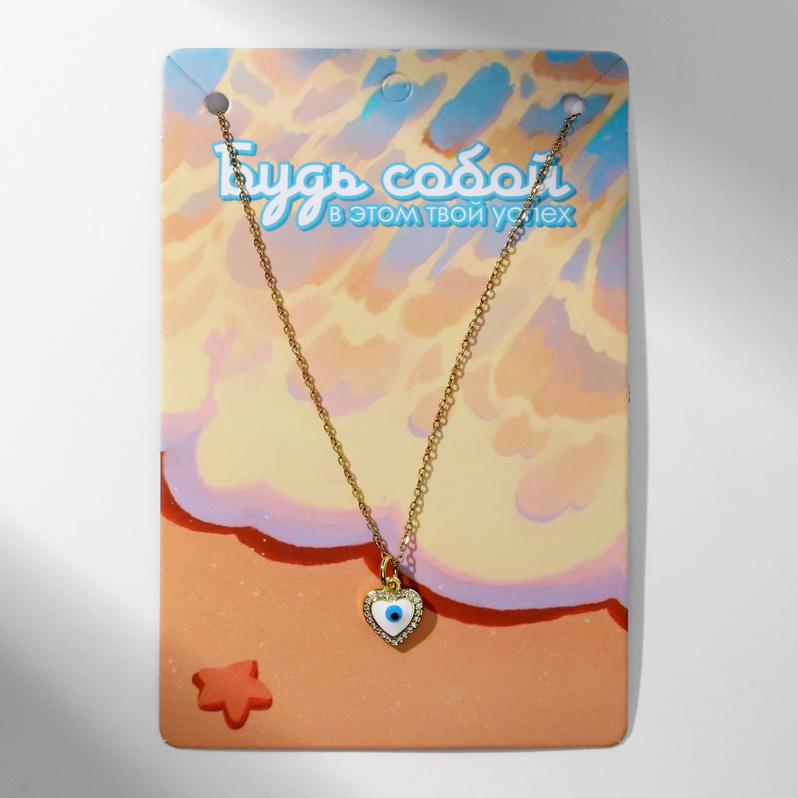Кулон на цепочке оберег "Мини", сердце с глазом, бело-голубой в серебре, 38 см, 1.6x38x1 см., QF, Китай