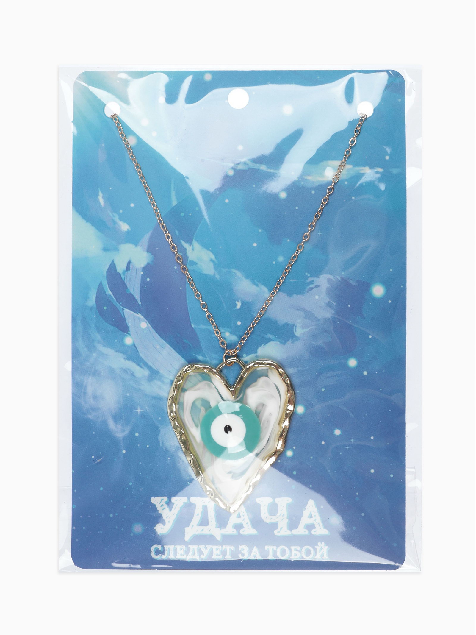 Кулон на цепочке "Прелесть", сердце, оберег, голубой в золоте, 40 см, 4x40x3 см., QF, Китай