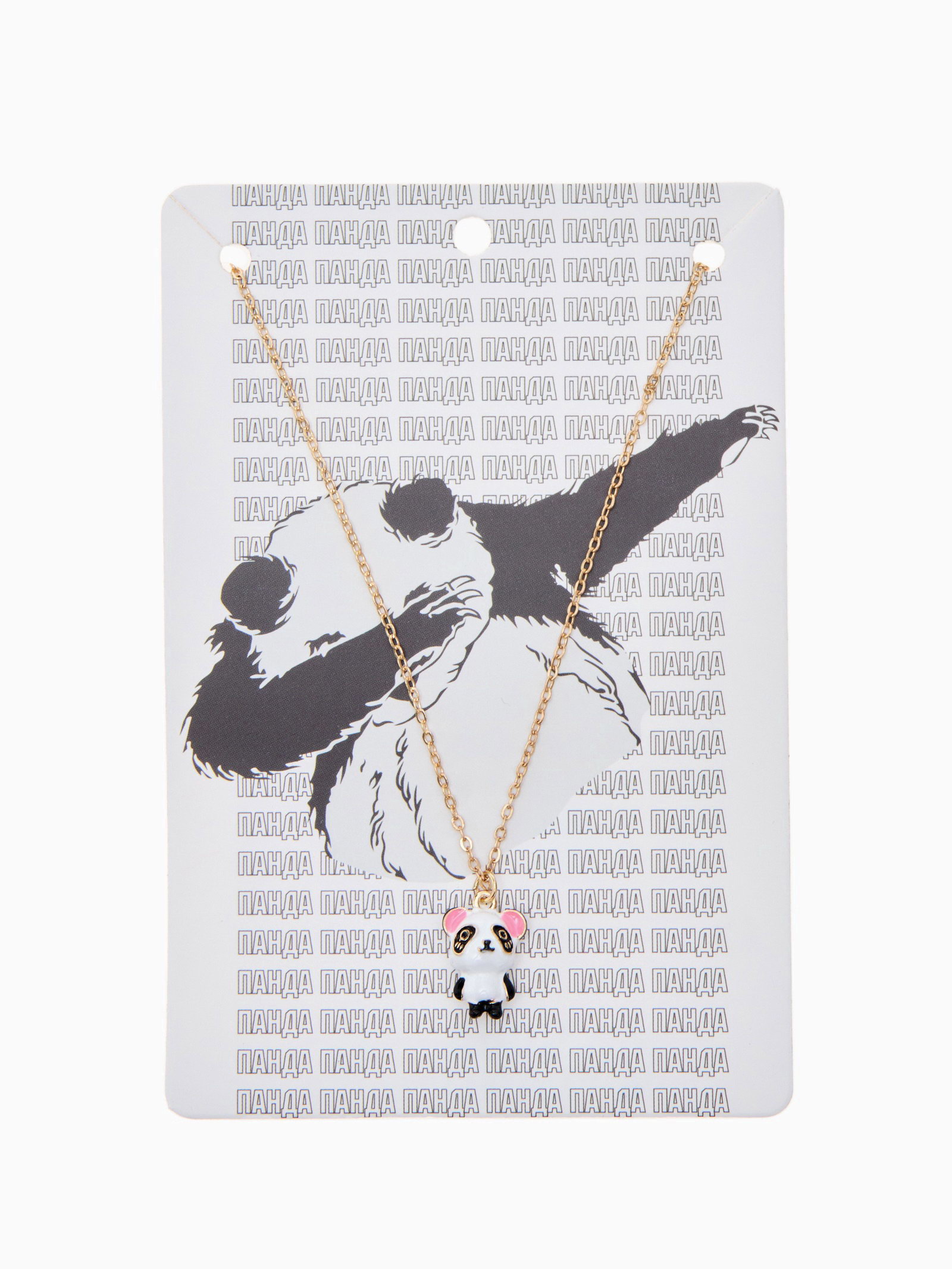 Кулон на цепочке "Прелесть", панда милый, бело-чёрный в золоте, 40 см, 2x40x1 см., QF, Китай
