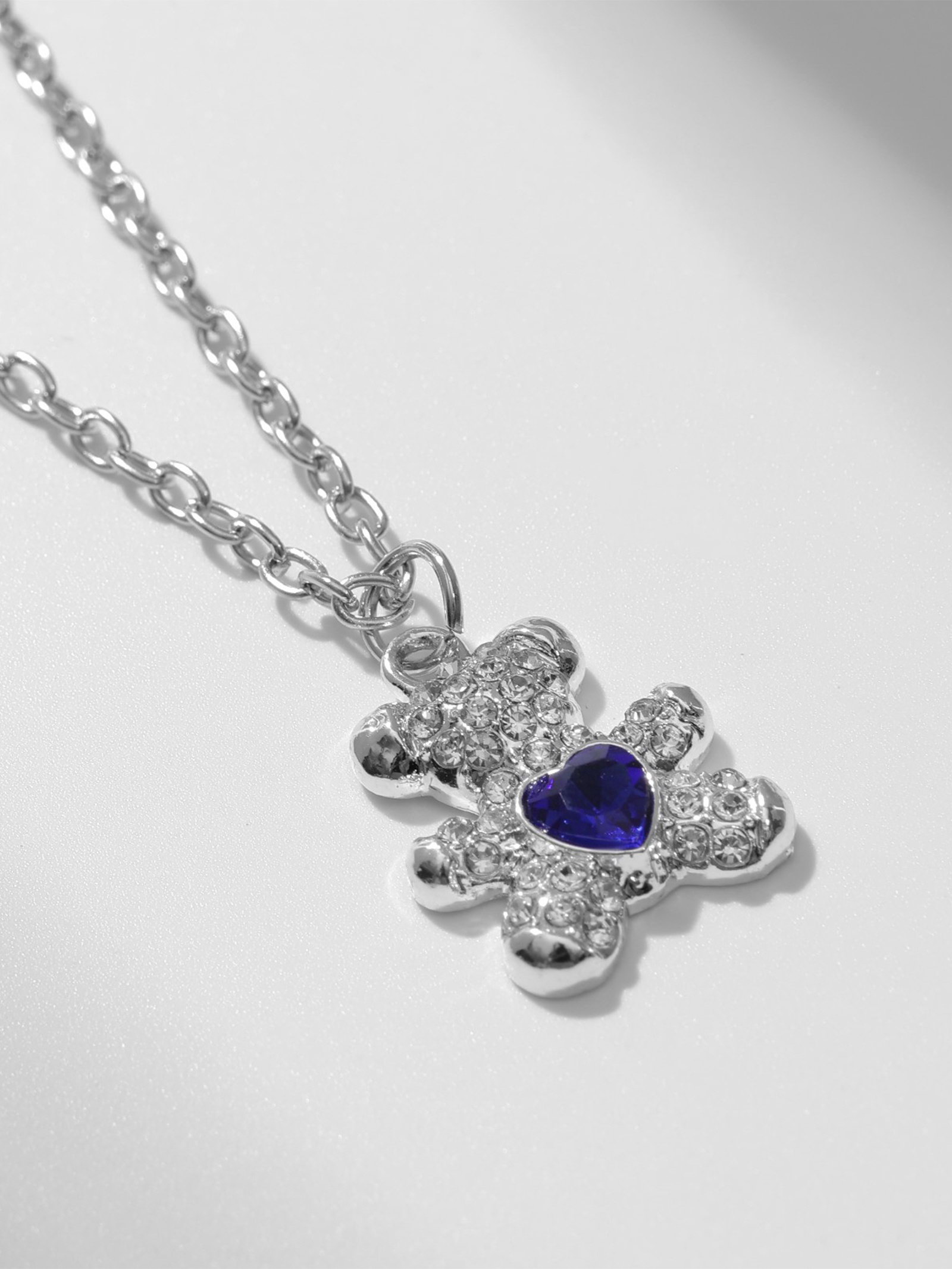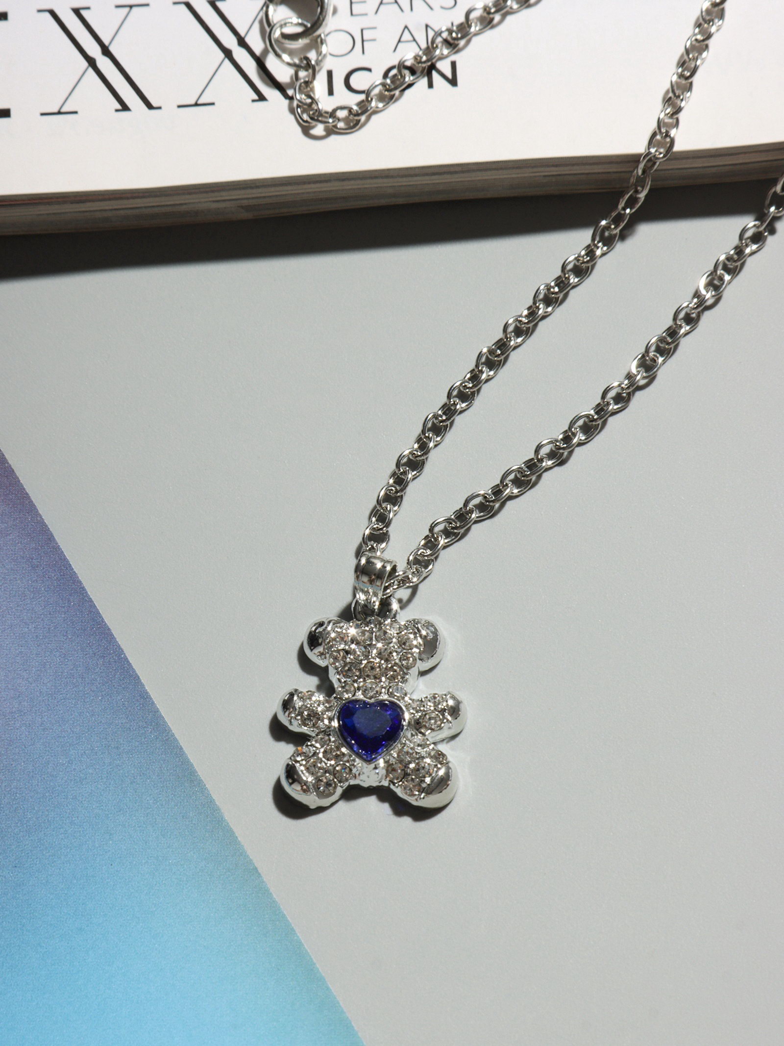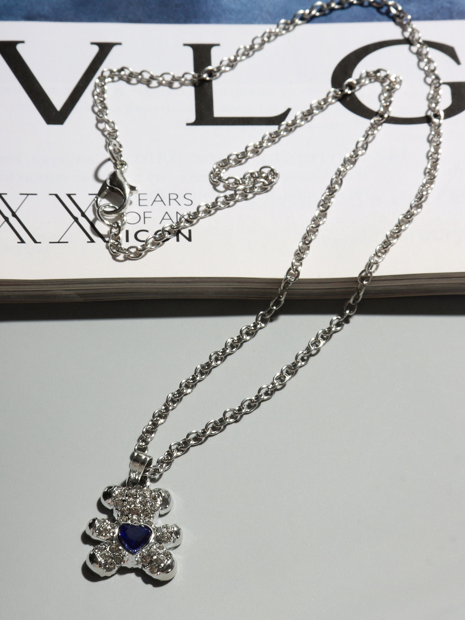 Кулон "Мишка" с сердечком, цвет бело-синий в серебре, 40 см, 2.5x40x1.7 см., QF, Китай