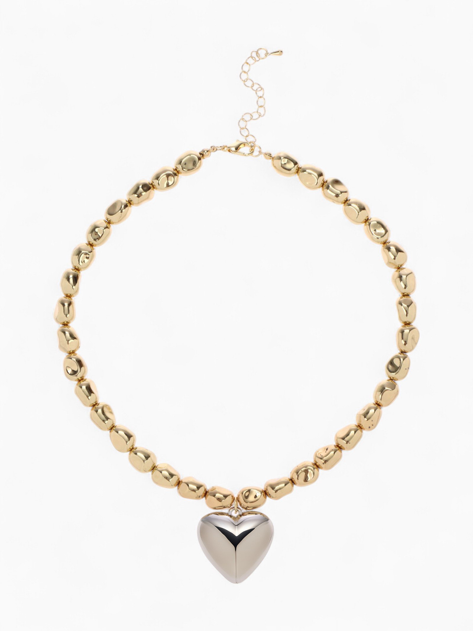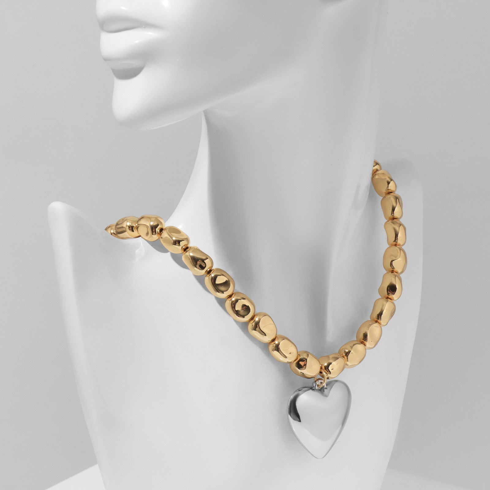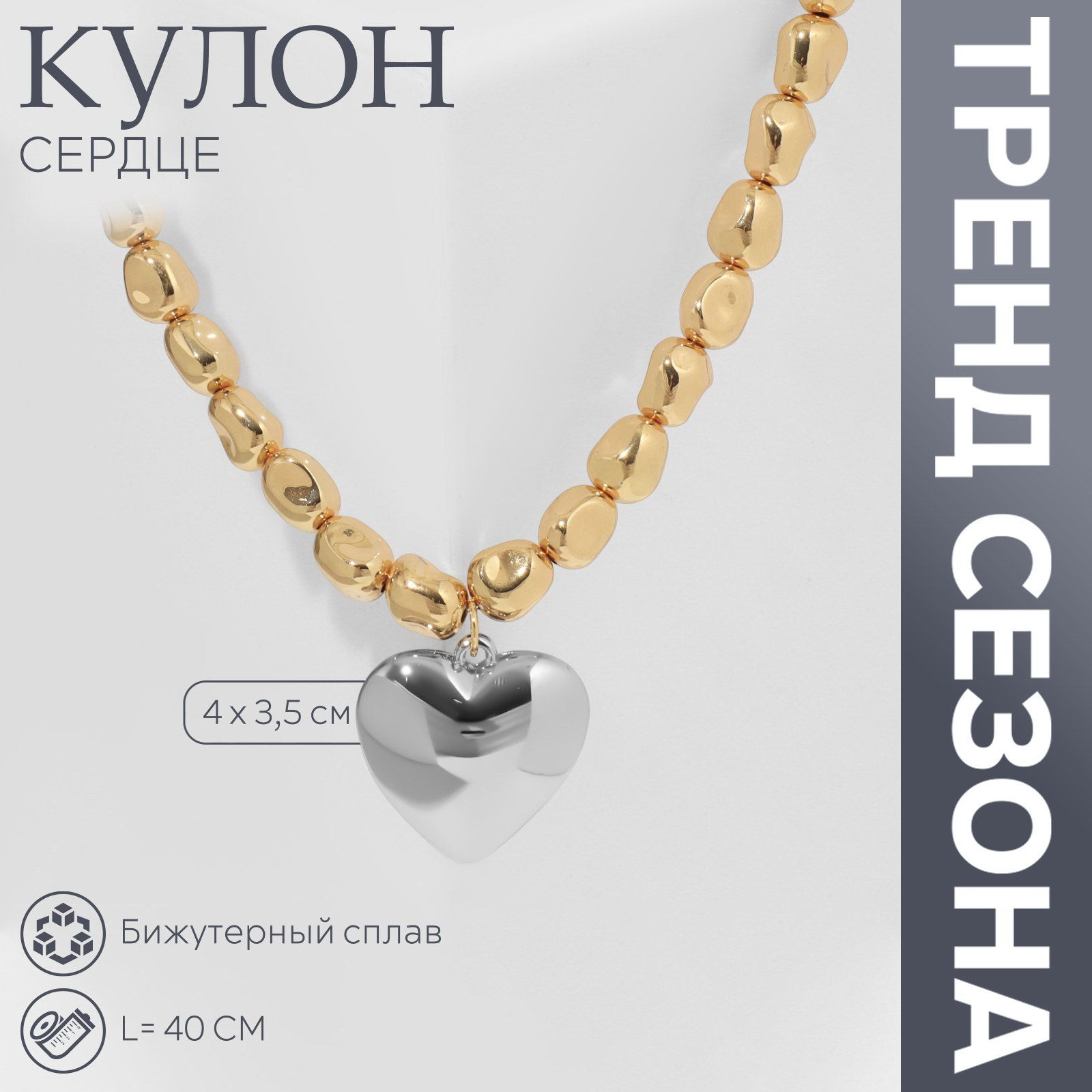 Кулон на декоративной основе "Сердце" объёмное, цвет золото с серебром, 40 см, 4x40x3.5 см., QF, Китай