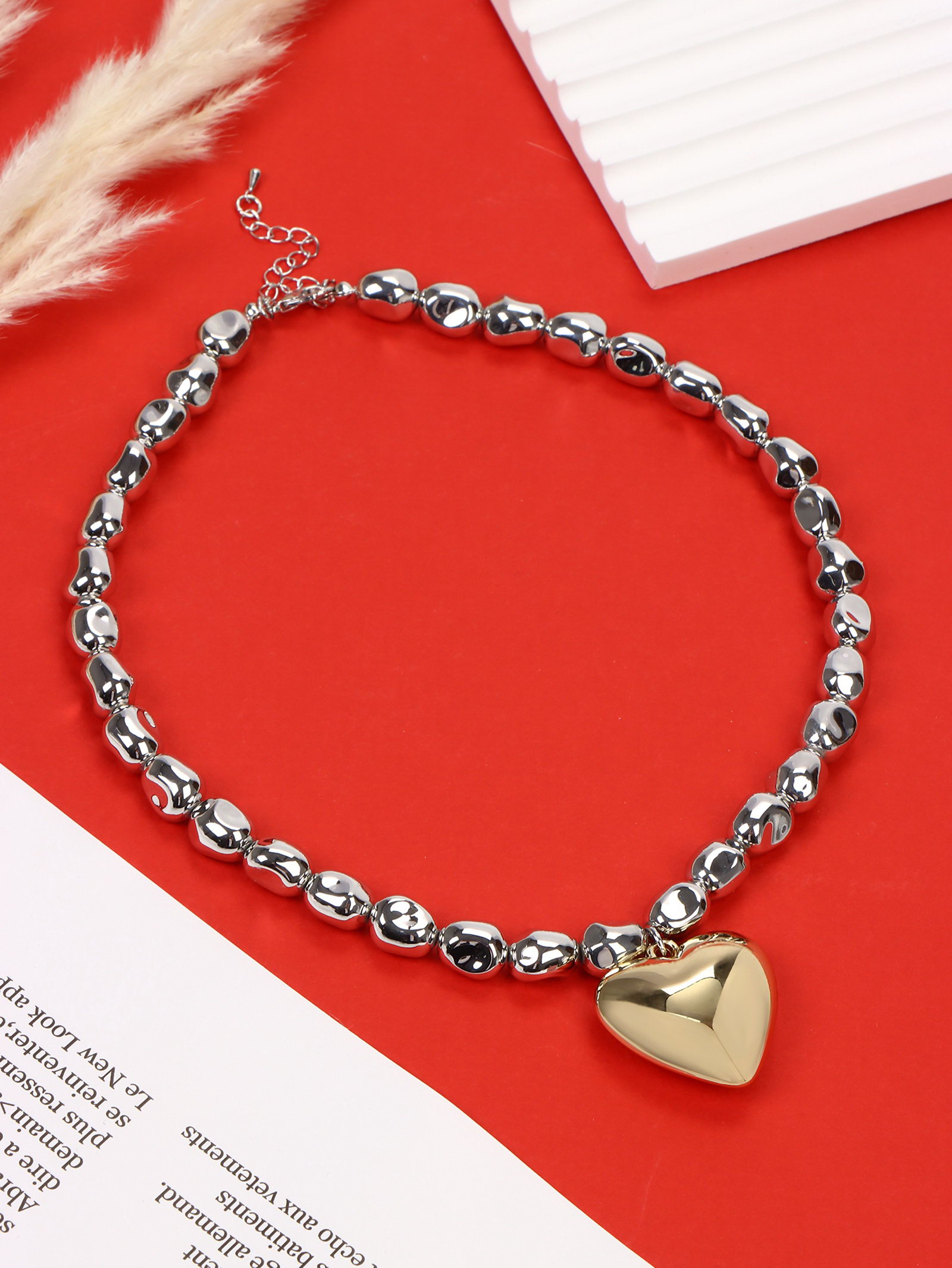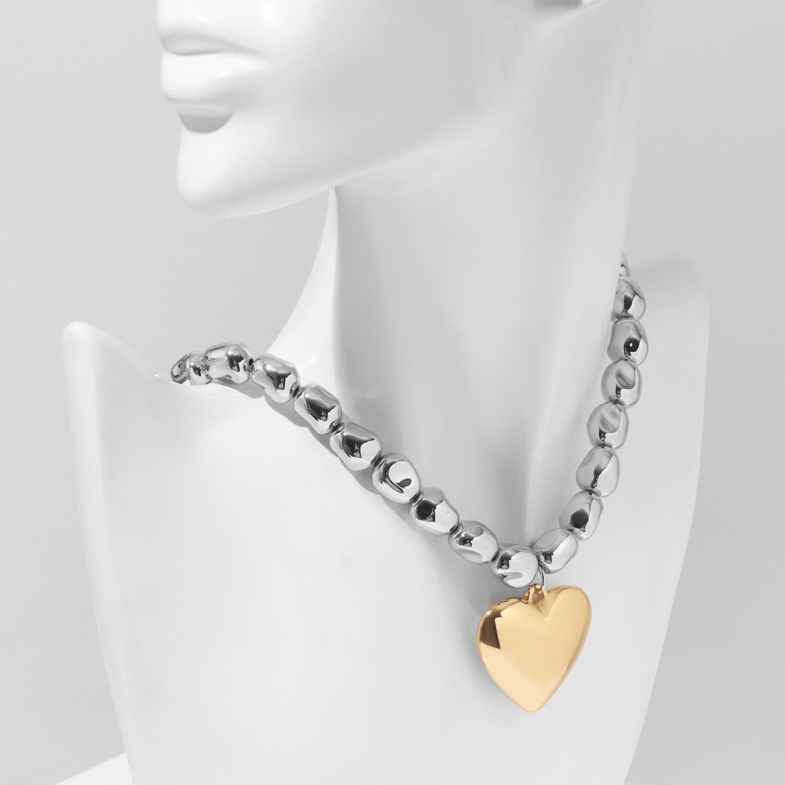 Кулон на декоративной основе "Сердце" объёмное, цвет серебро с золотом, 40 см, 4x40x3.5 см., QF, Китай