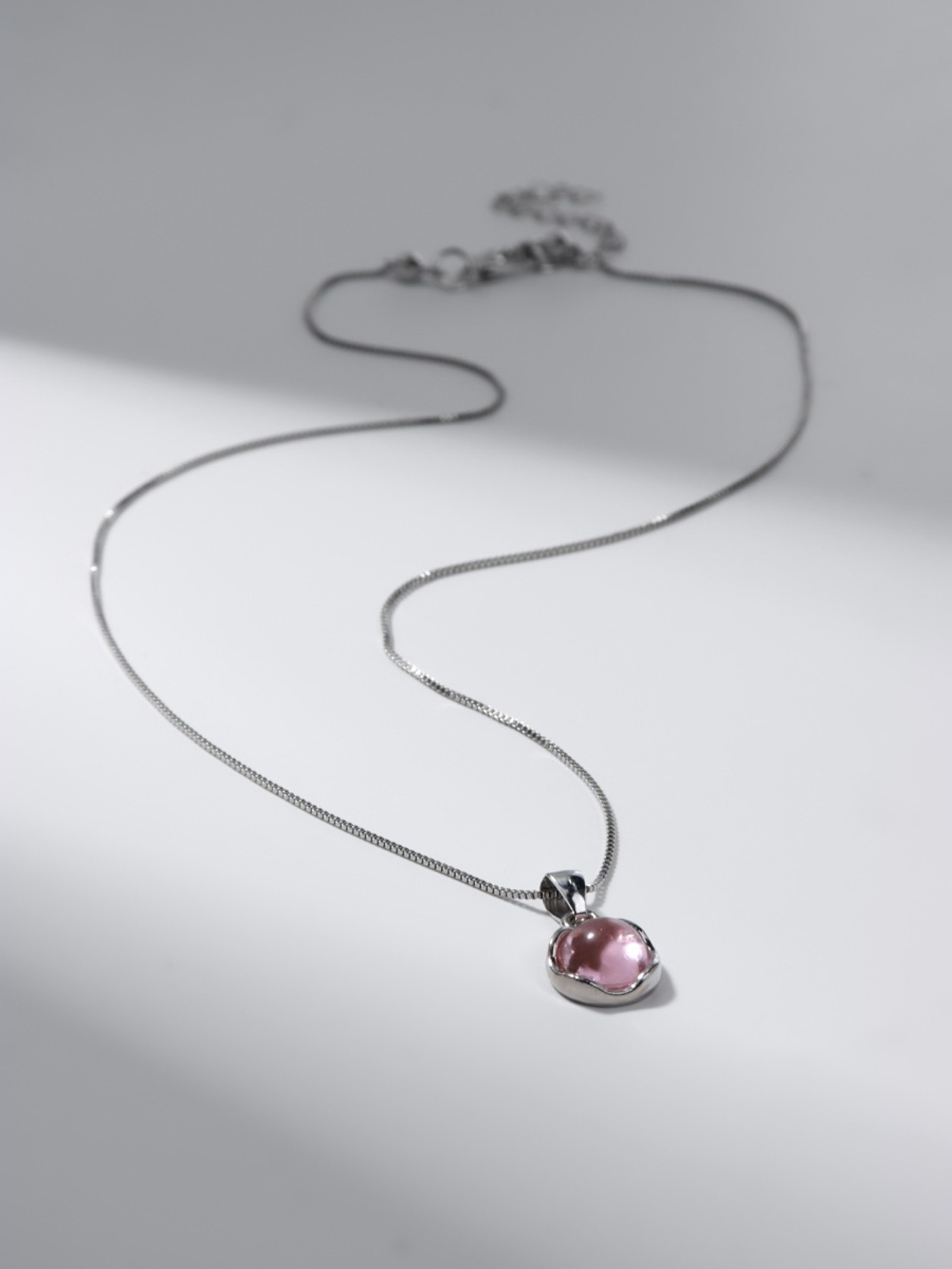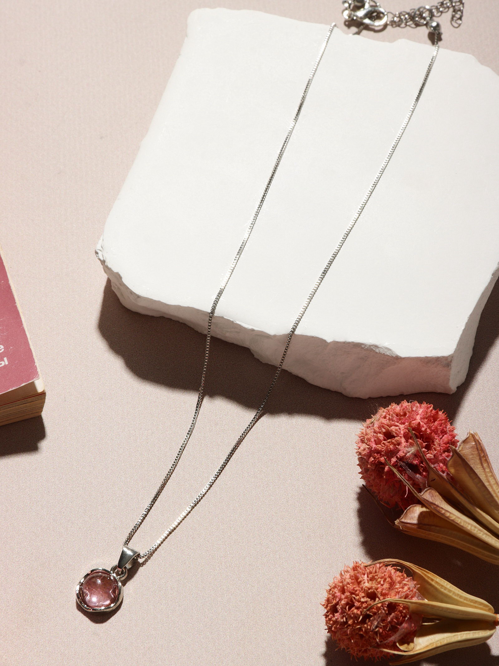 Кулон "Нежность" на цепочке, розовый в серебре, 45 см, 1.5x45x1.5 см., QF, Китай