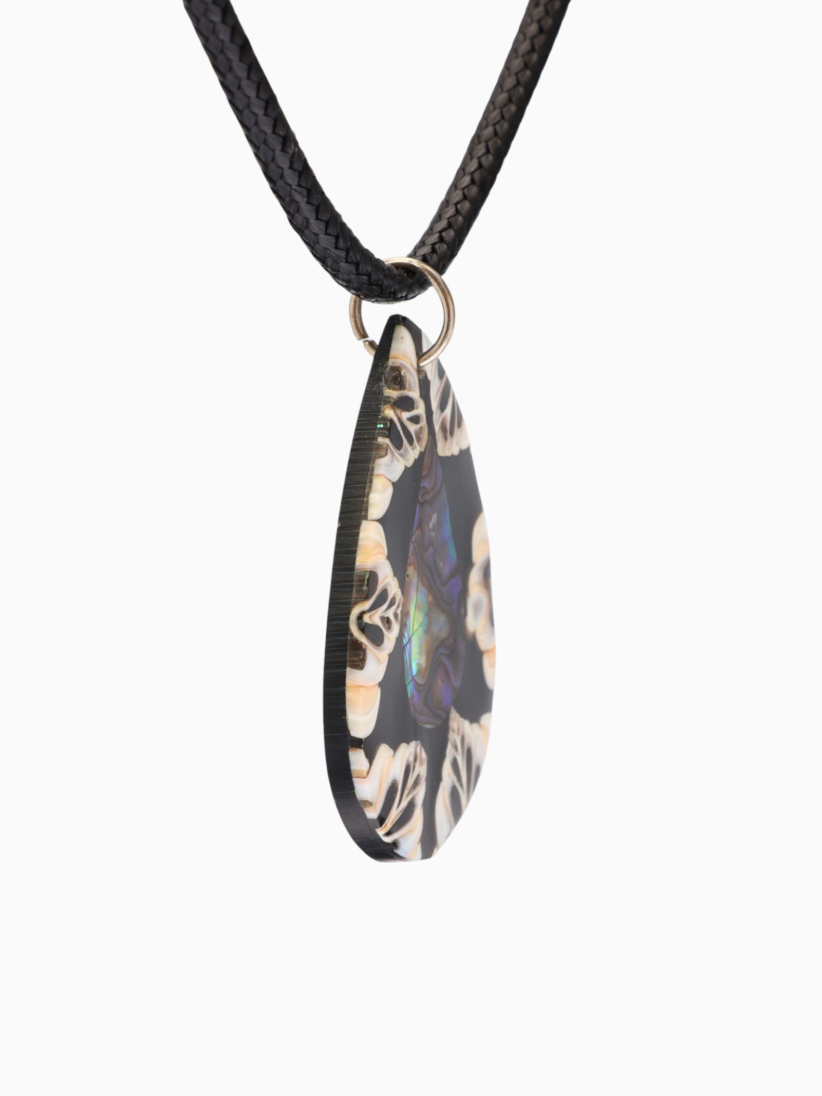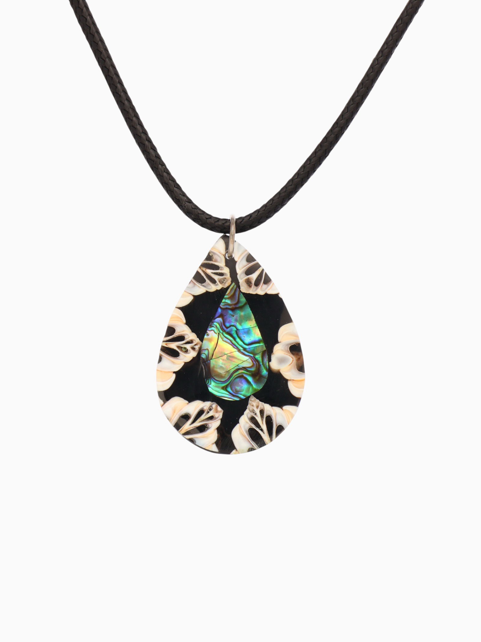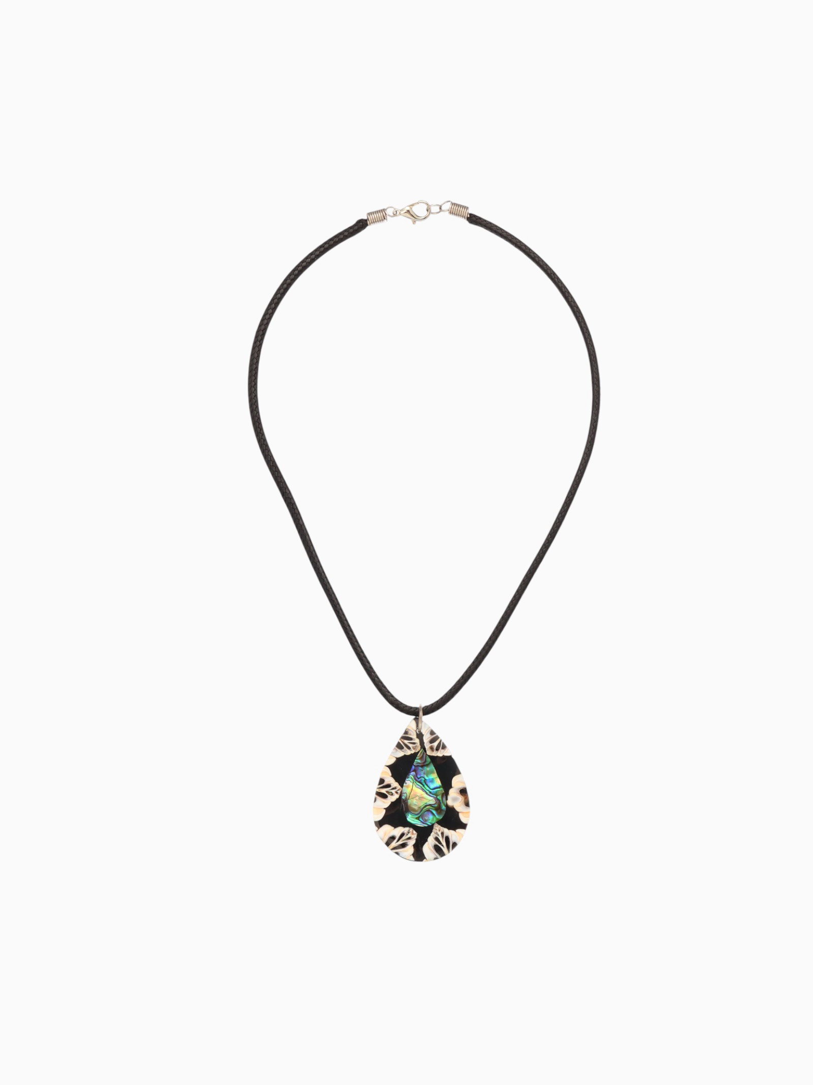 Кулон "Капля", 25.5 см, ракушка, чёрно-белый, 5x5x2 см., Индонезия
