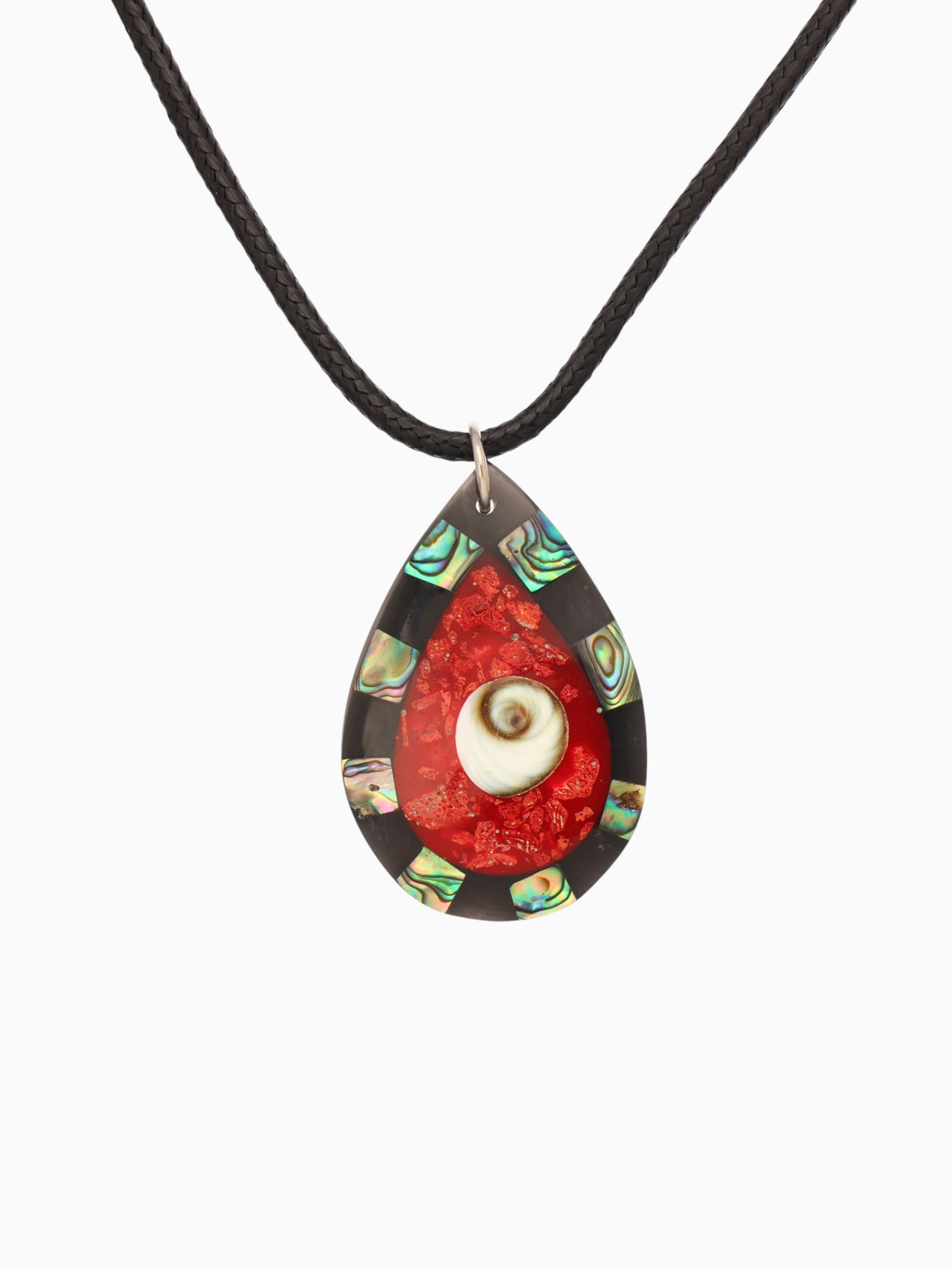 Кулон "Капля", 25.5 см, ракушка, чёрно-красный, 5x5x2 см., Индонезия
