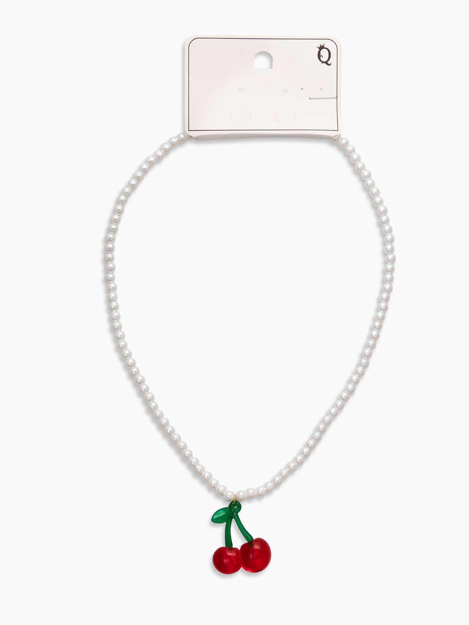 Кулон на жемчужной нитке "Вишня", цветной, 3x45x1.5 см., QF, Китай