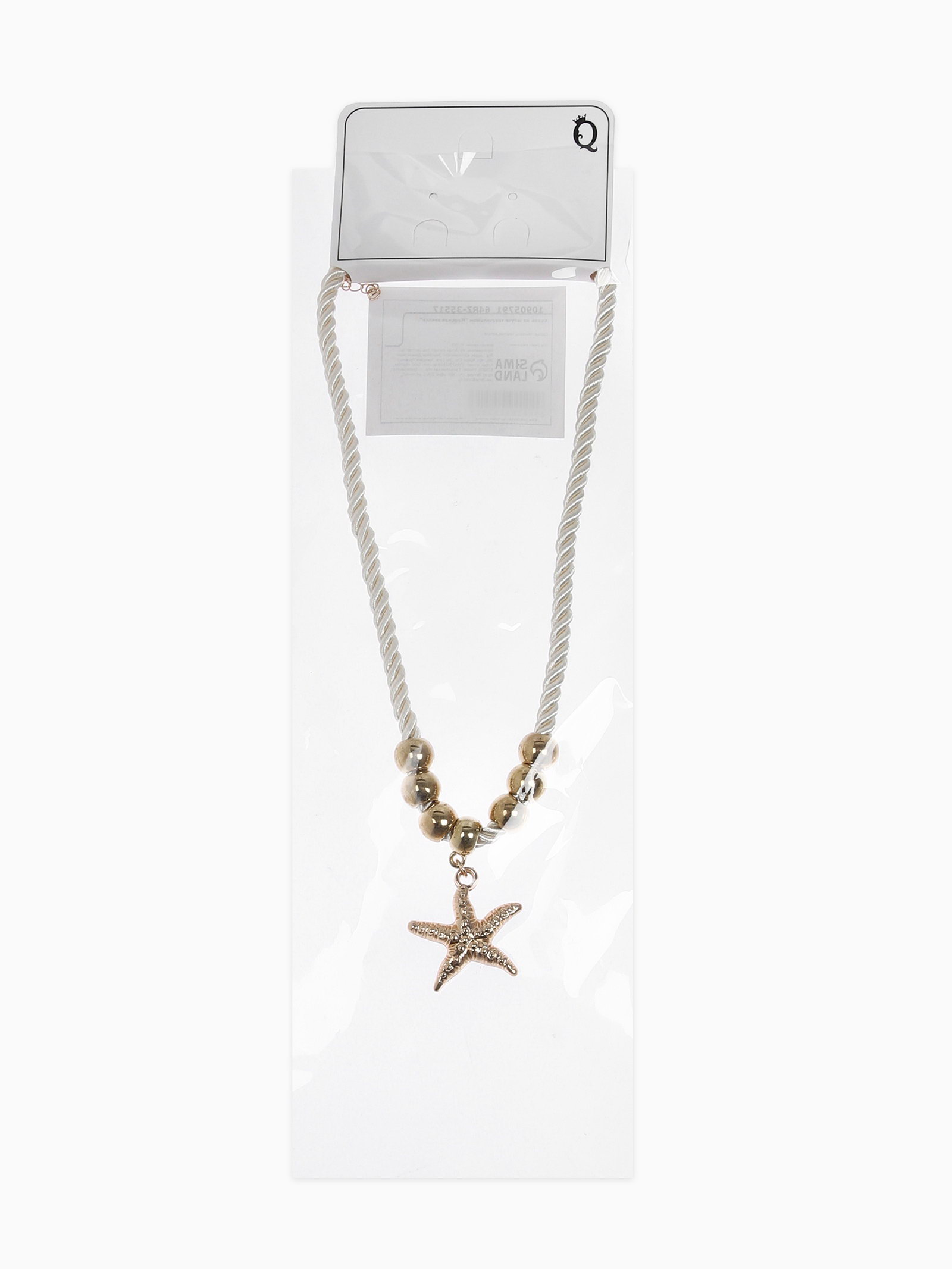 Кулон на жгуте текстильном "Морская звезда", цвет бело-золотой, 5.5x45x5.5 см., QF, Китай