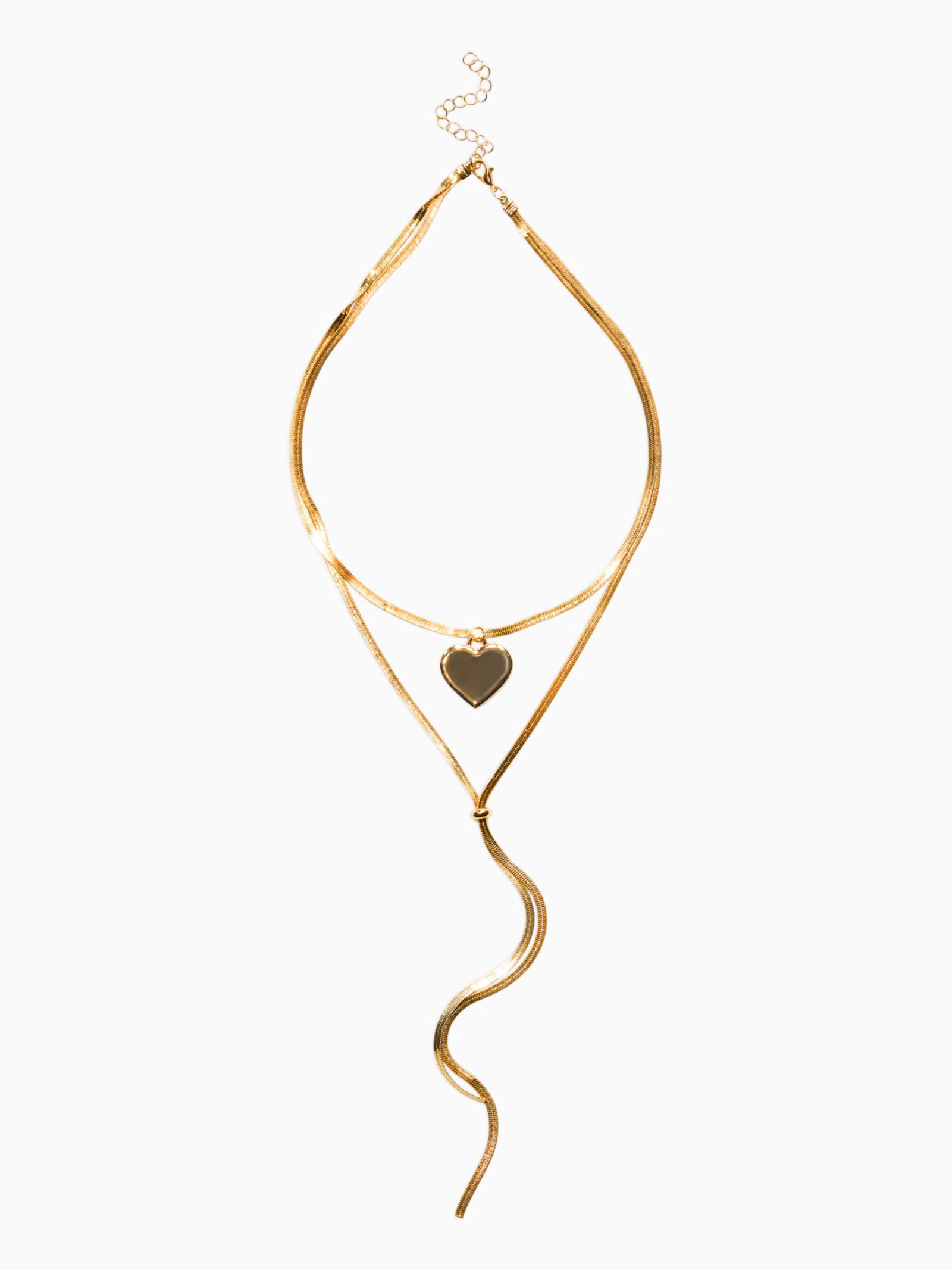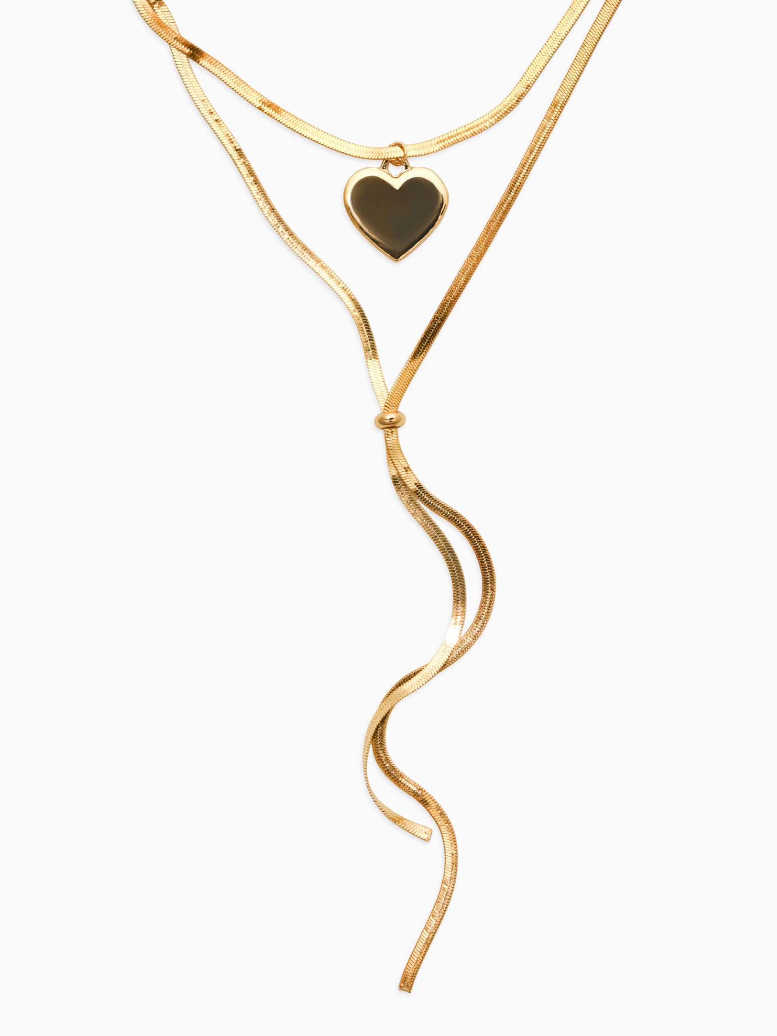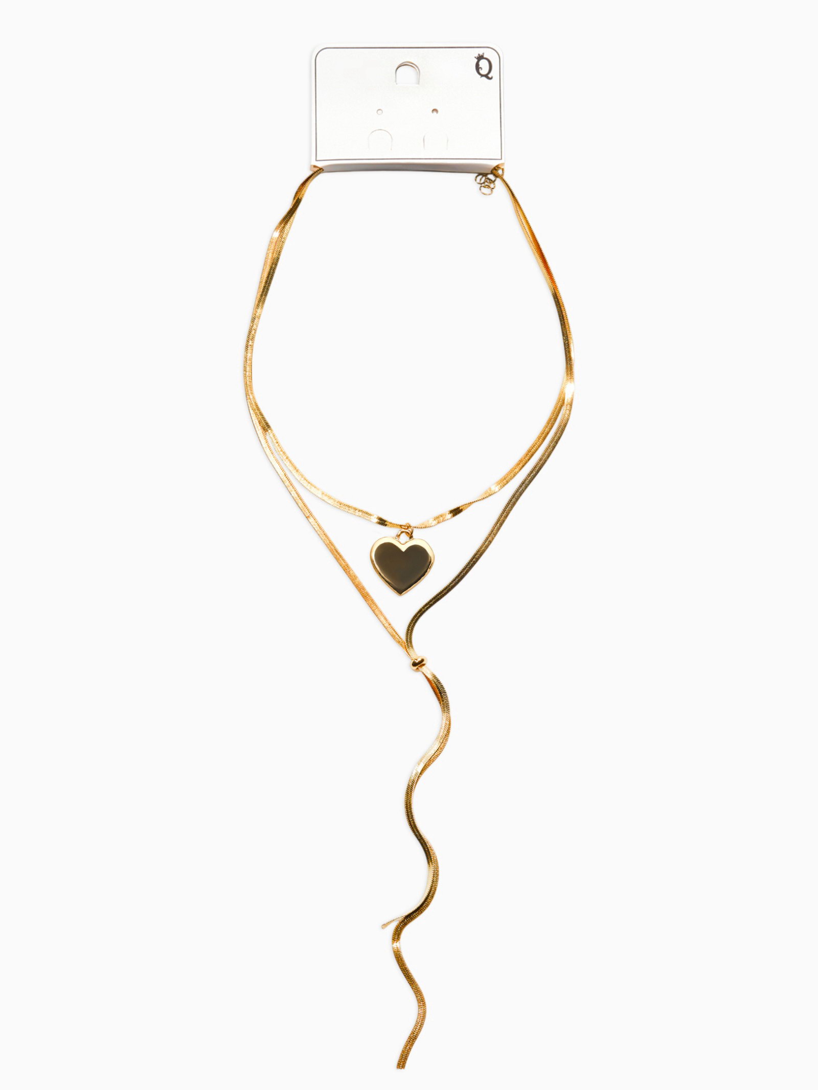 Кулон на затяжке многослойный "Медальон сердце", 2 яруса L=40, 70 см, медь, цвет золото, 2.5x70x2 см., QF, Китай