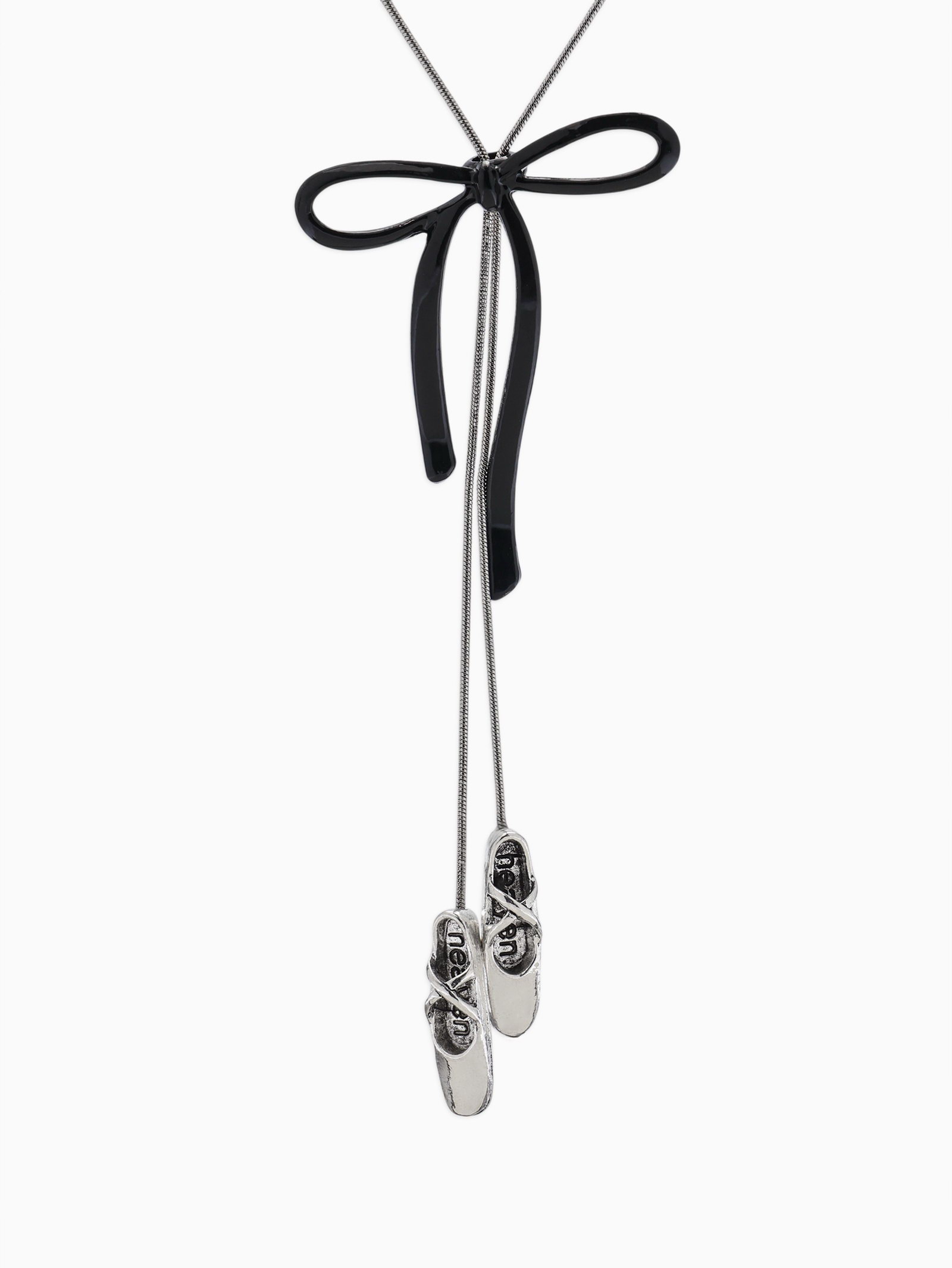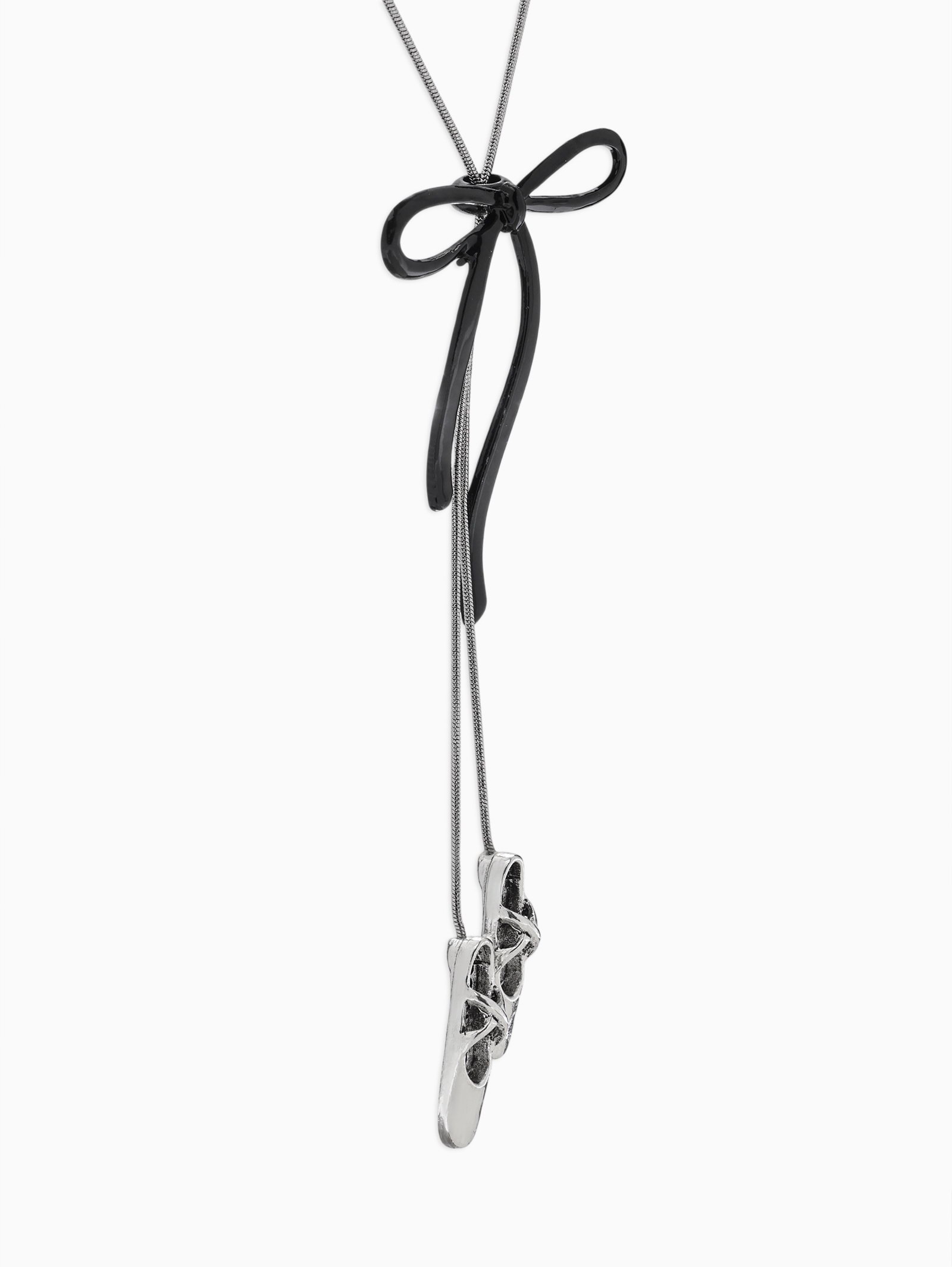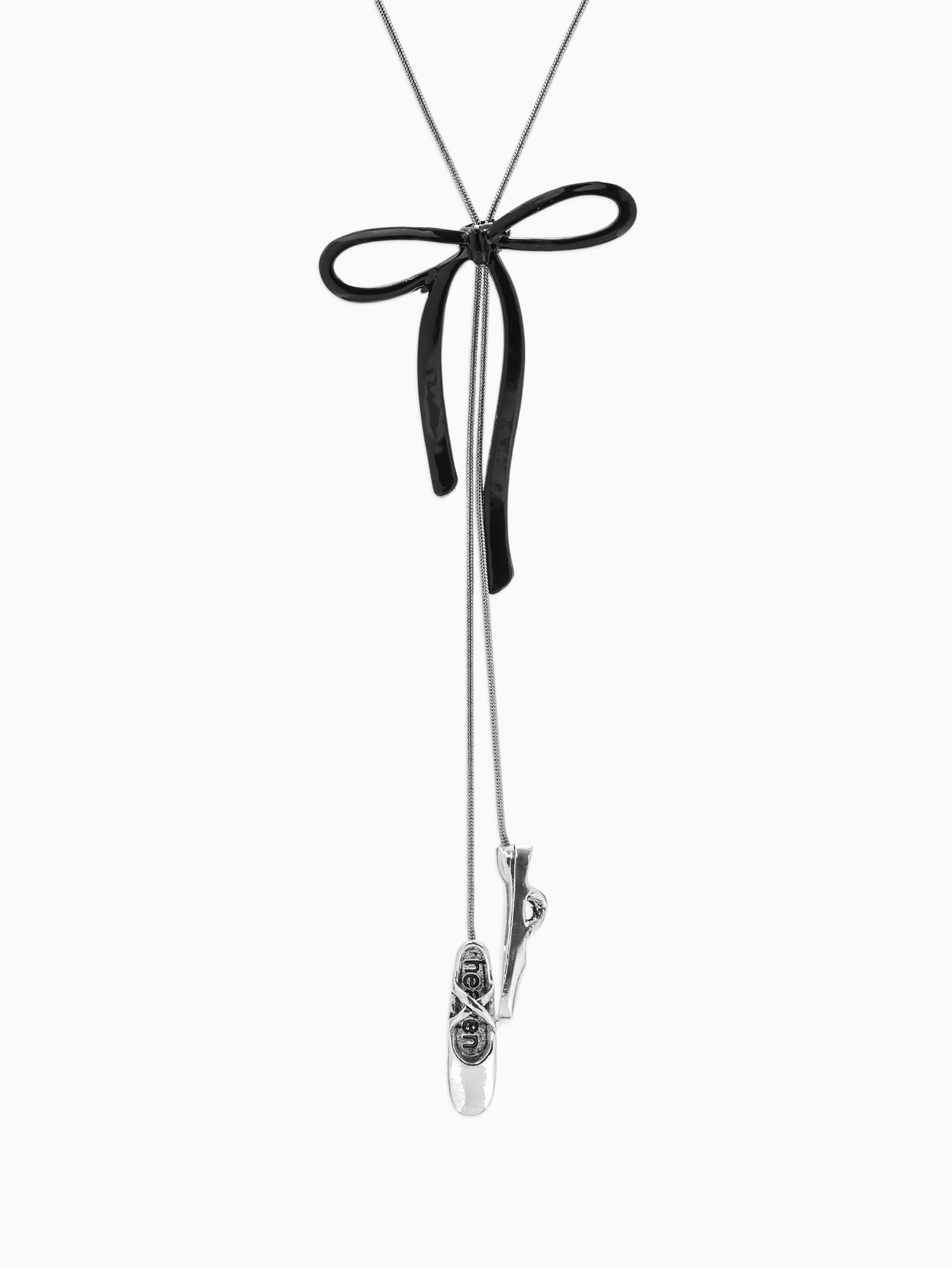 Колье-чокер на затяжке "Балерина. Пуанты с бантиком", L=60 см, цвет серебро, чёрный, 1x60x1 см., QF, Китай