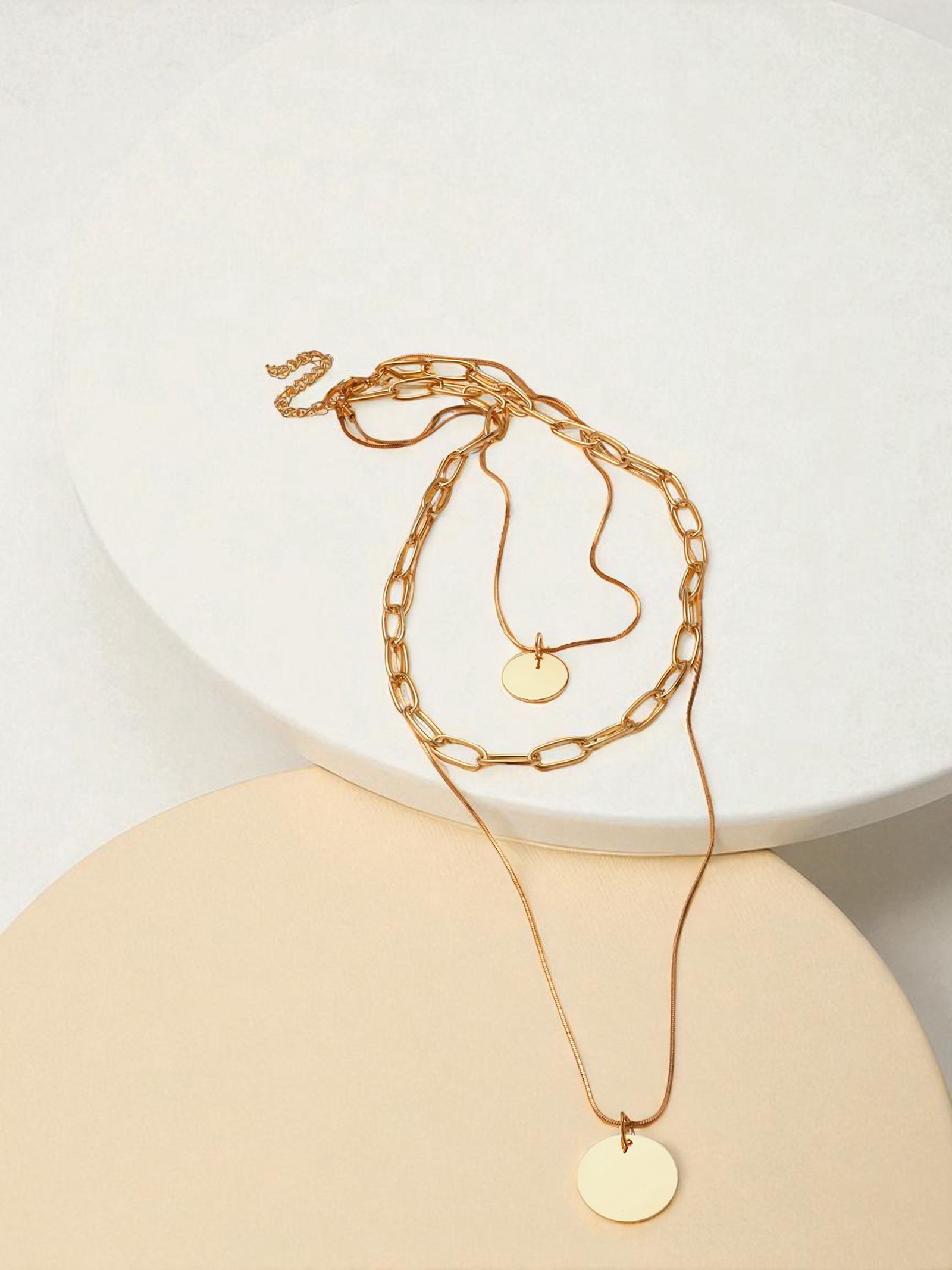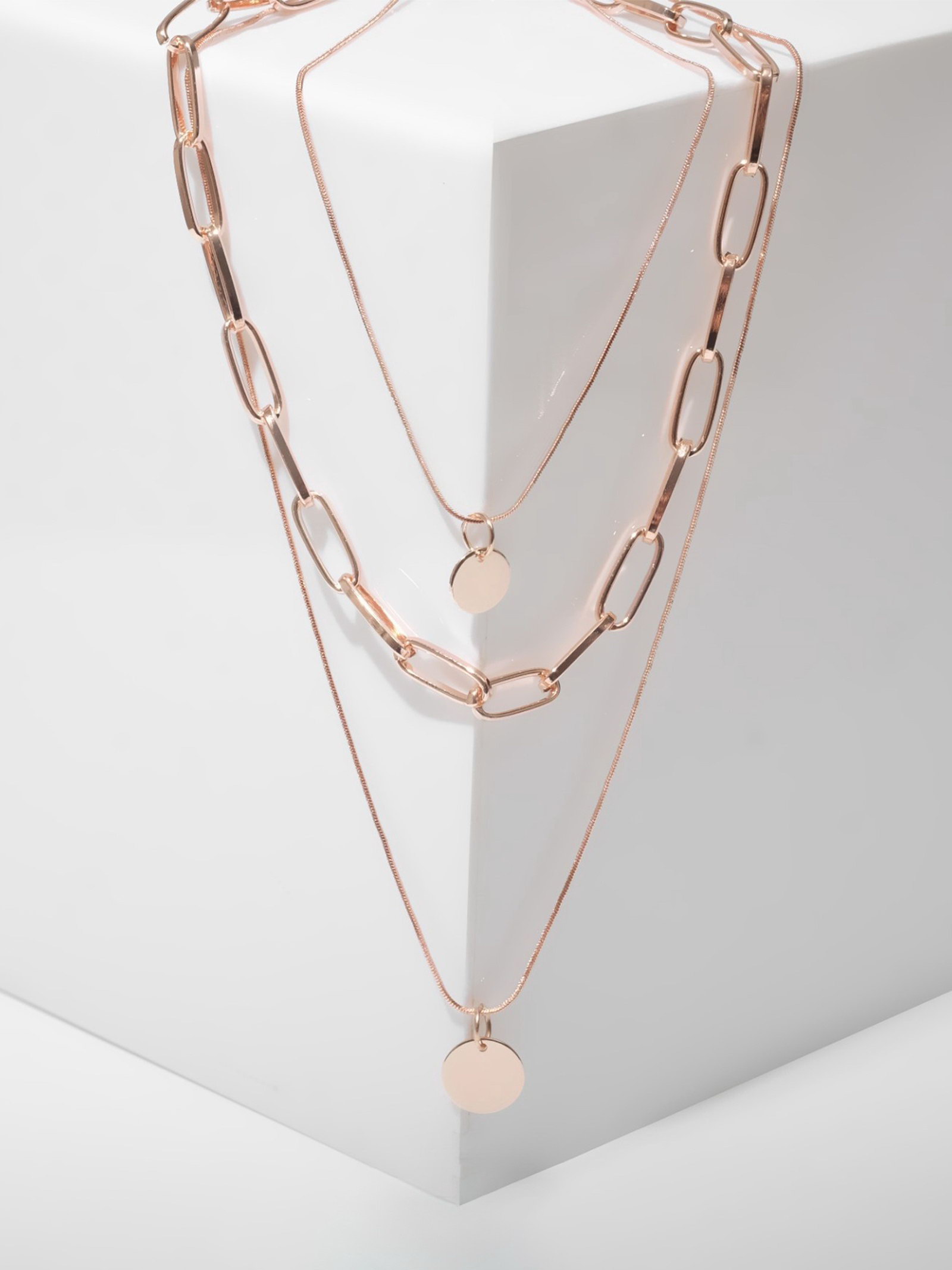 Кулон "Цепь" три нити, цвет розовое золото, 66 см, 18.2x66x0.5 см., QF, Китай