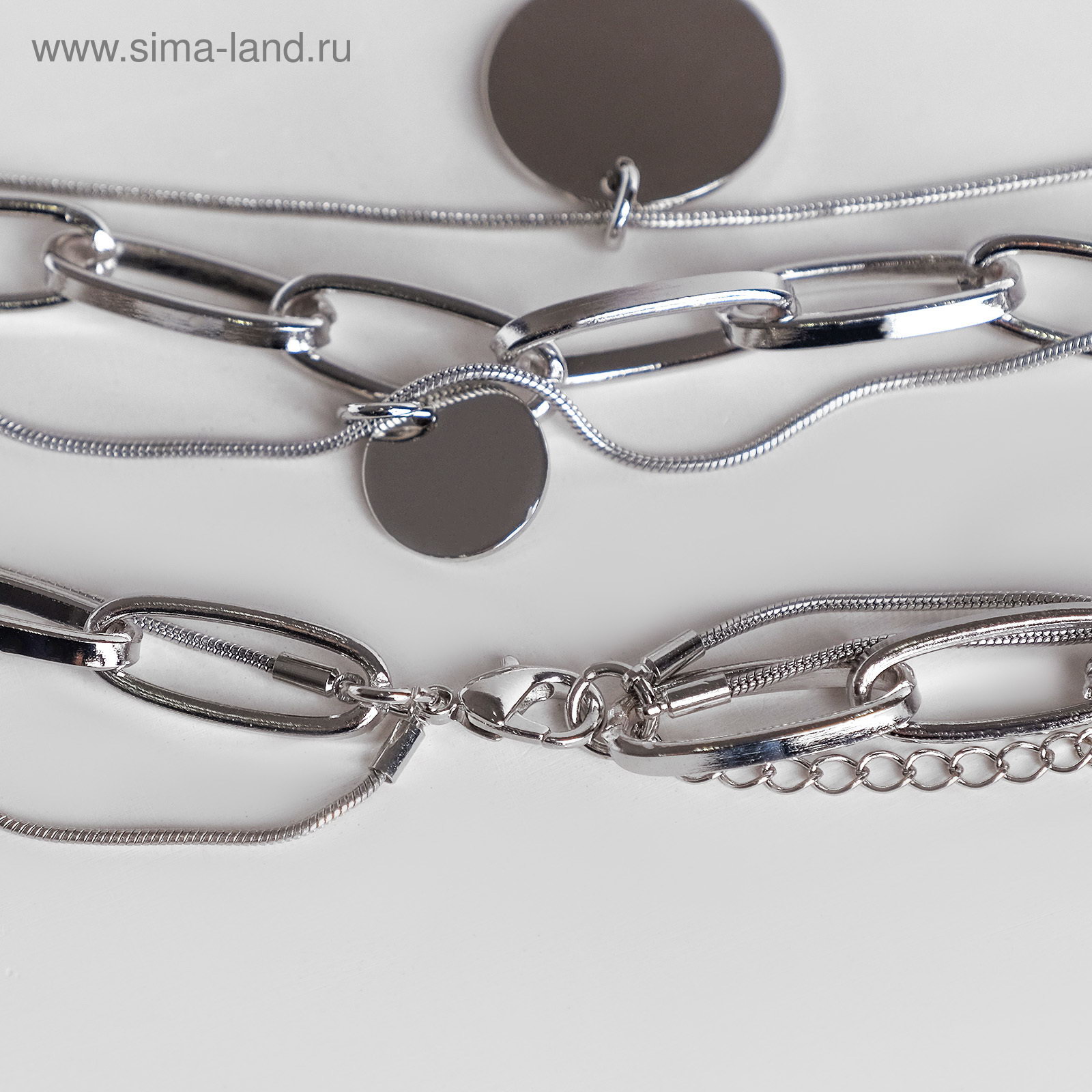 Кулон "Цепь" три нити, цвет серебро, 66 см, 18.2x66x0.5 см., QF, Китай