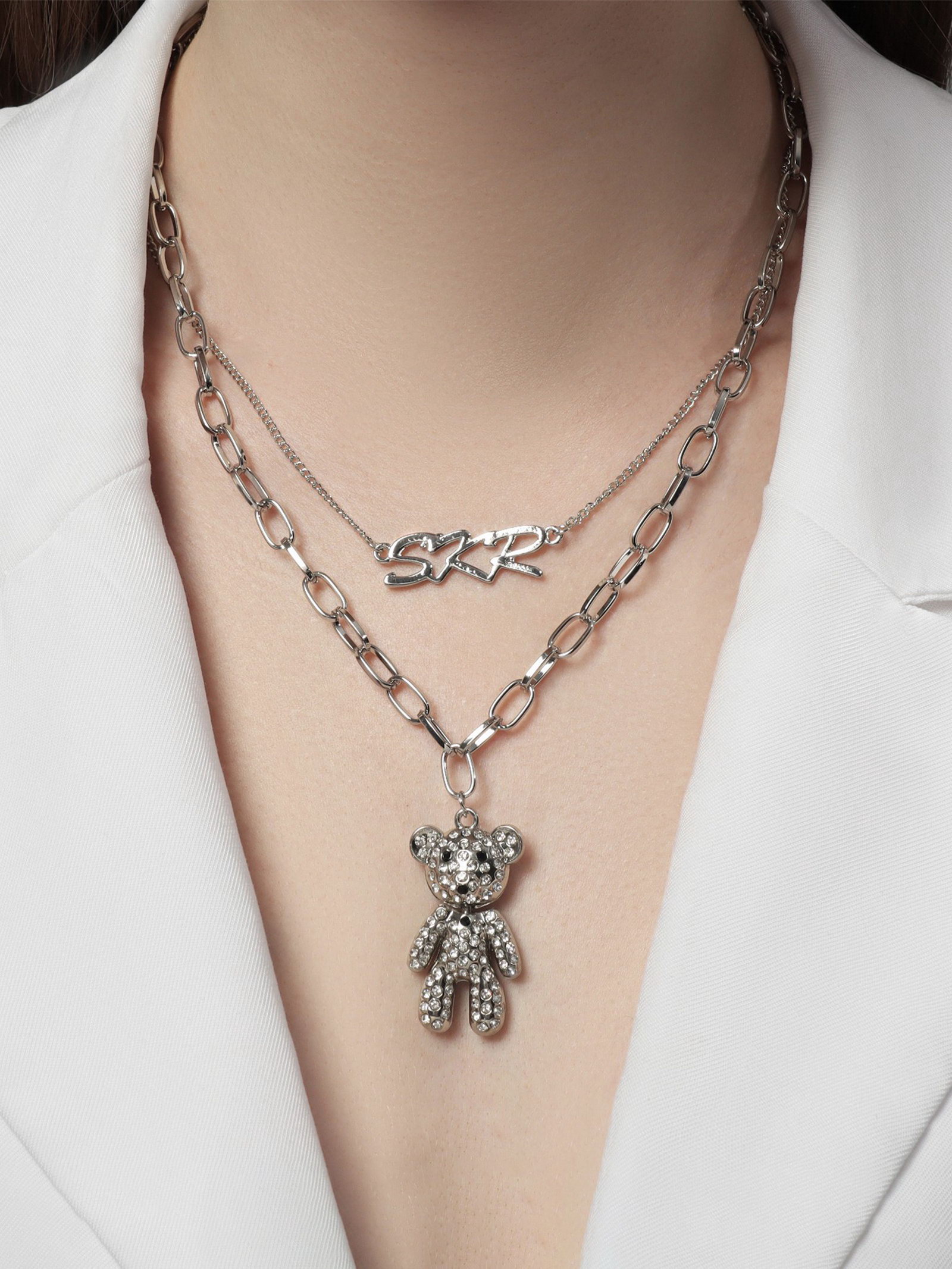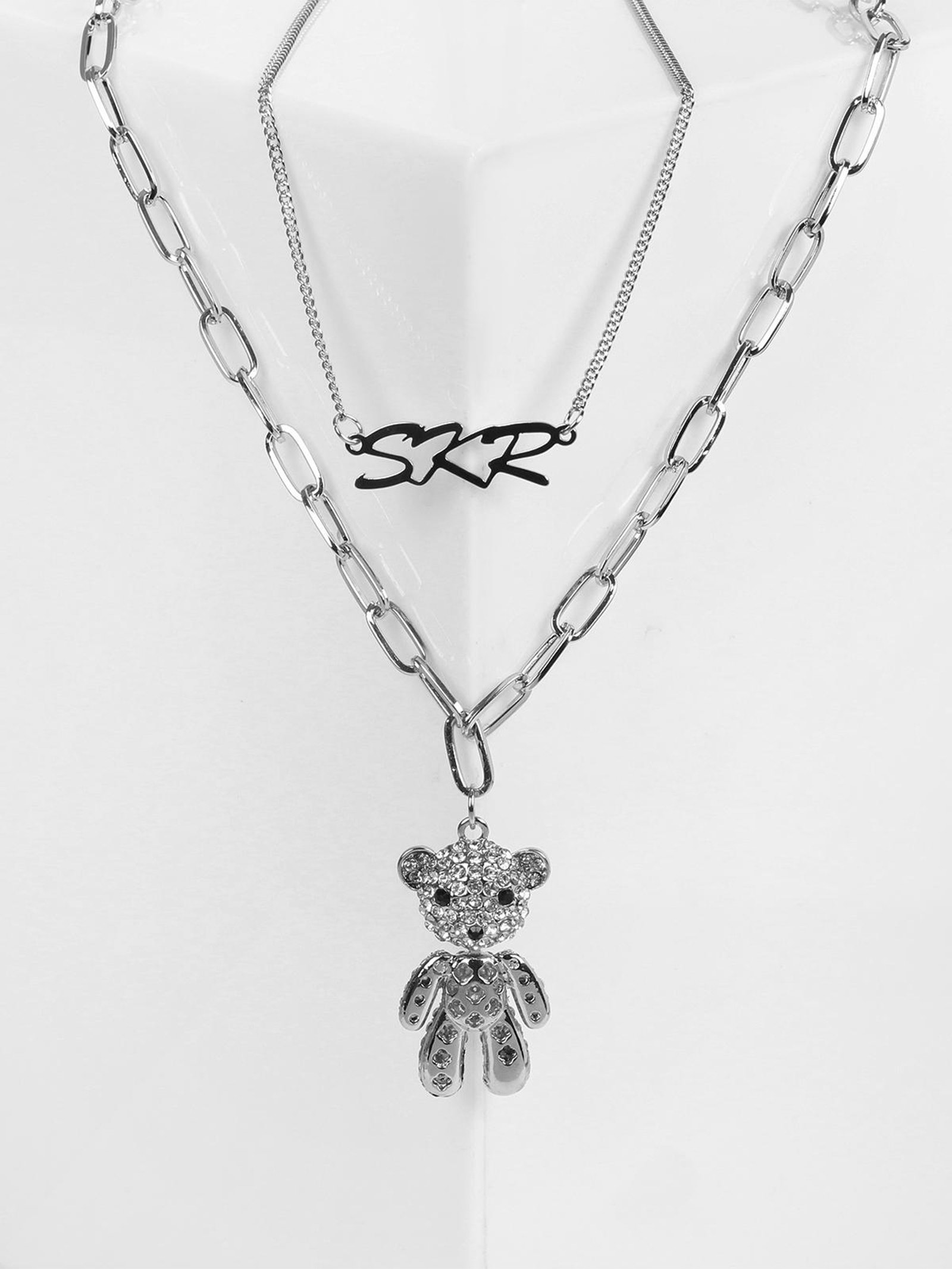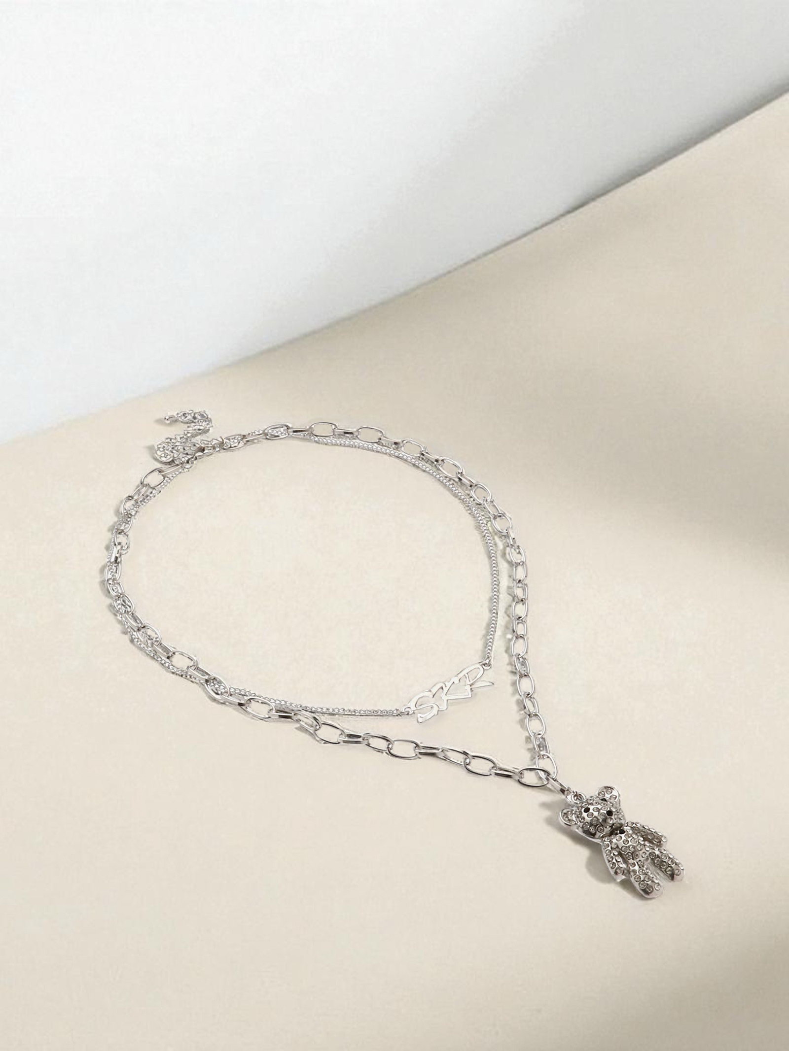 Кулон "Цепь" мишка в стразах, цвет белый в серебре, L=50 см, 9x50x0.5 см., QF, Китай