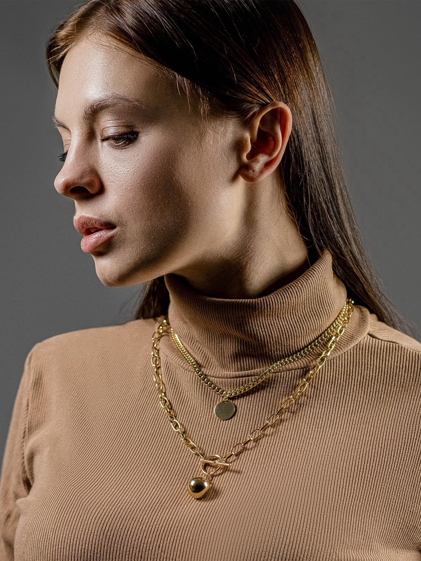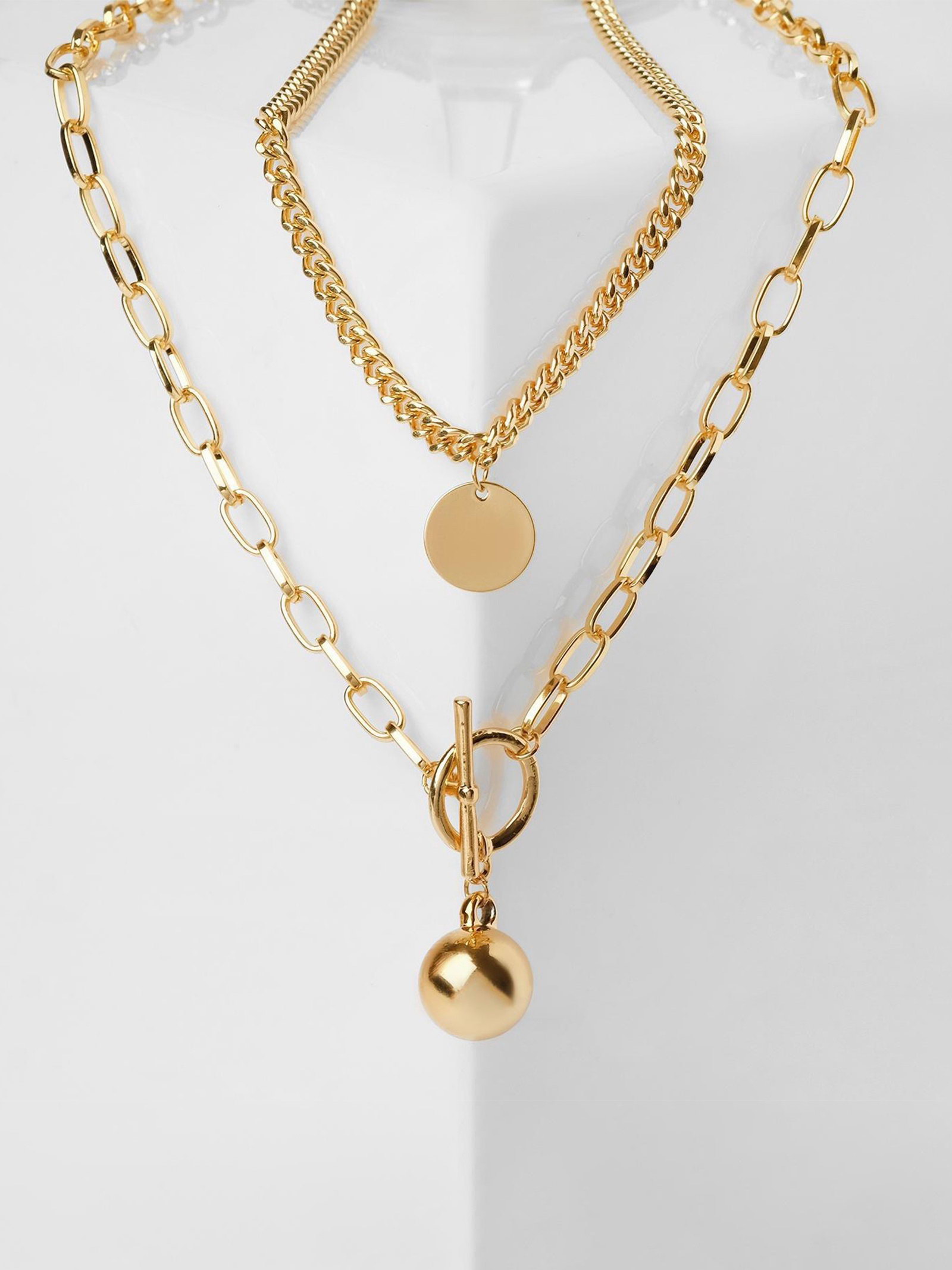 Кулон "Цепь" шар, медальон, цвет золото, L=58 см, 10.5x58x1.5 см., QF, Китай