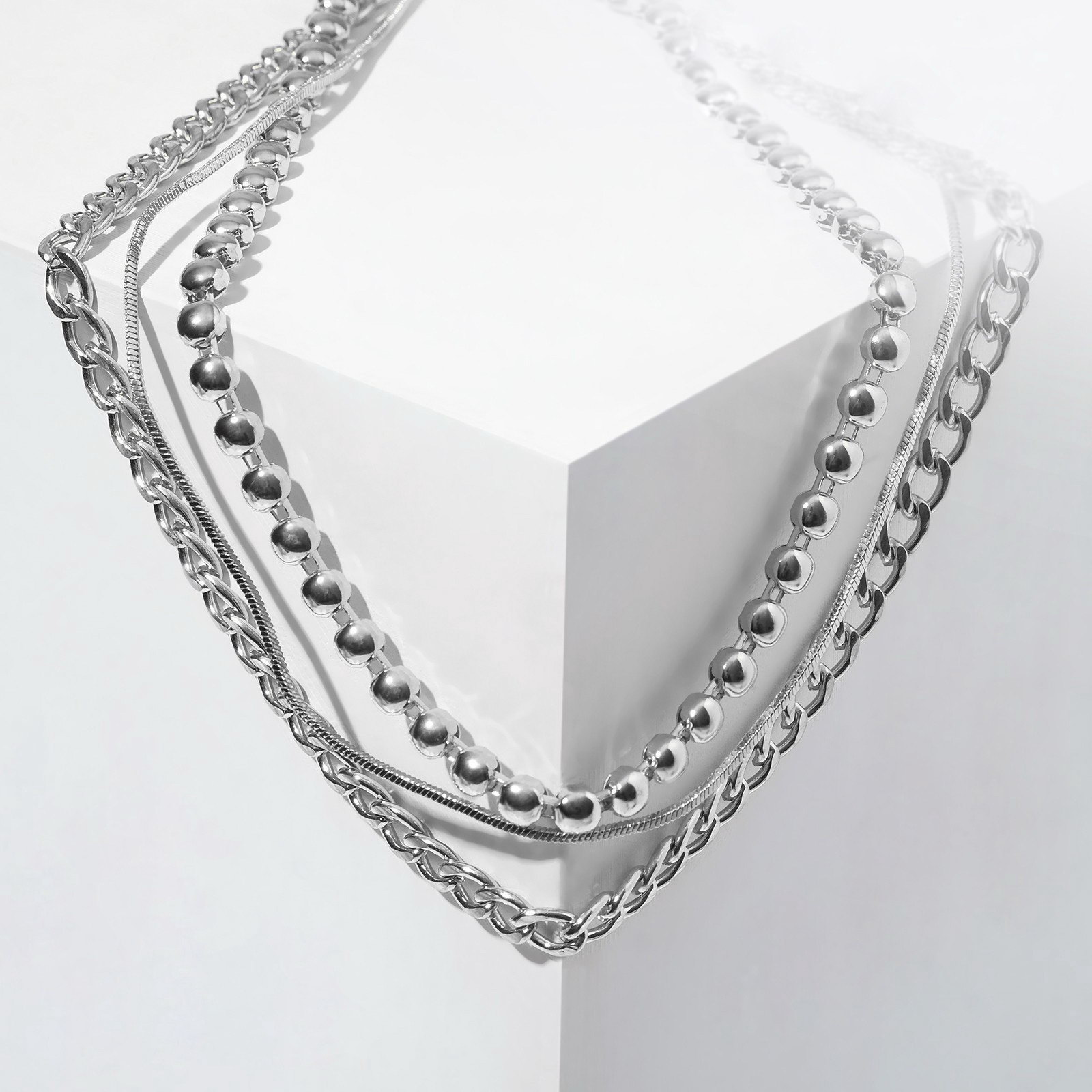 Колье "Тренд" многоуровневый, цвет серебро, 41 см, 4.5x41x0.3 см., Queen fair, Китай