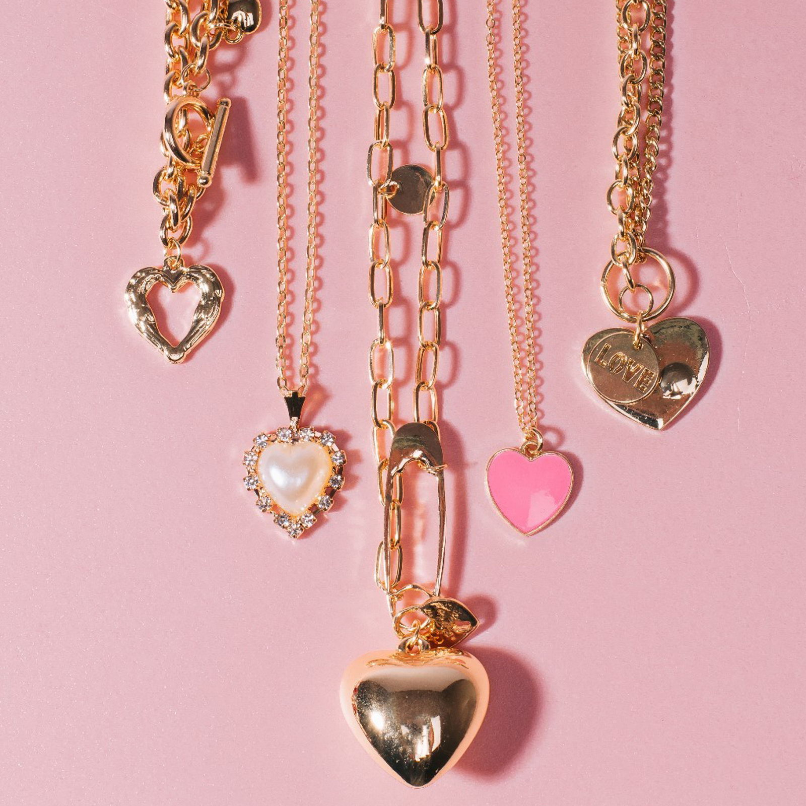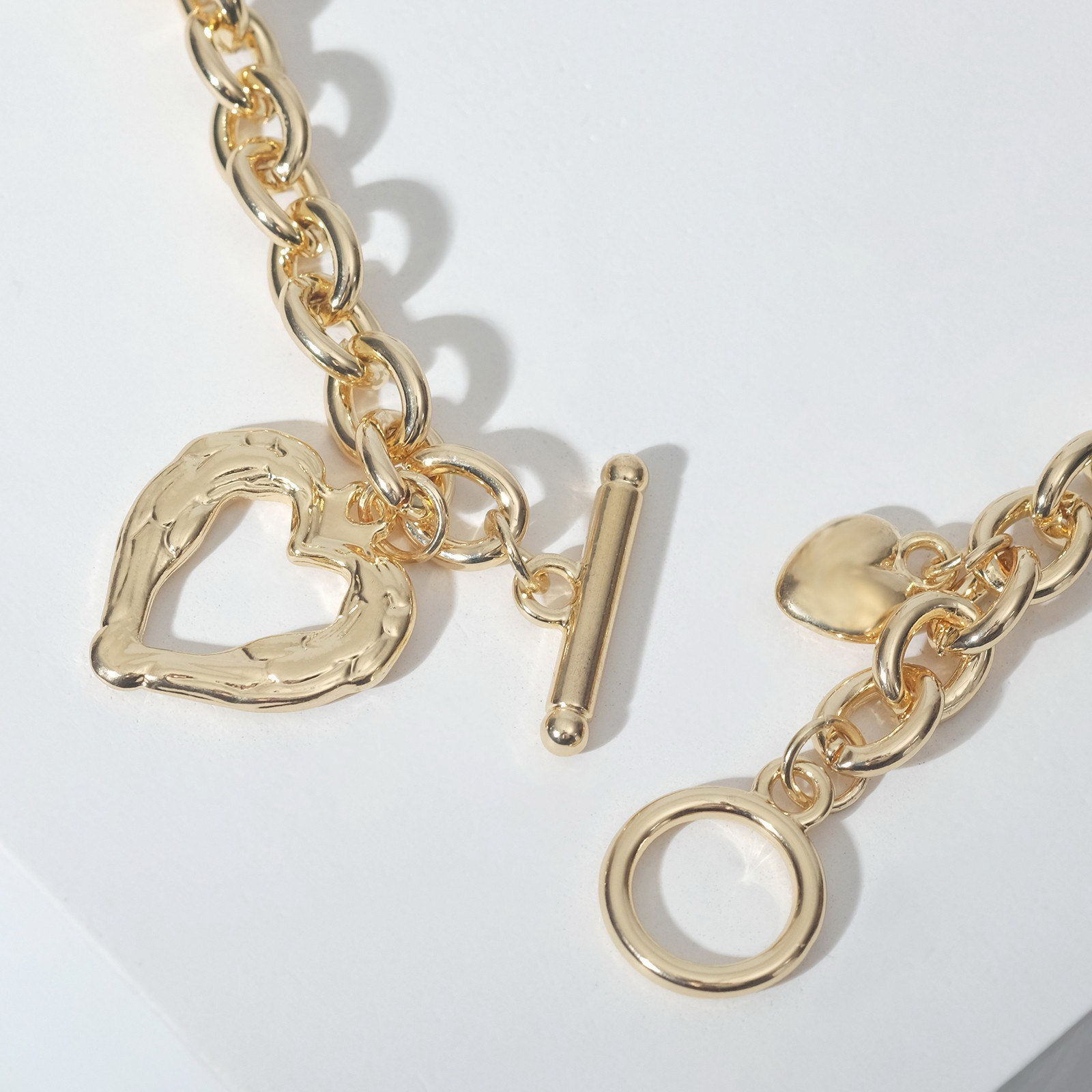 Кулон "Цепь" сердце из коры, цвет золото, 46 см, 2.5x46x1 см., QF, Китай