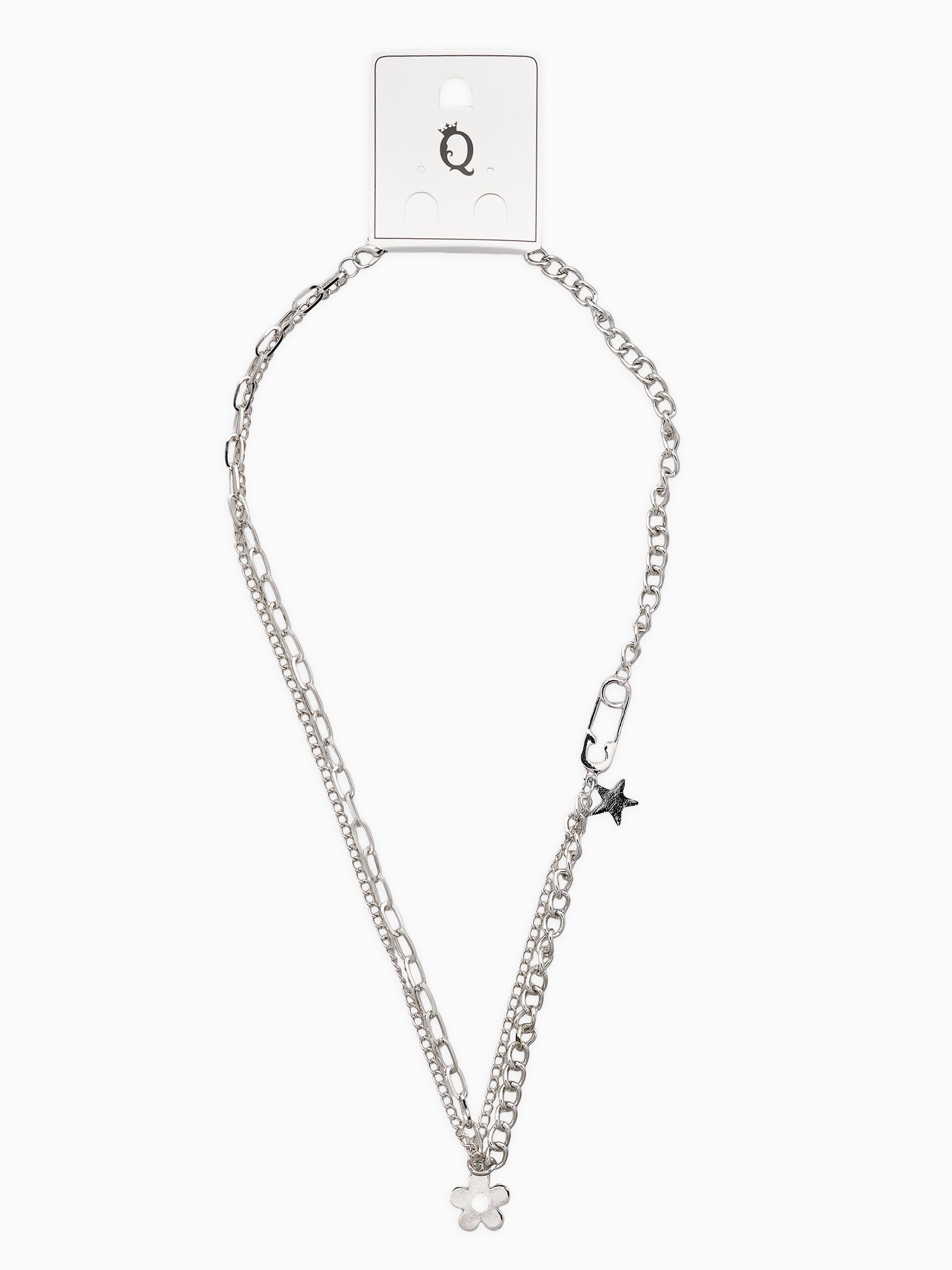 Цепь двойна "Нежный хард-рок", 40см, цвет серебро, 1.5x40x1.5 см., QF, Китай