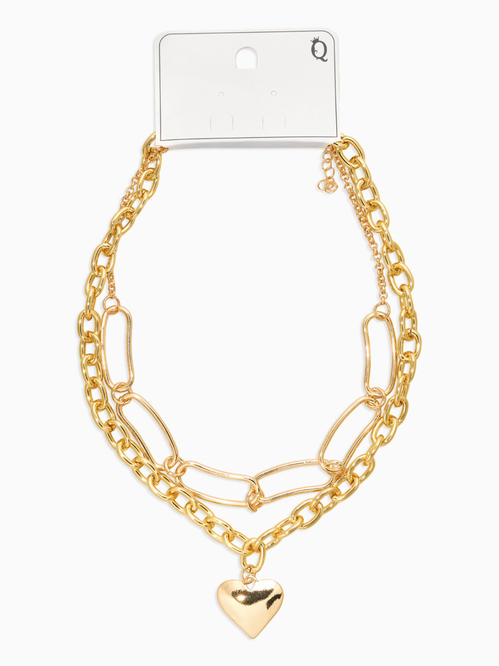 Цепь многослойная "Железное сердце", 2 яруса, L=32 и 40 см, цвет золото, 2.5x40x2.5 см., QF, Китай