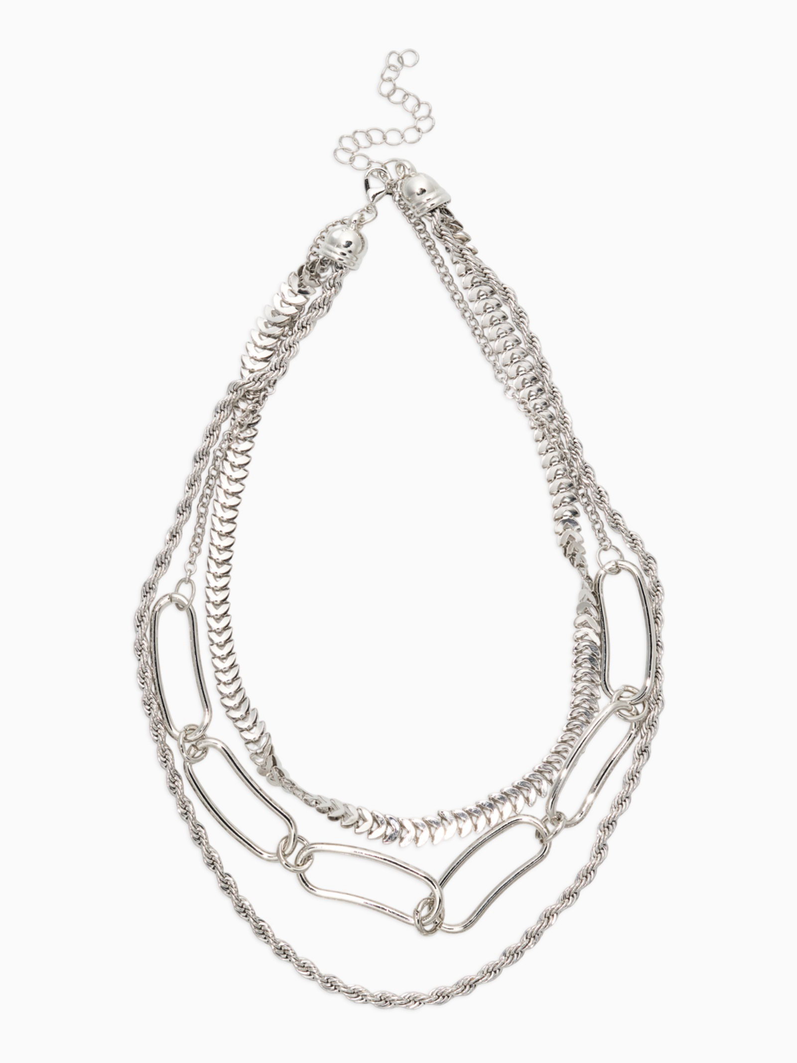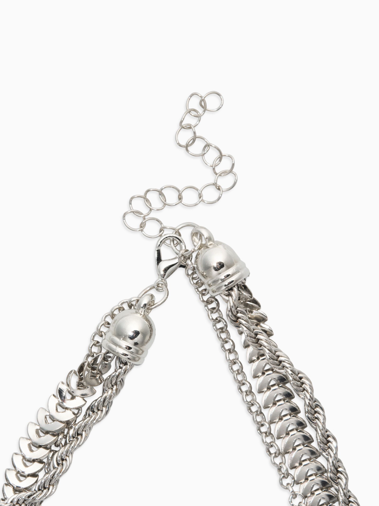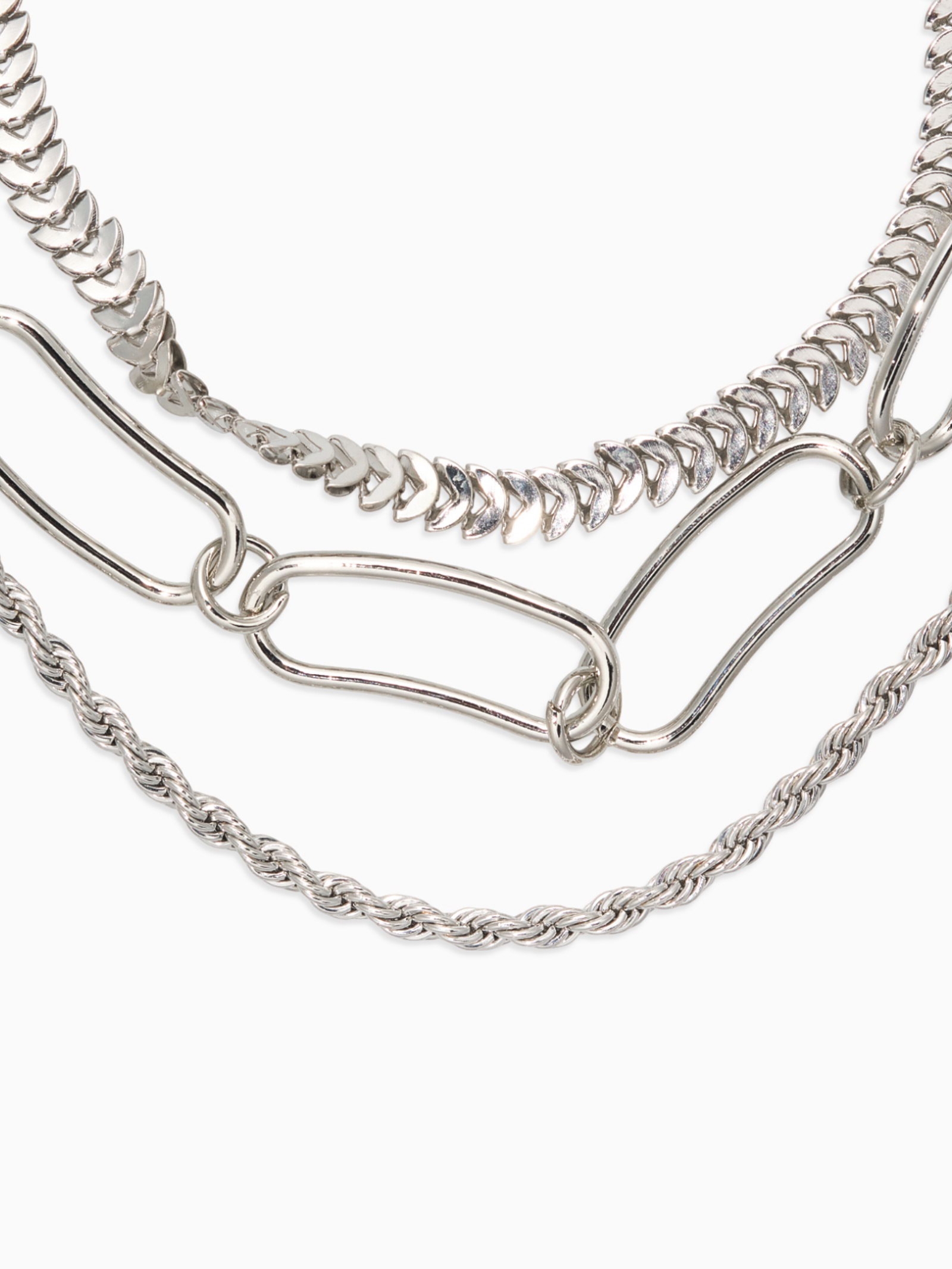 Цепь многослойная "Три вида", железо, 3 яруса, L=30, 32, 40 см, цвет серебро, 3x40x0.4 см., QF, Китай