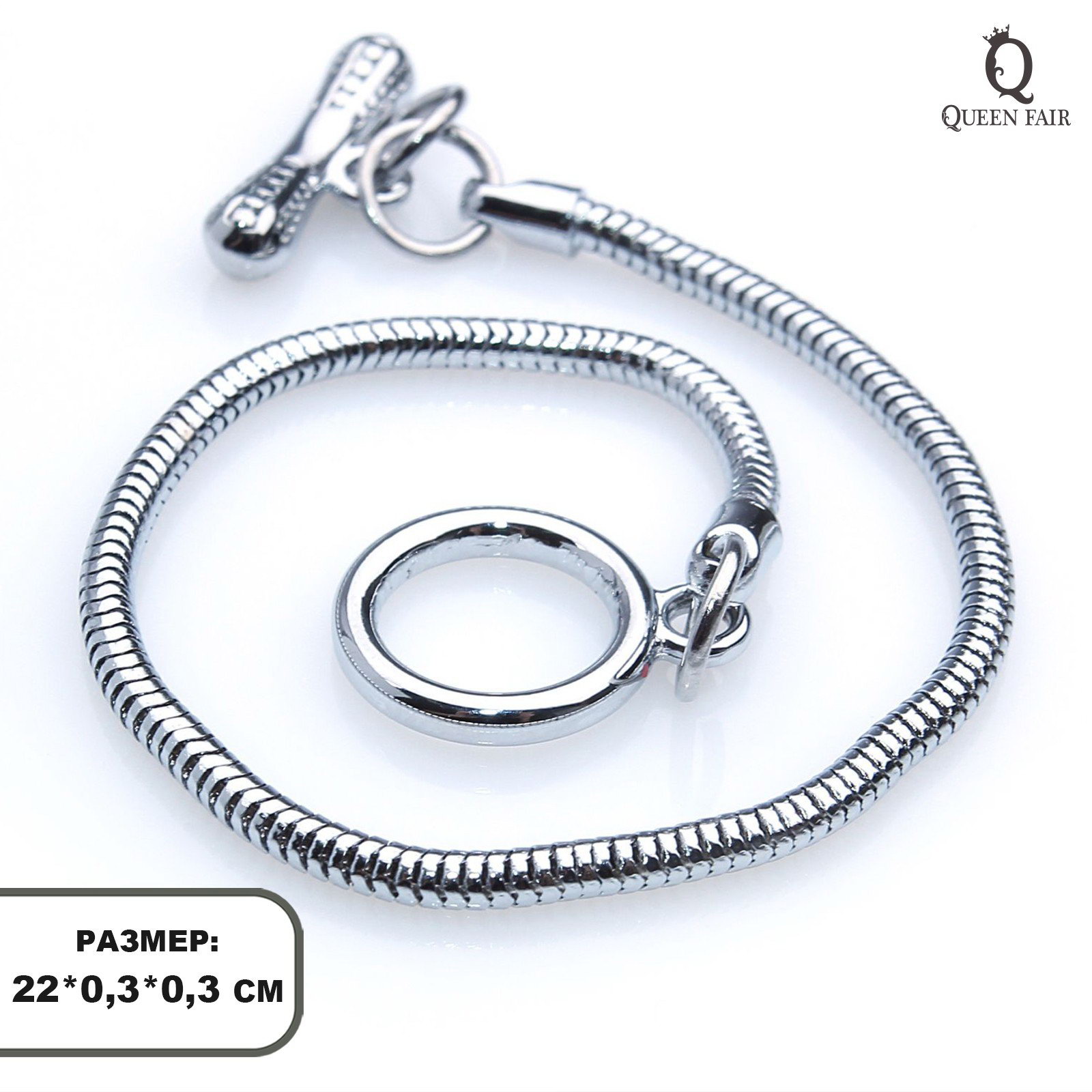 Основа для браслета "Тоггл", цвет серебро, 22 см, 0.3x22x0.3 см., Queen fair, Китай