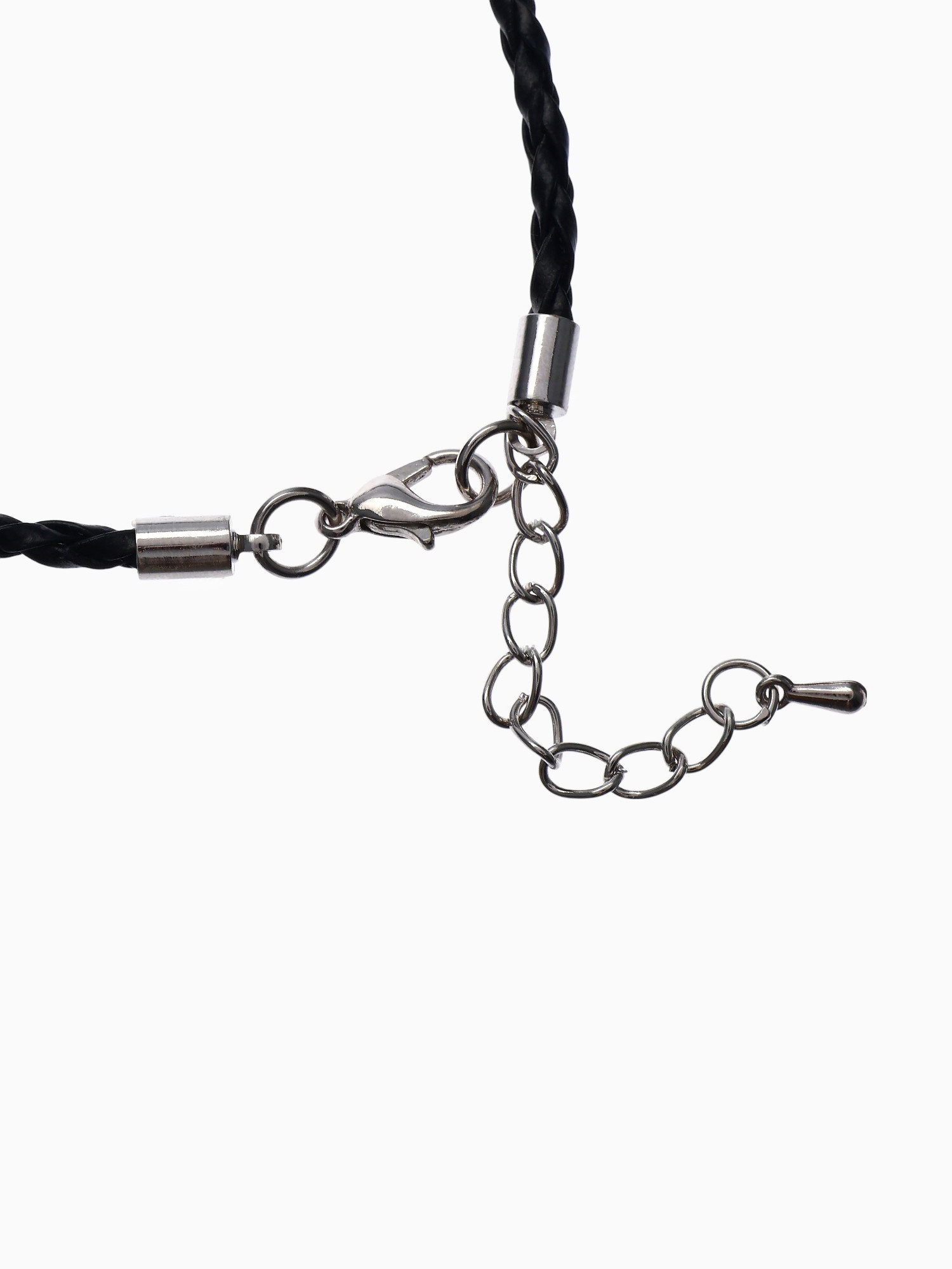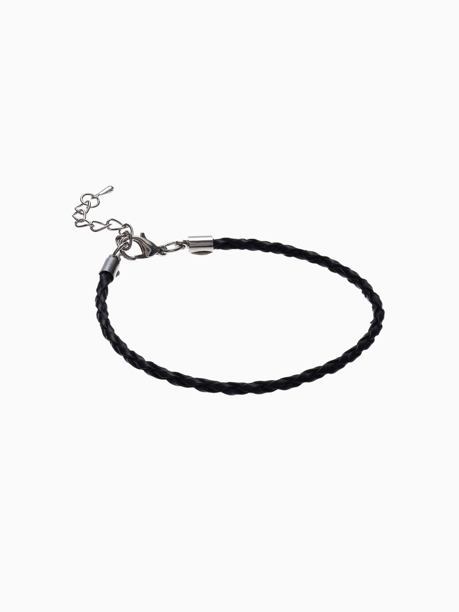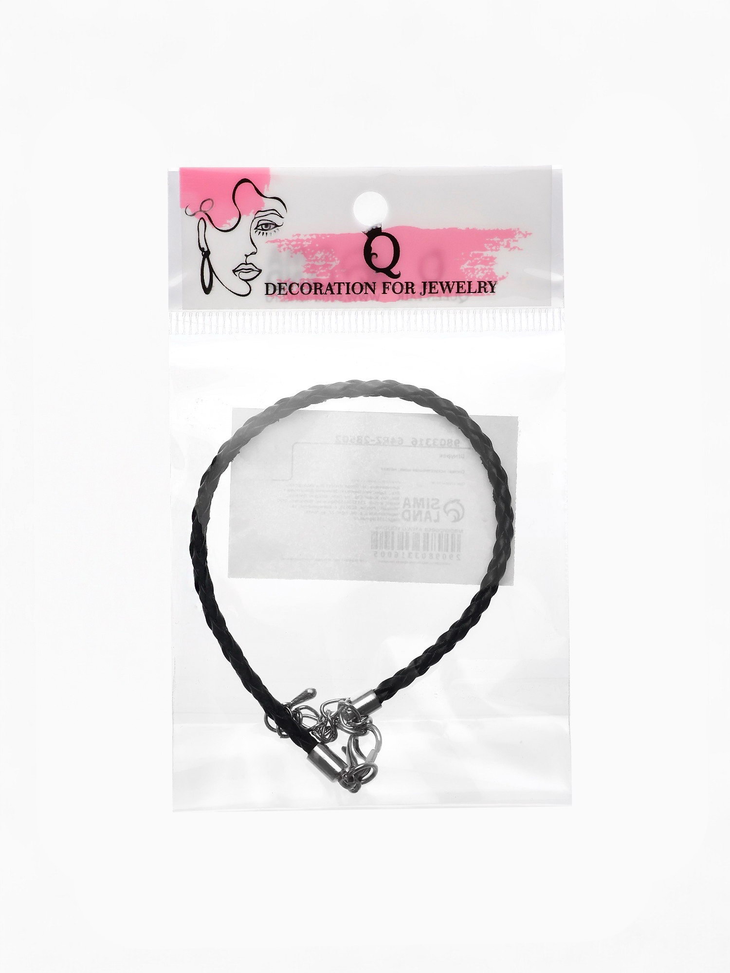 Браслет для шармов "Косичка" кожаный, вощёный, цвет чёрный в серебре, L=20 см с удлинителем, 0.3x20x0.3 см., QF, Китай