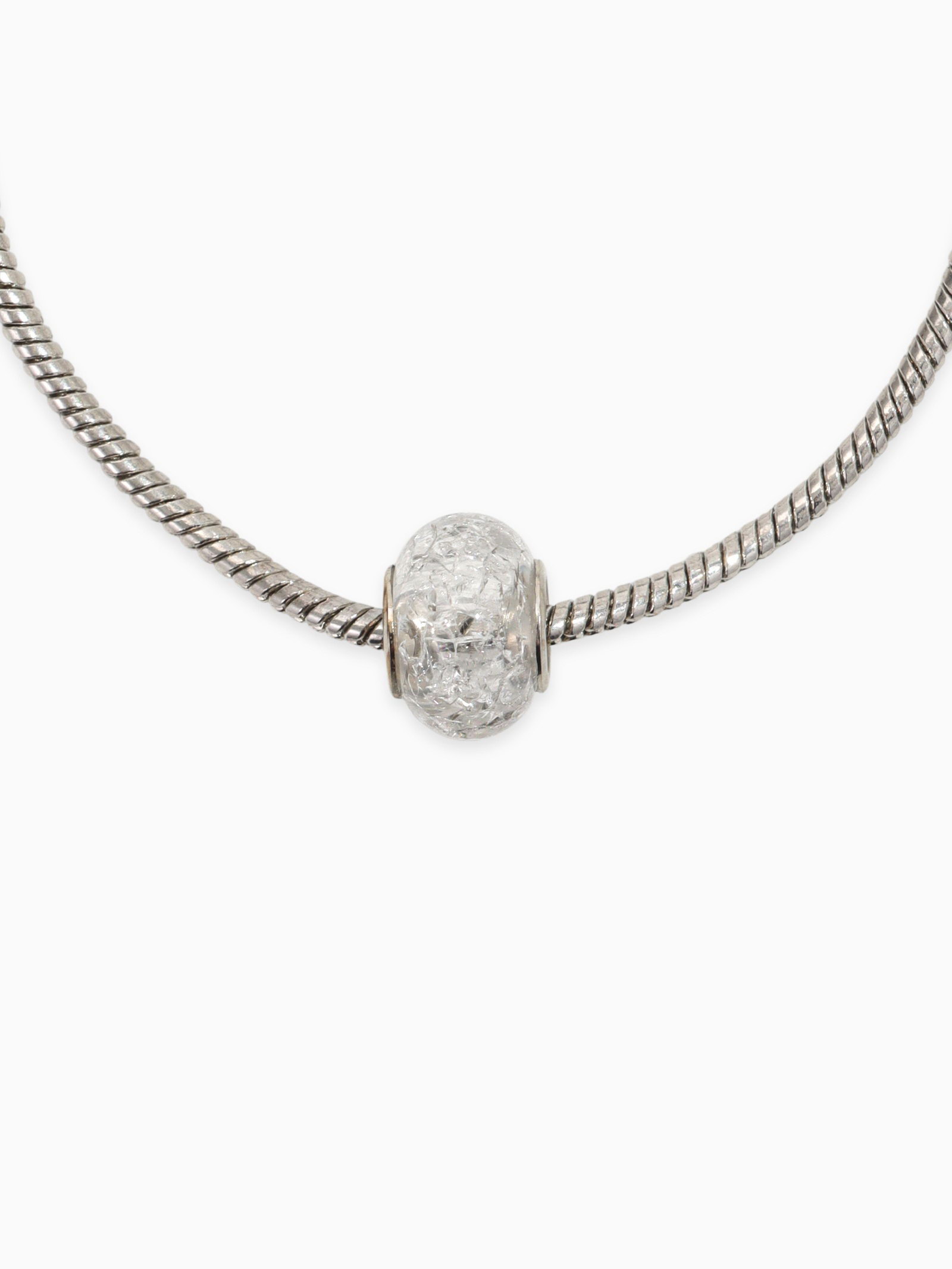 Шарм бусина "Сахарный кварц", белая в серебре, 1.5x1.5x0.7 см., QF, Китай