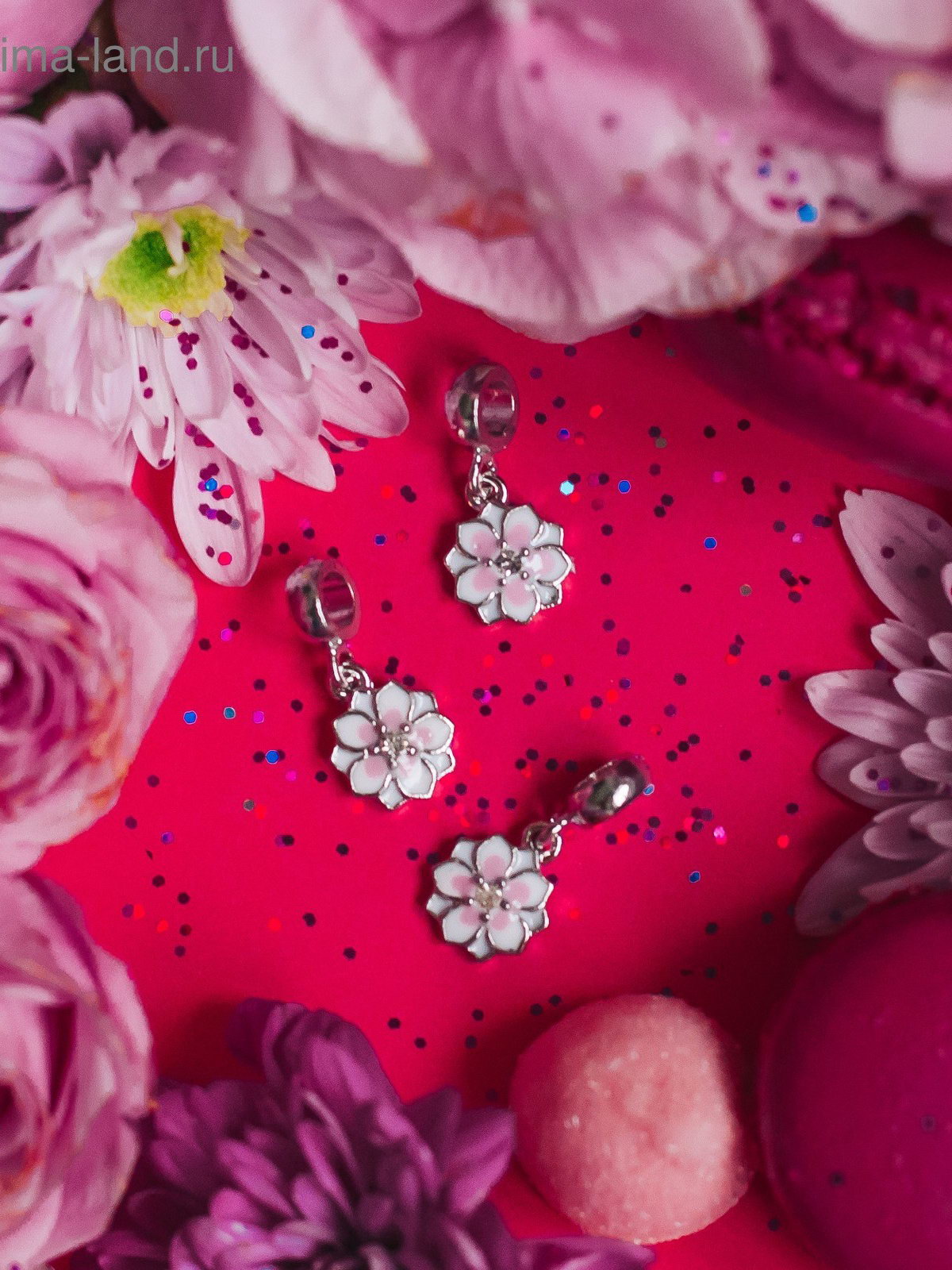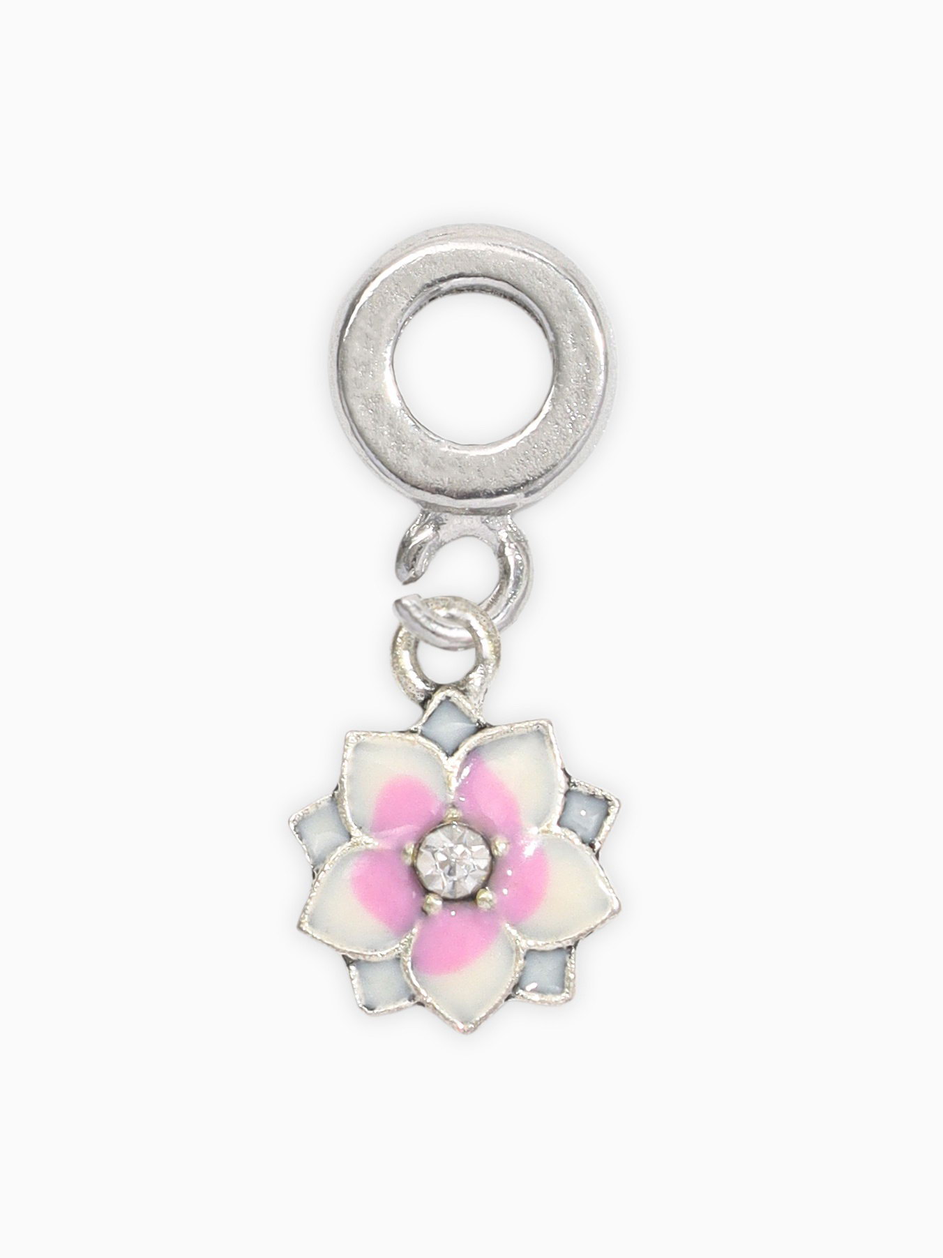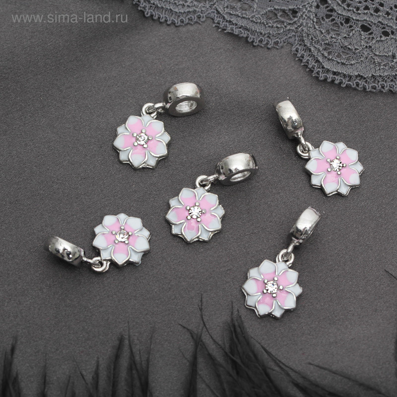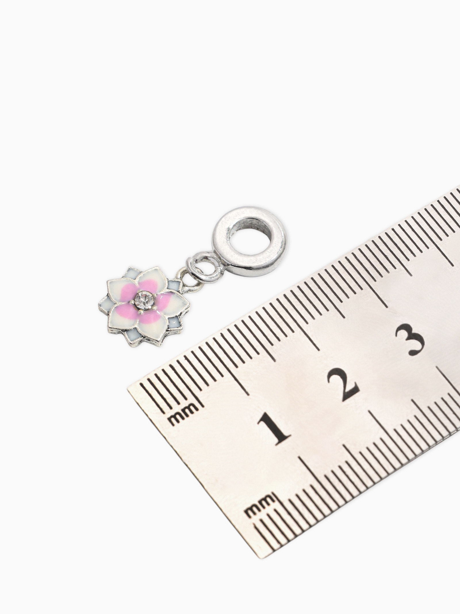 Шарм подвеска "Цветок с эмалью", бело-розовая в серебре, 1x1x0.6 см., QF, Китай