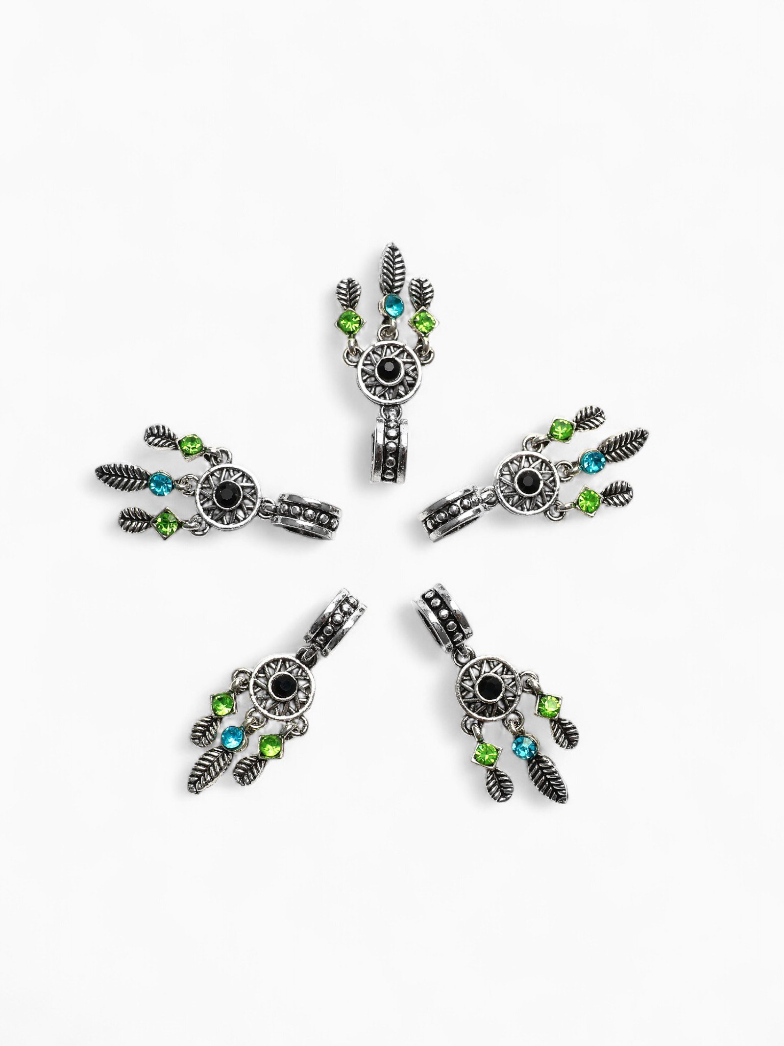 Шарм подвеска "Ловец снов", цветная в серебре, 1x3x0.8 см., QF, Китай