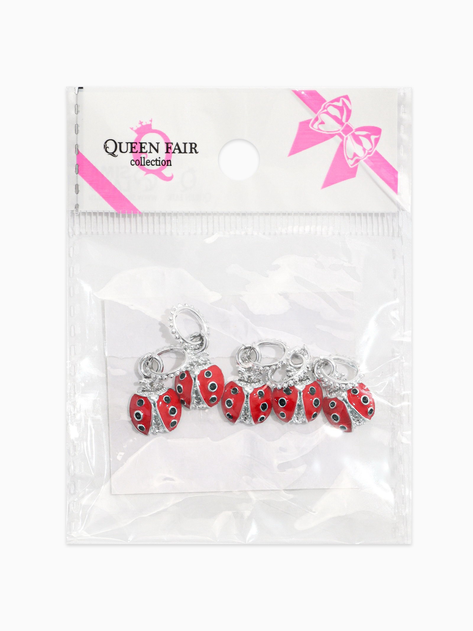 Шарм подвеска "Божья" коровка, красная в серебре, 1x2.2x0.7 см., QF, Китай
