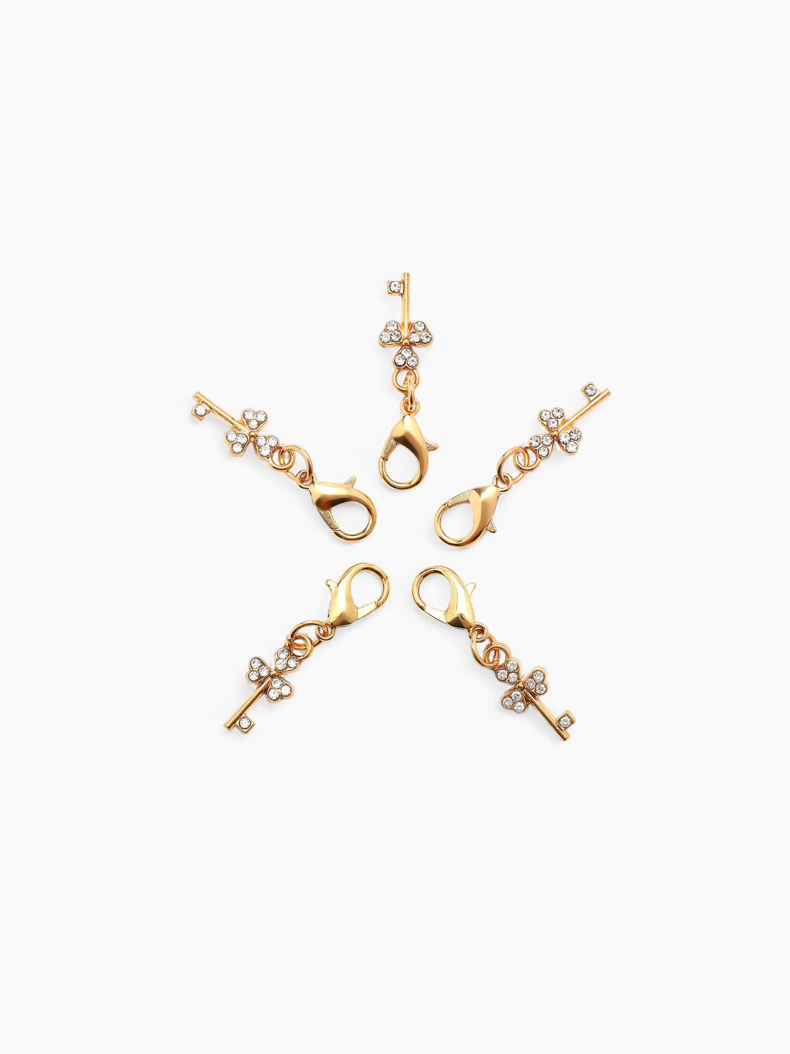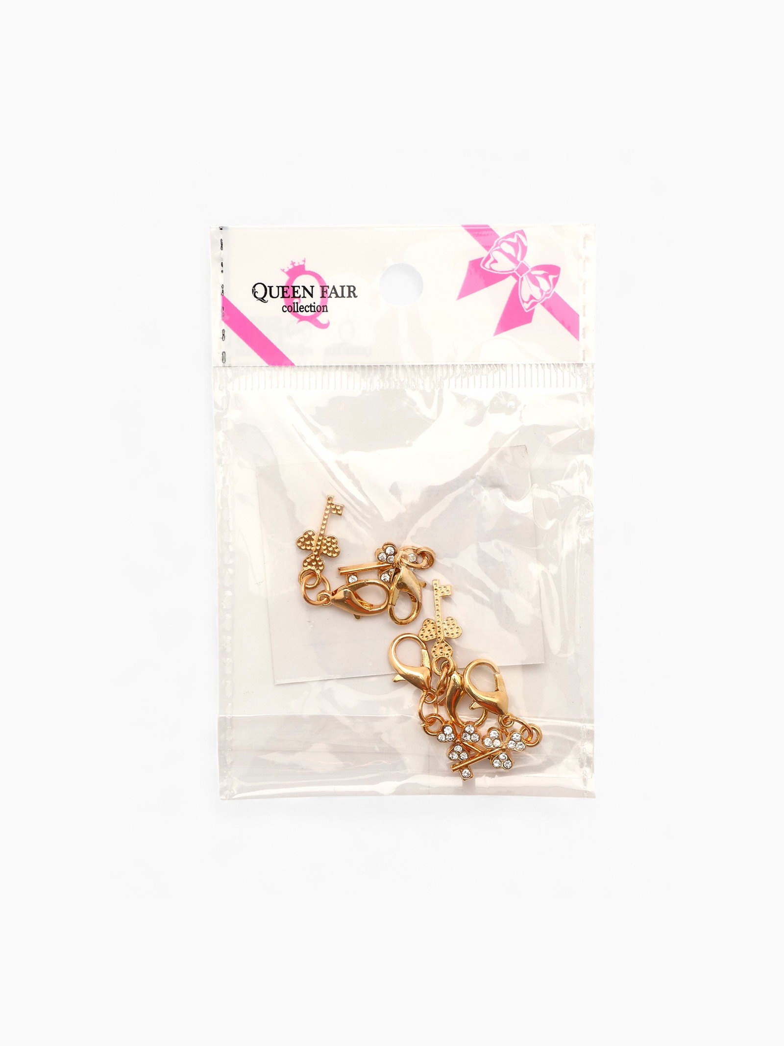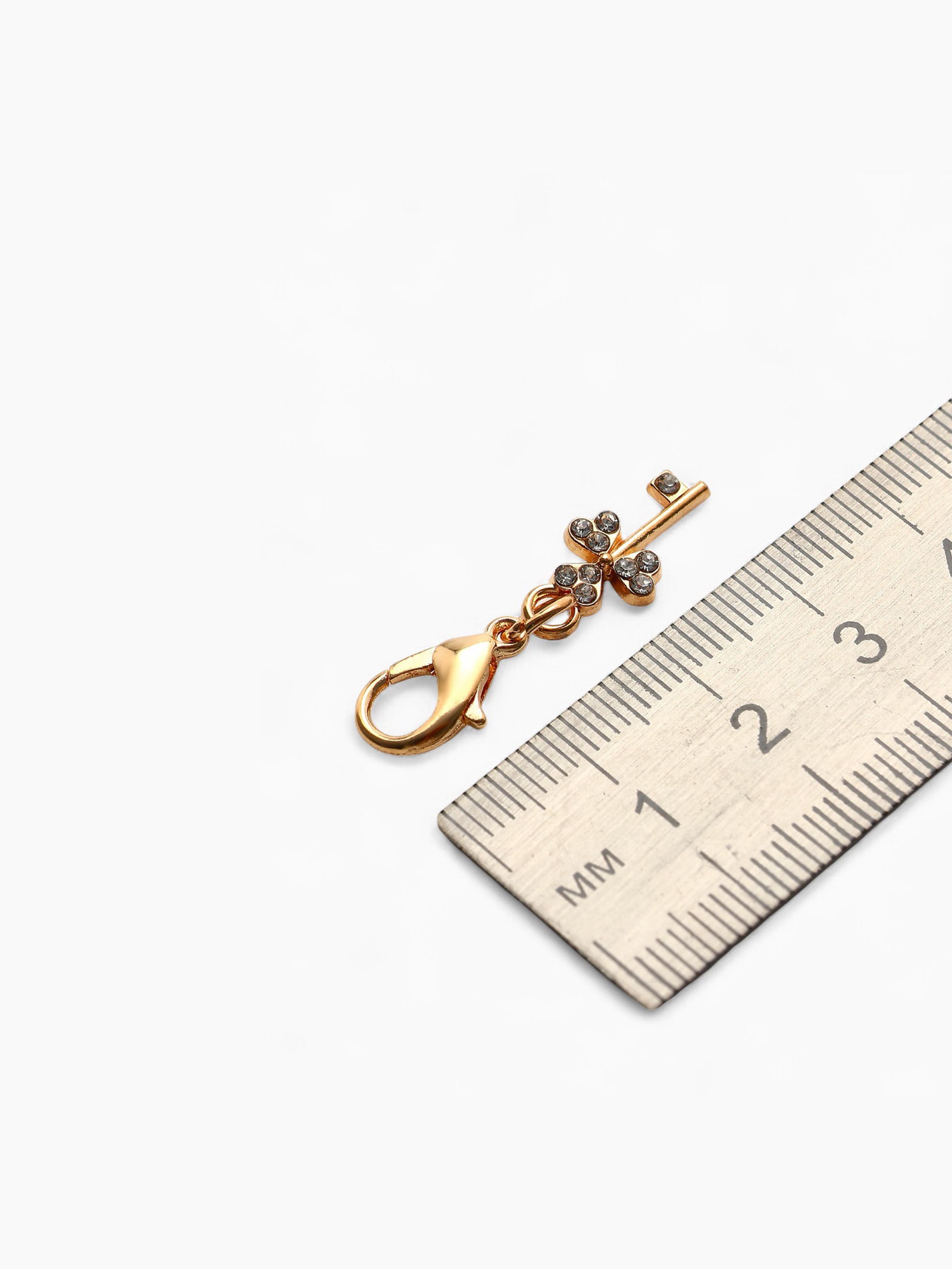 Шарм для браслета на карабине "Ключ", белый в золоте, 3.5x0.3x1 см., QF, Китай