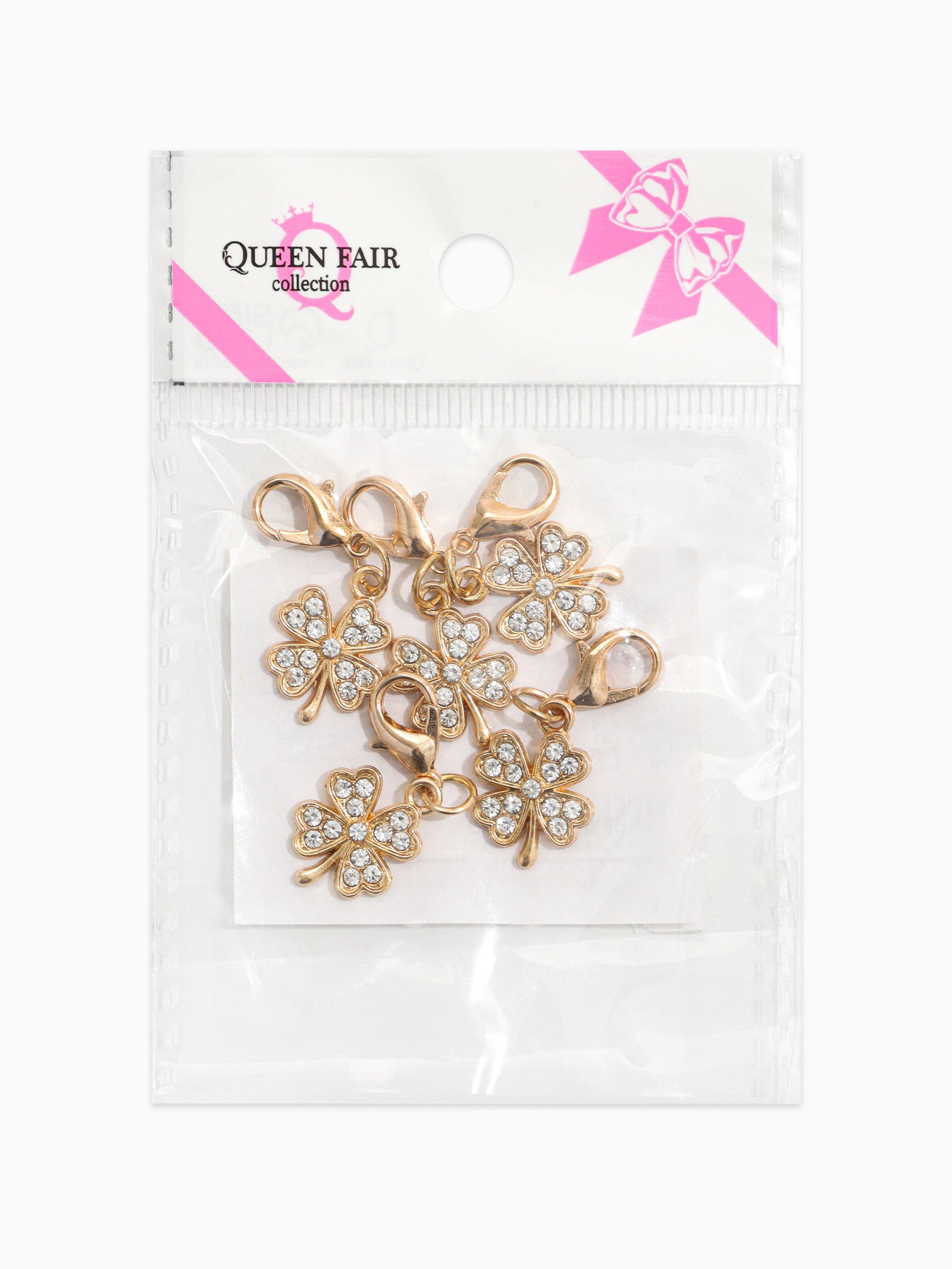 Шарм для браслета на карабине "Клевер", золоте, 1.8x0.3x1.5 см., QF, Китай