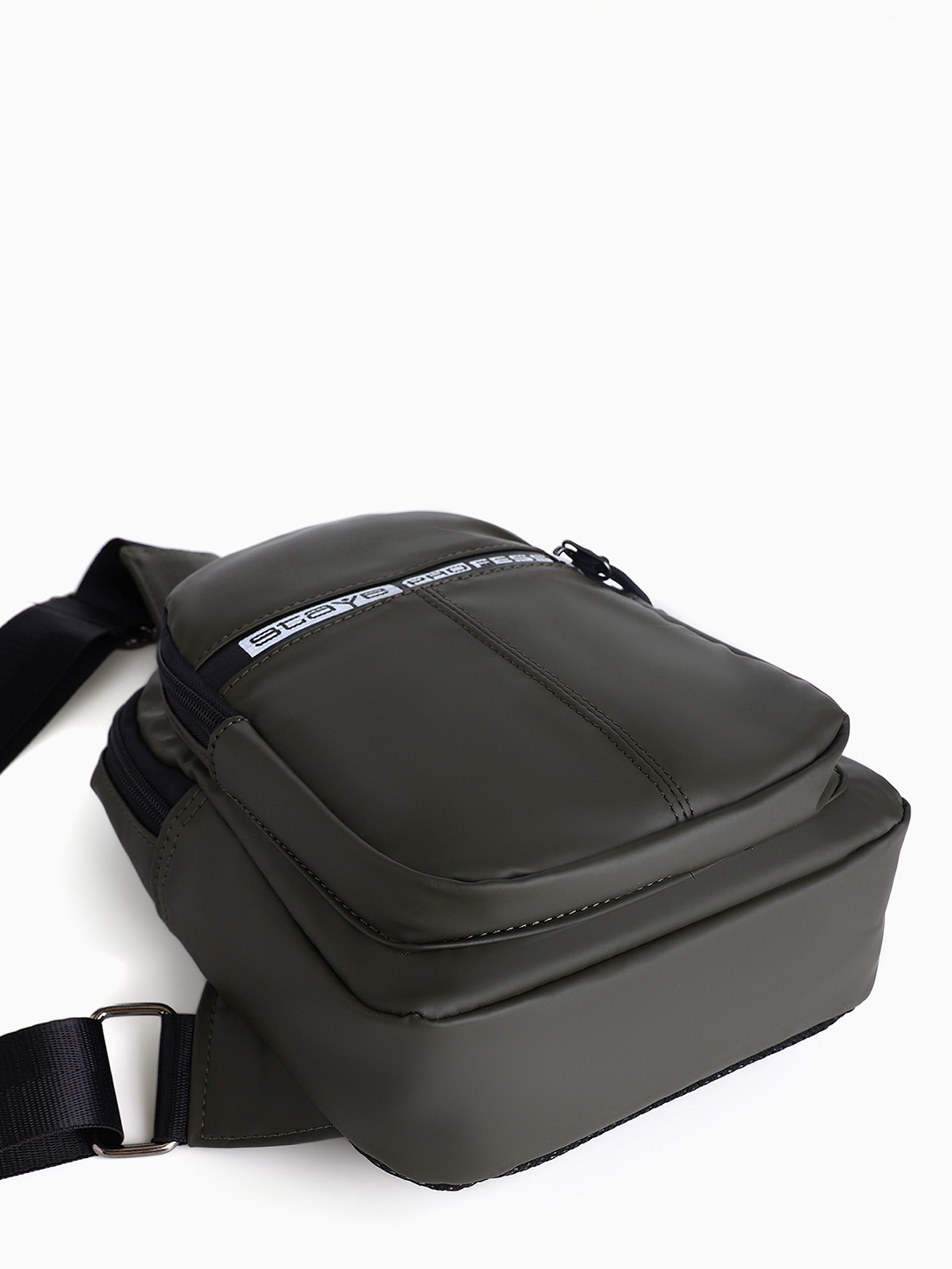 Сумка-слинг мужская из текстиля, отверстие для наушников, цвет зелёный, 5.5x18x27 см., Китай