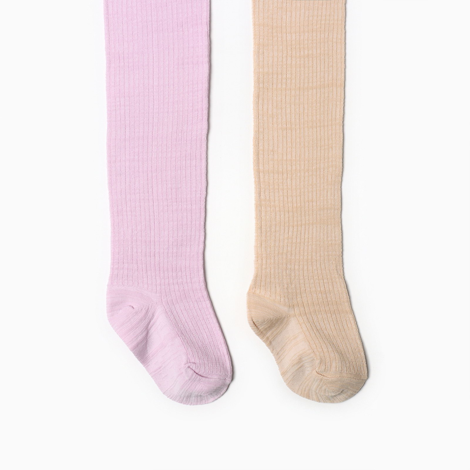 Колготки детские BASIC LINE, набор 2 пары, рост 86 - 92 см, бежевый, сиреневый, Крошка Я, Россия