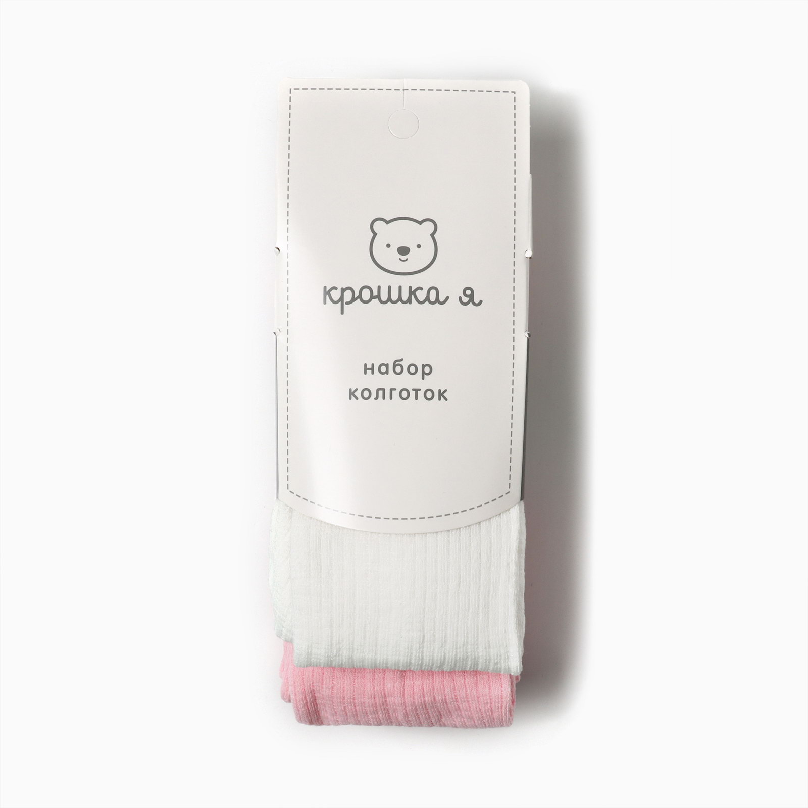 Колготки детские BASIC LINE, набор 2 пары, рост 62-68 см, молочный, розовый, Крошка Я, Россия