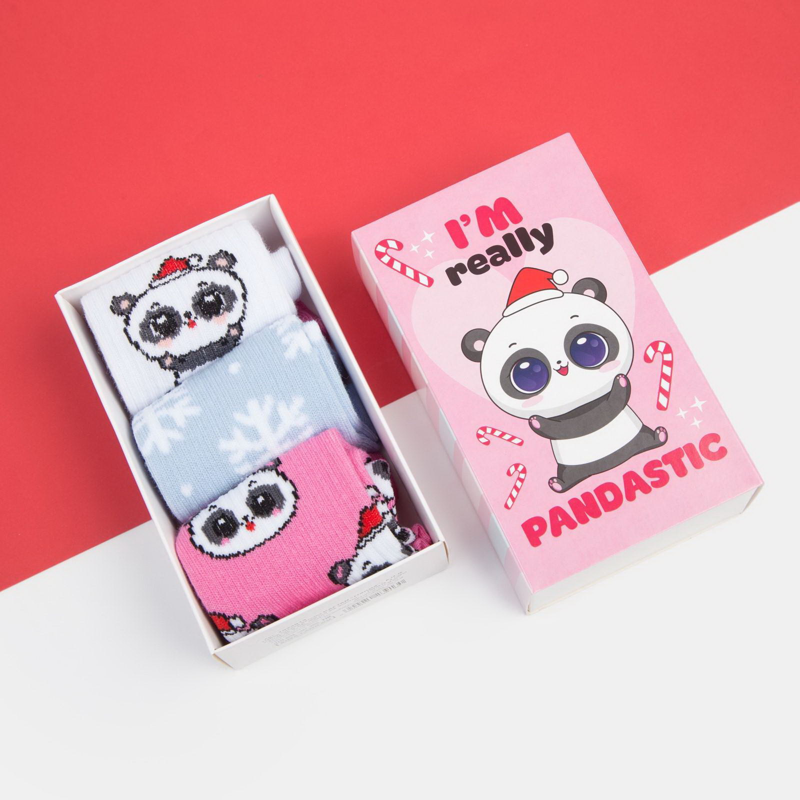 Носки детские новогодние "Панда", набор 3 пары, размер 16-18 см, KAFTAN, Россия