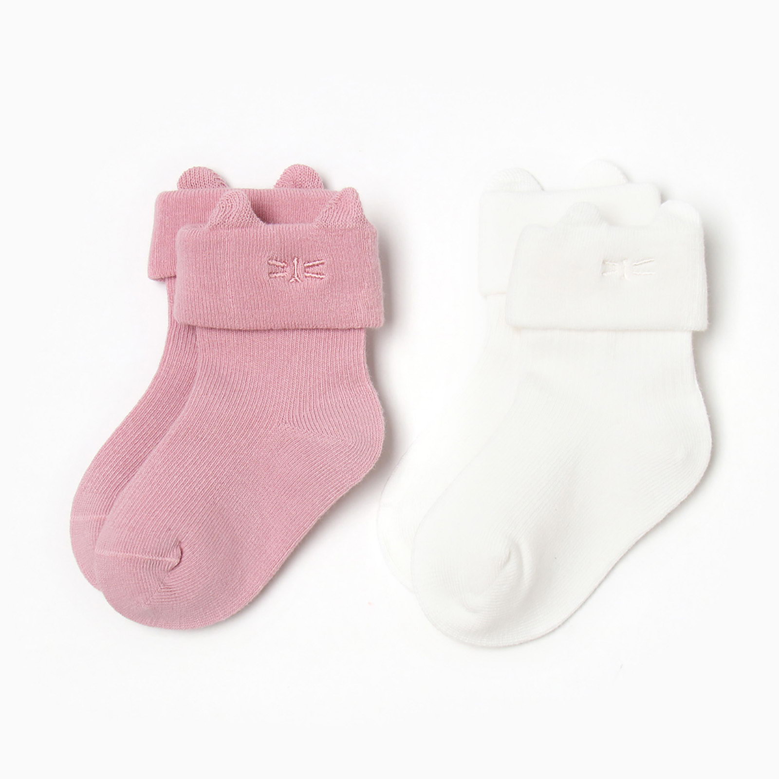 Набор носков Basic Line, 2 пары, 12-24 мес., молочный/розовый, Крошка Я, Китай