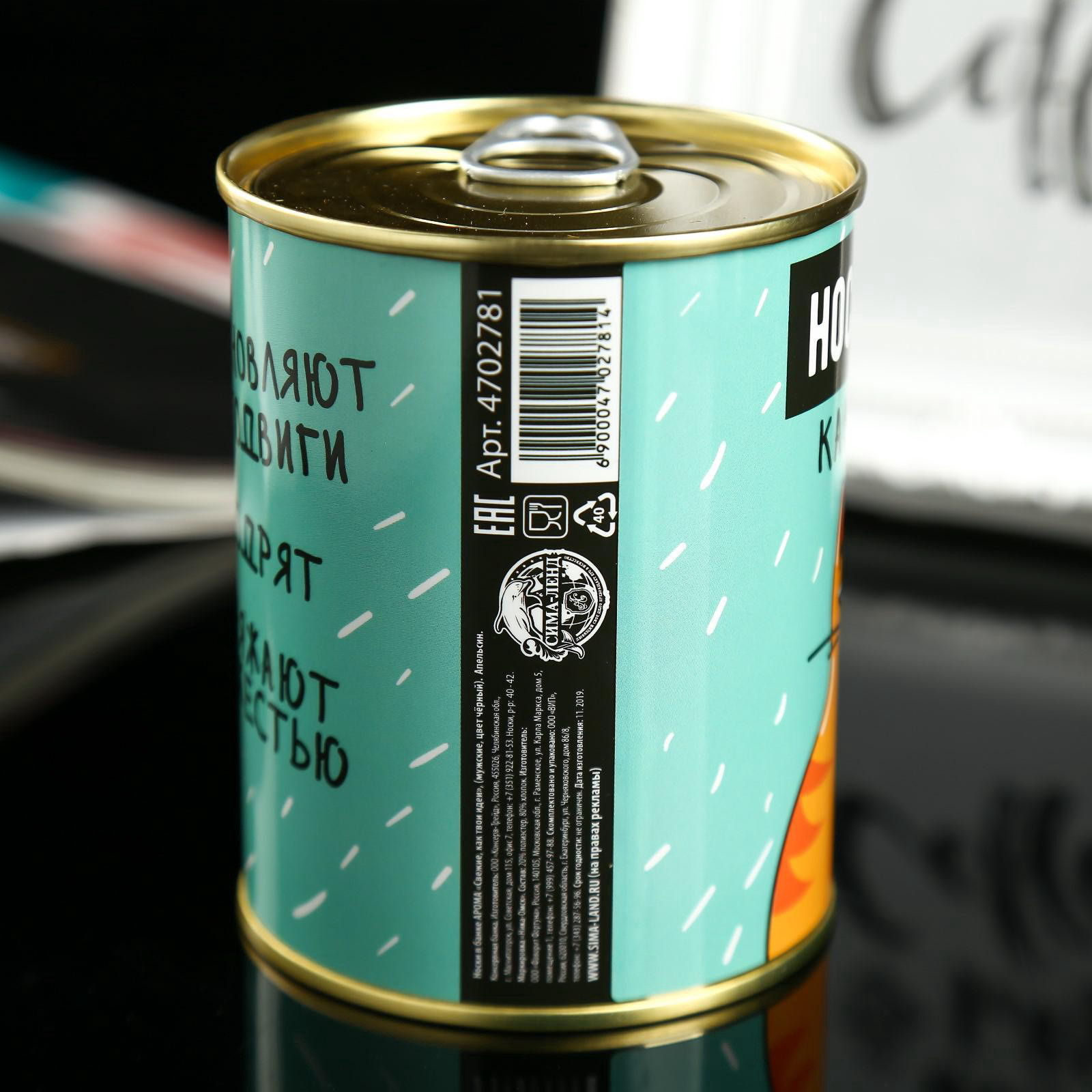 Носки мужские черные в банке ароматизированные "Свежие, как твои идеи", аромат апельсин, Россия
