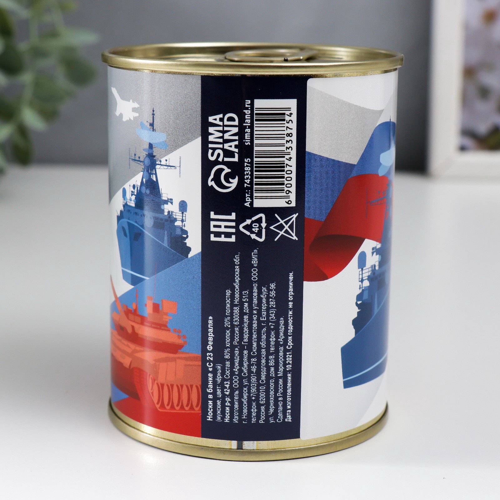 Подарочные носки в банке "С 23 Февраля, Россия