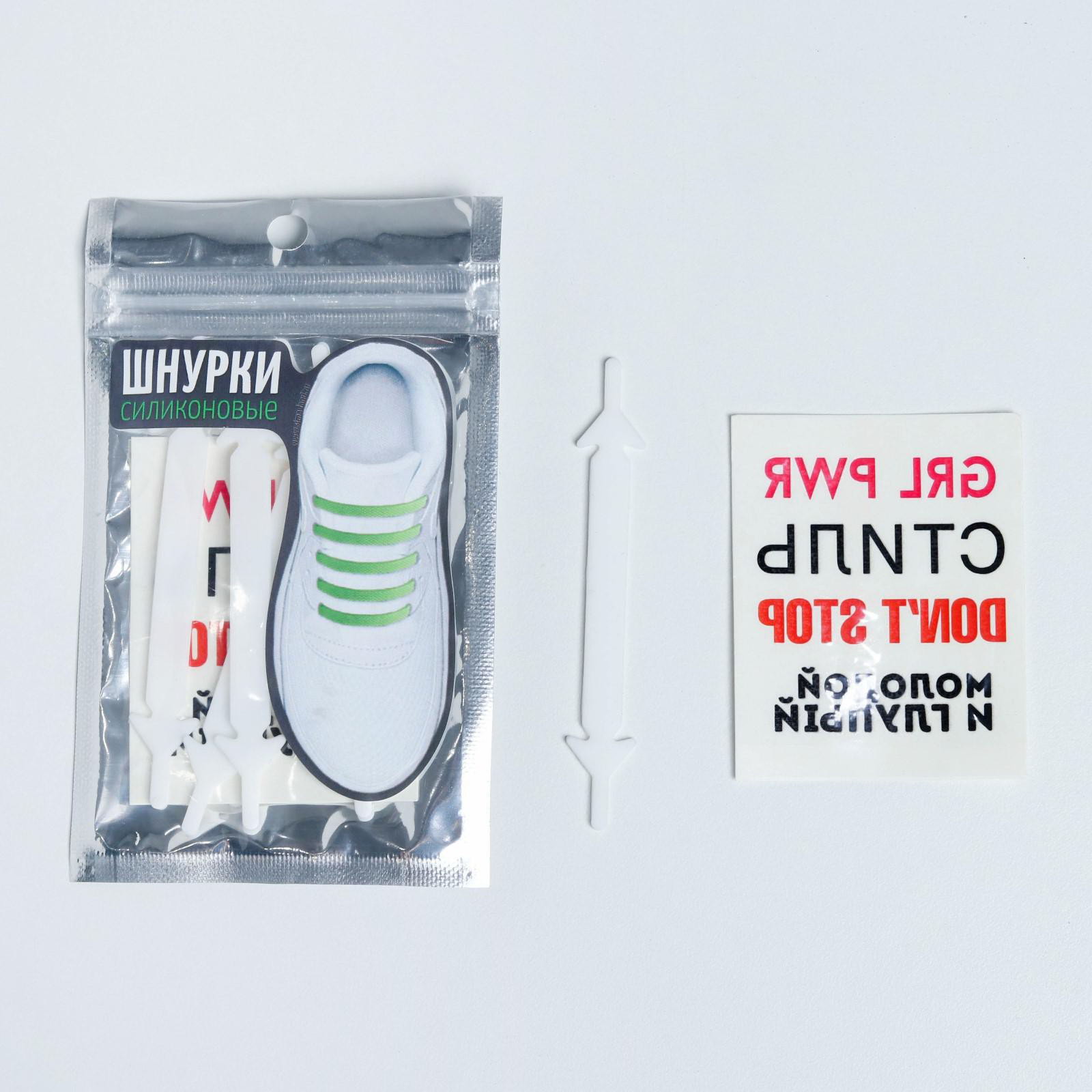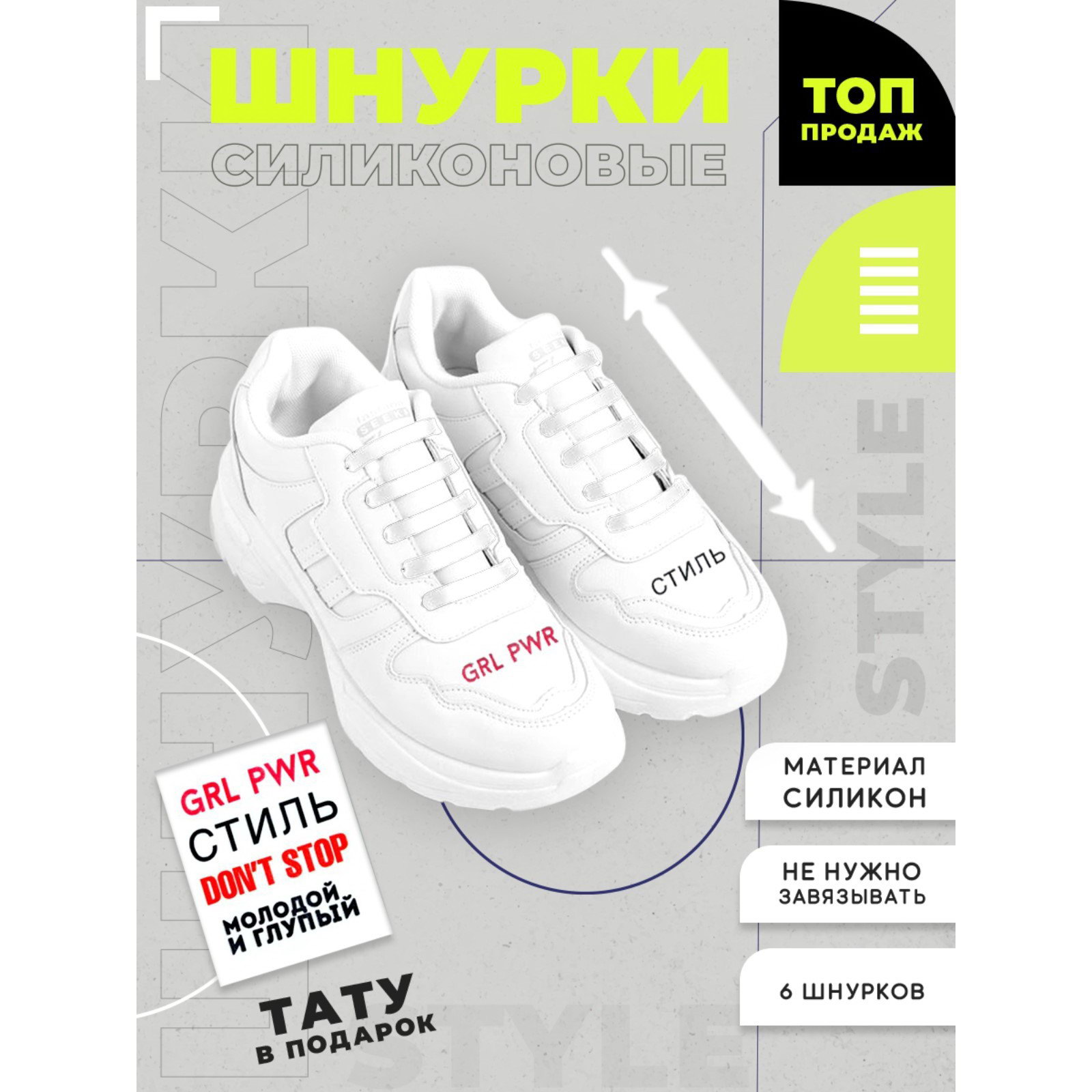 Шнурки силиконовые, цвет белый, набор 6 шт + переводное тату, 0.5x8x14 см., NAZAMOK, Китай