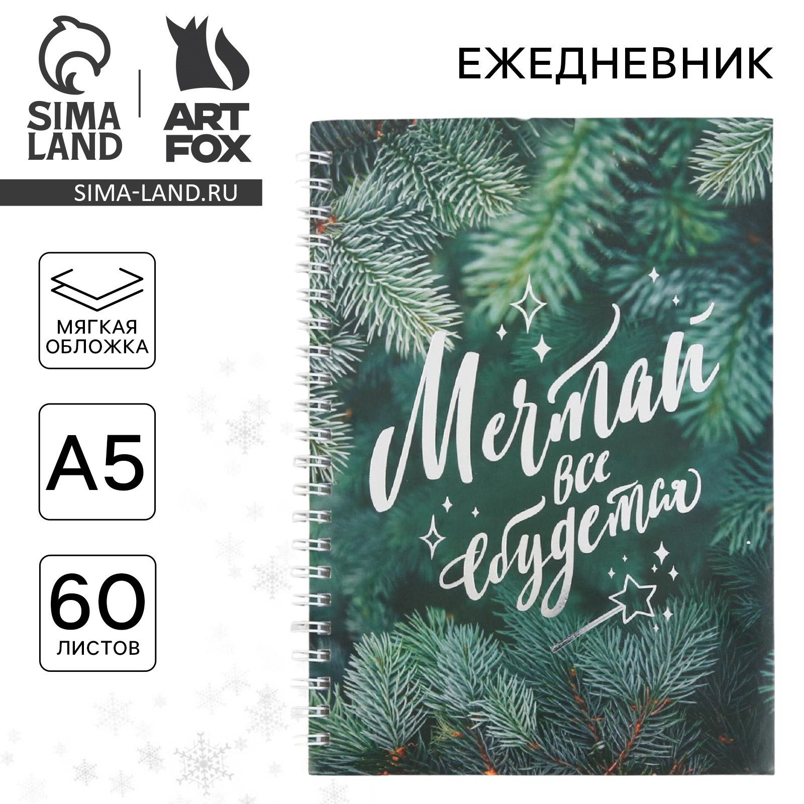 Отделка: Голография, Тиснение Размер упаковки: 14.5 x 1 x 20 см. tnved: 4820103000 Тип ежедневника: Недатированный Линовка блока: Точка Для кого: Для женщины Возраст: Взрослый Штрихкод на единице товара: Да Цвет: Зелёный Плотность, г/?2: 80 Белизна блока, %: 95-100 Количество листов: 60 Формат: А5 Символ года: Нет Материал обложки: Картон Тип скрепления: На гребне/спирали Тематика праздника: Новый год Адресат: Без адресата Вид обложки: Мягкая Рисунок: Да Ежедневник с тиснением станет прекрасным подарком на праздник. • Мечтай; • Записывай; • Выполняй.