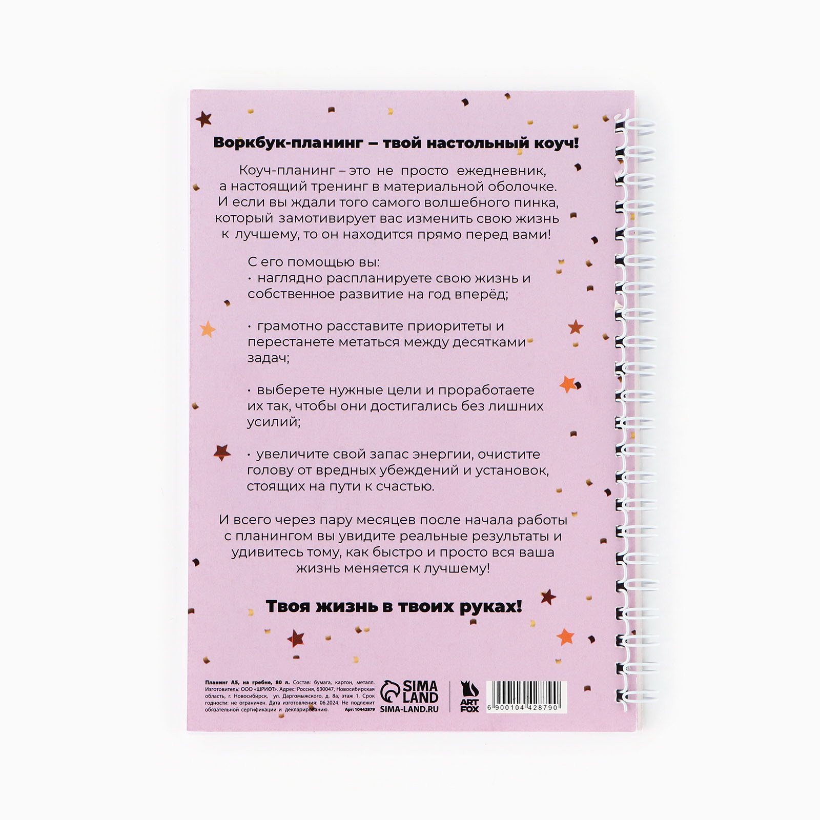 Размер упаковки: 14 x 20 x 1.5 см. Набор: Нет Тип: Планинг Формат: А5 Тип скрепления: На гребне/спирали Особенности: Без особенностей Рисунок: Да Количество листов: 80 Тематика праздника: Новый год Дизайн обложки: С рисунком Тип ежедневника: Планинг tnved: 4820103000 tnved: 4820103000 Адресат: Без адресата Воркбук-планинг - твой настольный коуч! Коуч-планинг - это не просто ежедневник, а настоящий тренинг в материальной оболочке. И если вы ждали того самого волшебного пинка, который замотивирует вас изменить свою жизнь к лучшему, то он находится прямо перед вами! С его помощю вы: